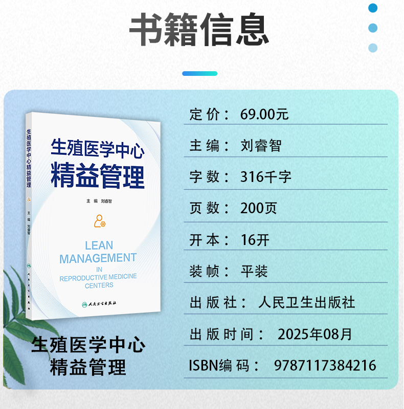 生殖医学中心精益管理 刘睿智 主编 内容基于生殖医学中心的精益管理实践 适用于各生殖医学中心运行管理或从业人员人民卫生出版社