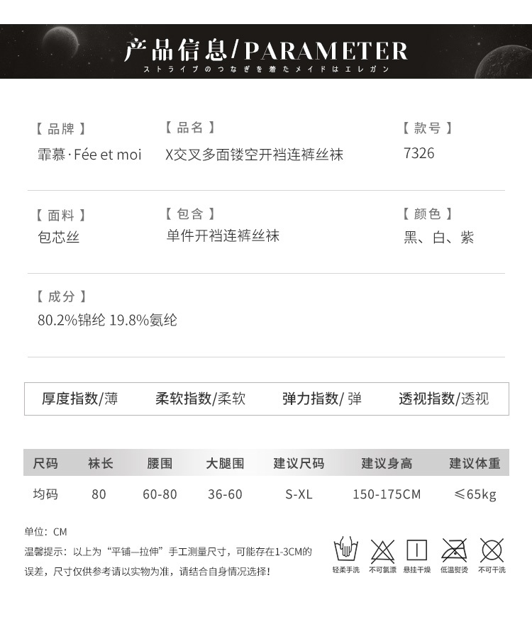 霏慕X交叉多面镂空开裆连裤丝袜7326情趣内衣性感露臀免脱诱惑 交叉缠情黑【单件开裆连裤丝袜】 均码