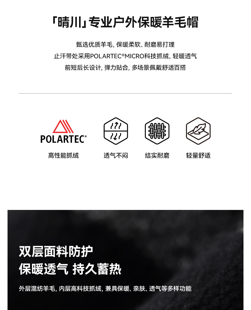 【晴川】伯希和户外针织帽男Polartec防风冷帽登山滑雪羊毛帽子女