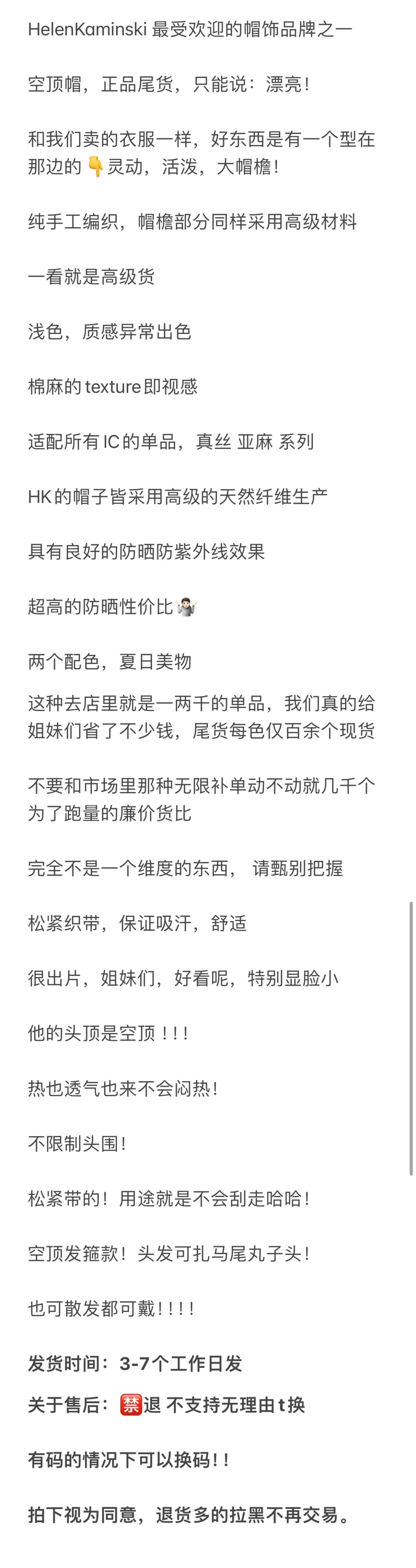 纯元福利 HK空顶防晒帽 澳洲贵妇HK草帽 超显脸小