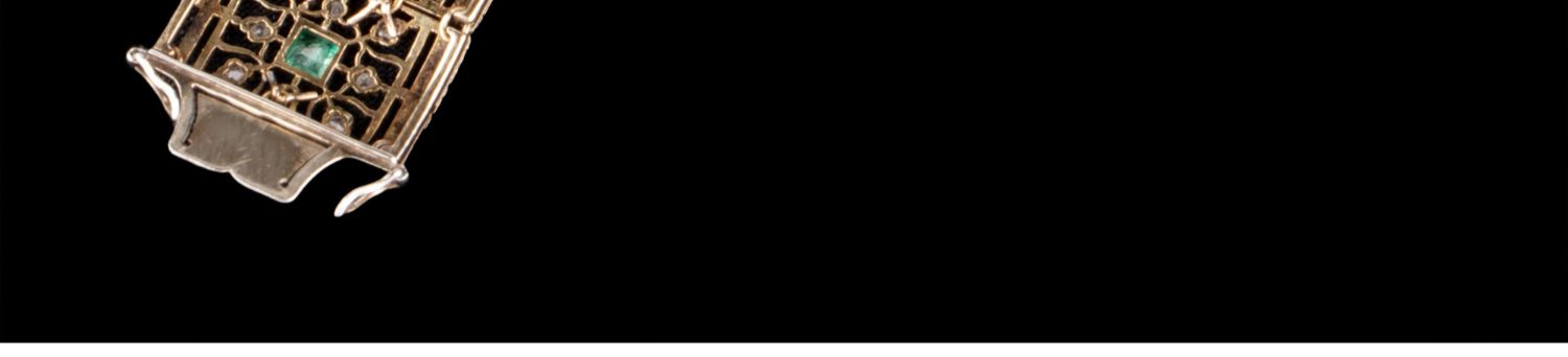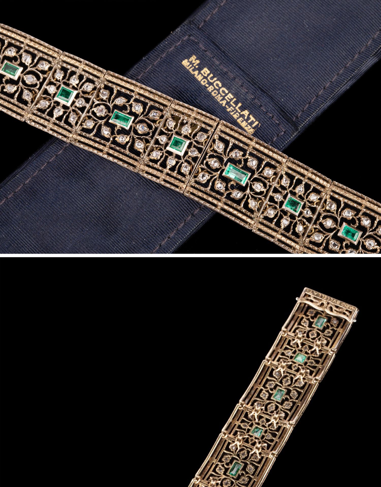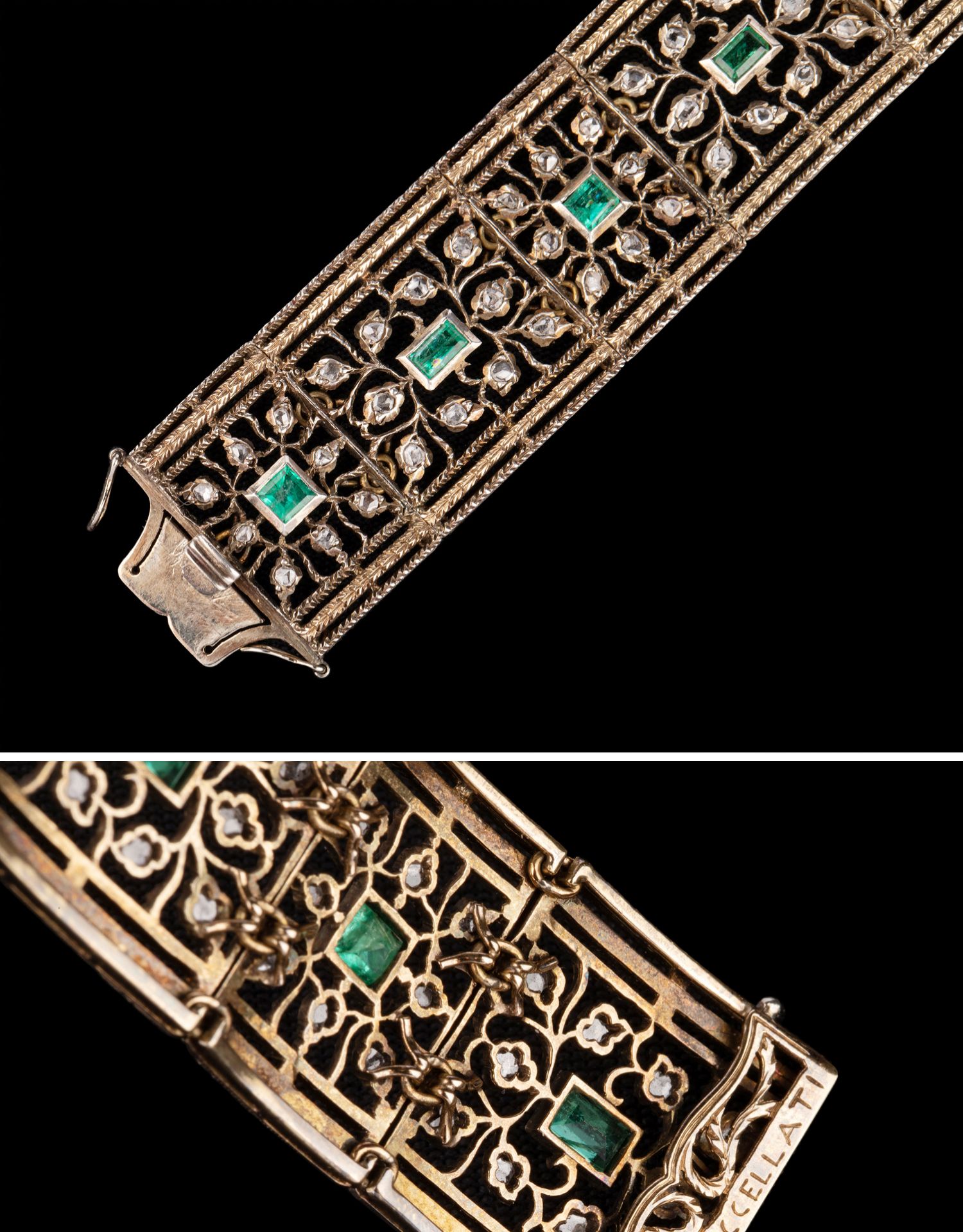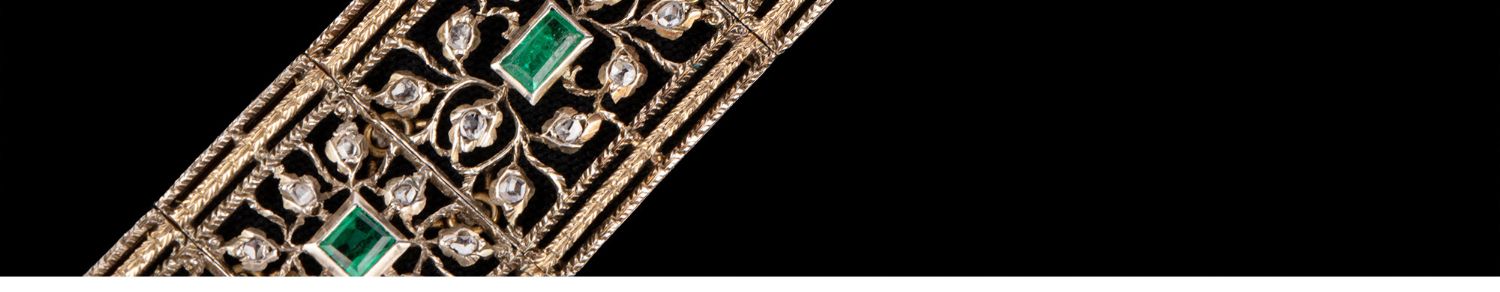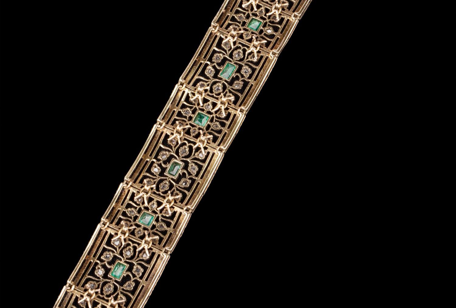 独角鹿西洋古董珠宝首饰意大利布契拉提金银镂雕镶祖母绿钻石手镯