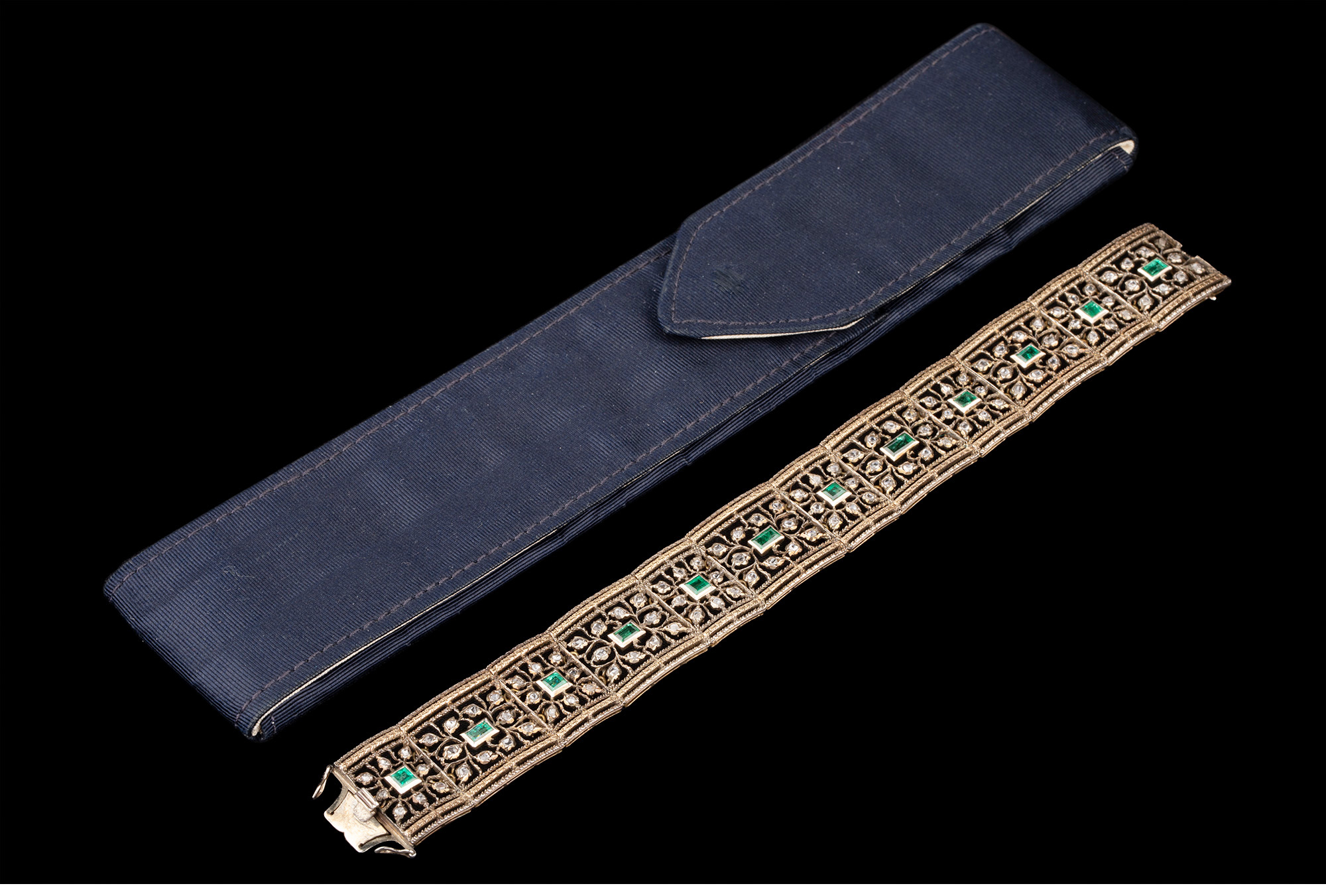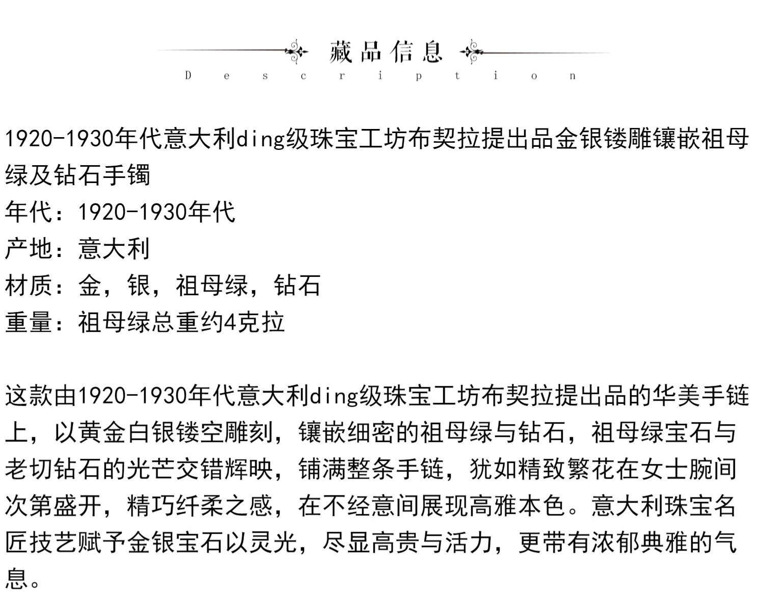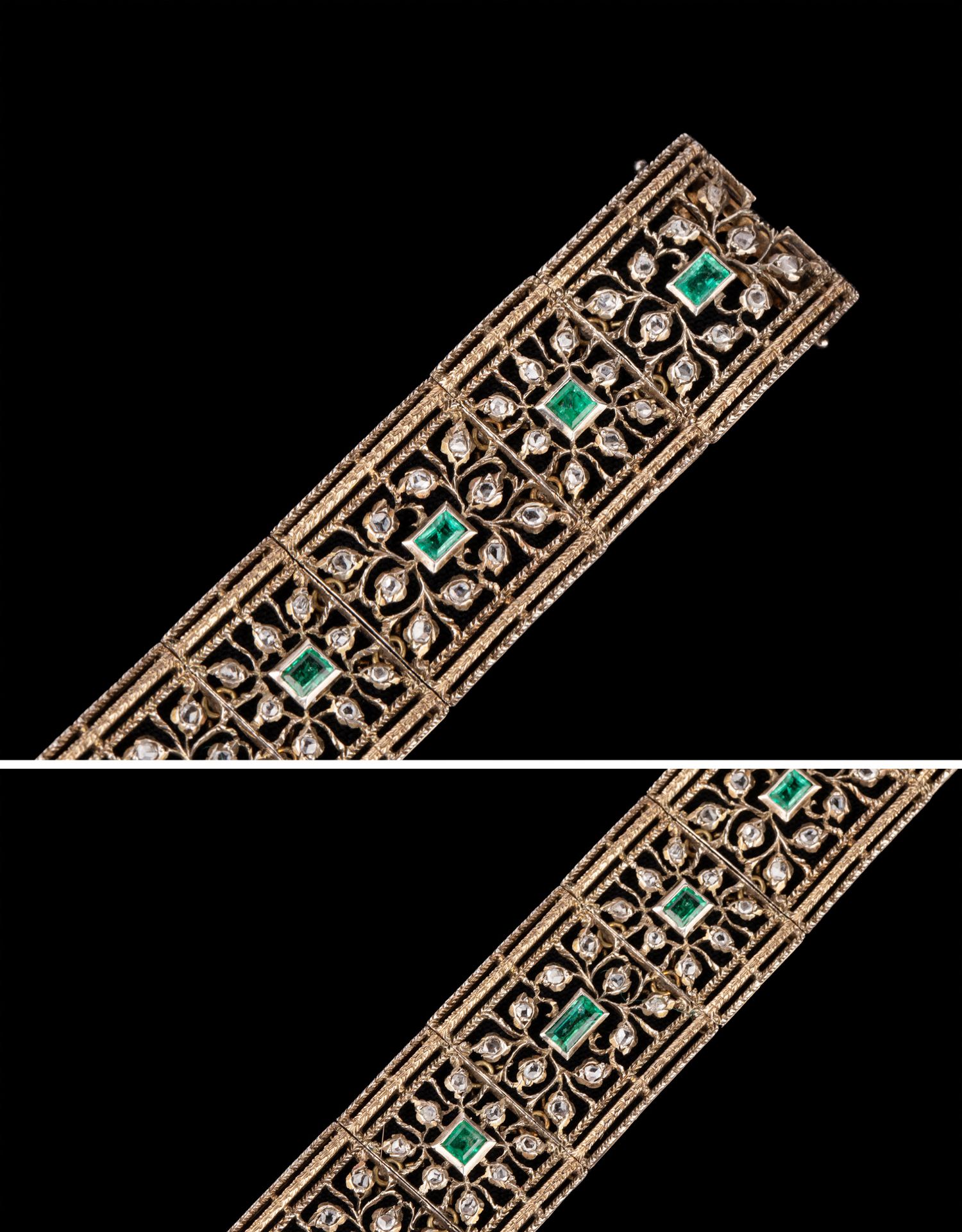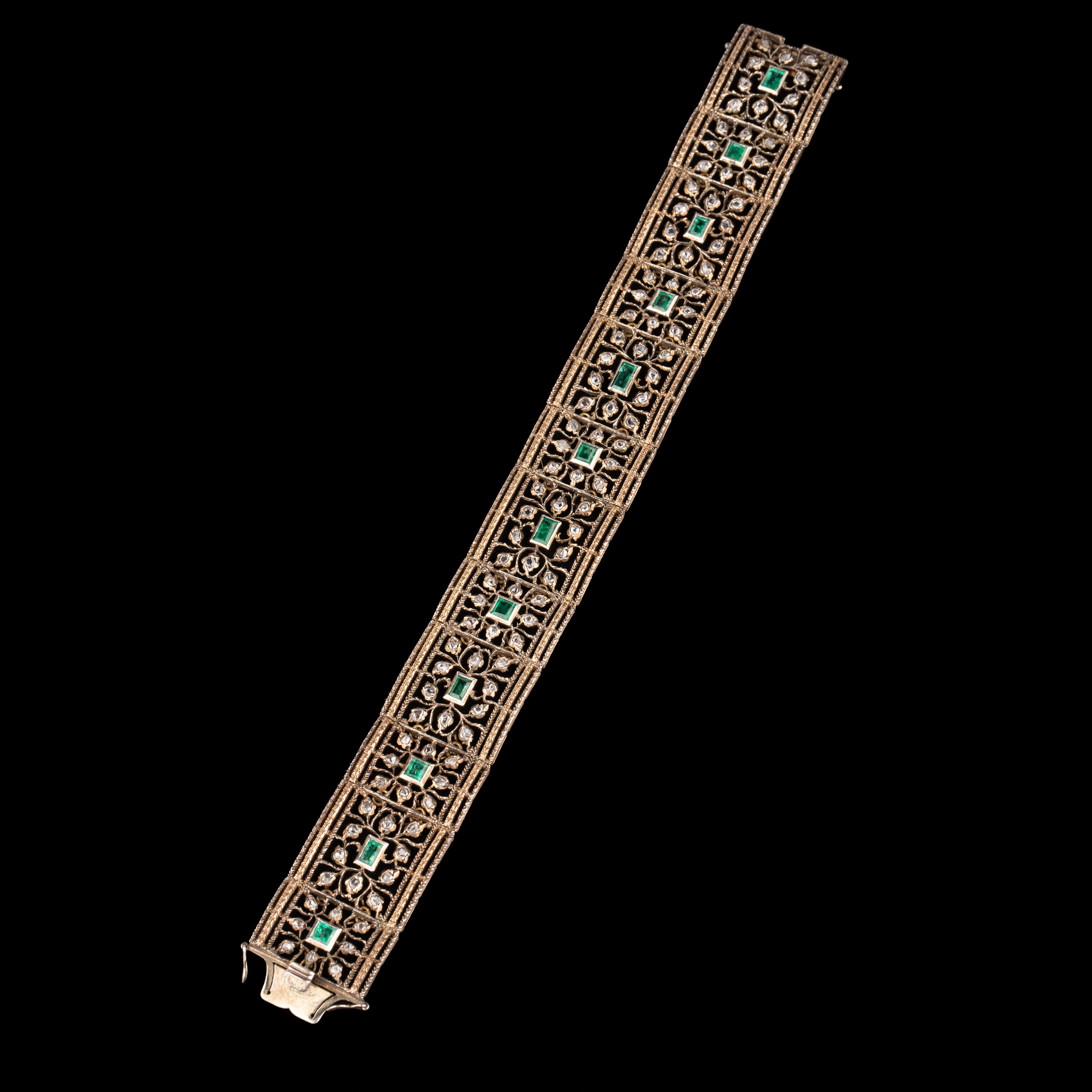 独角鹿西洋古董珠宝首饰意大利布契拉提金银镂雕镶祖母绿钻石手镯