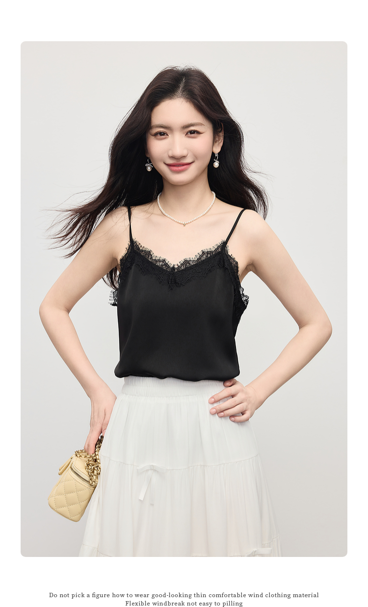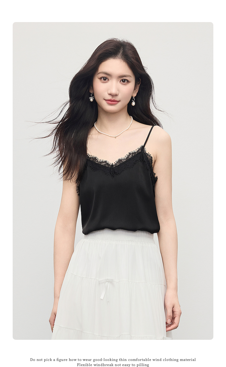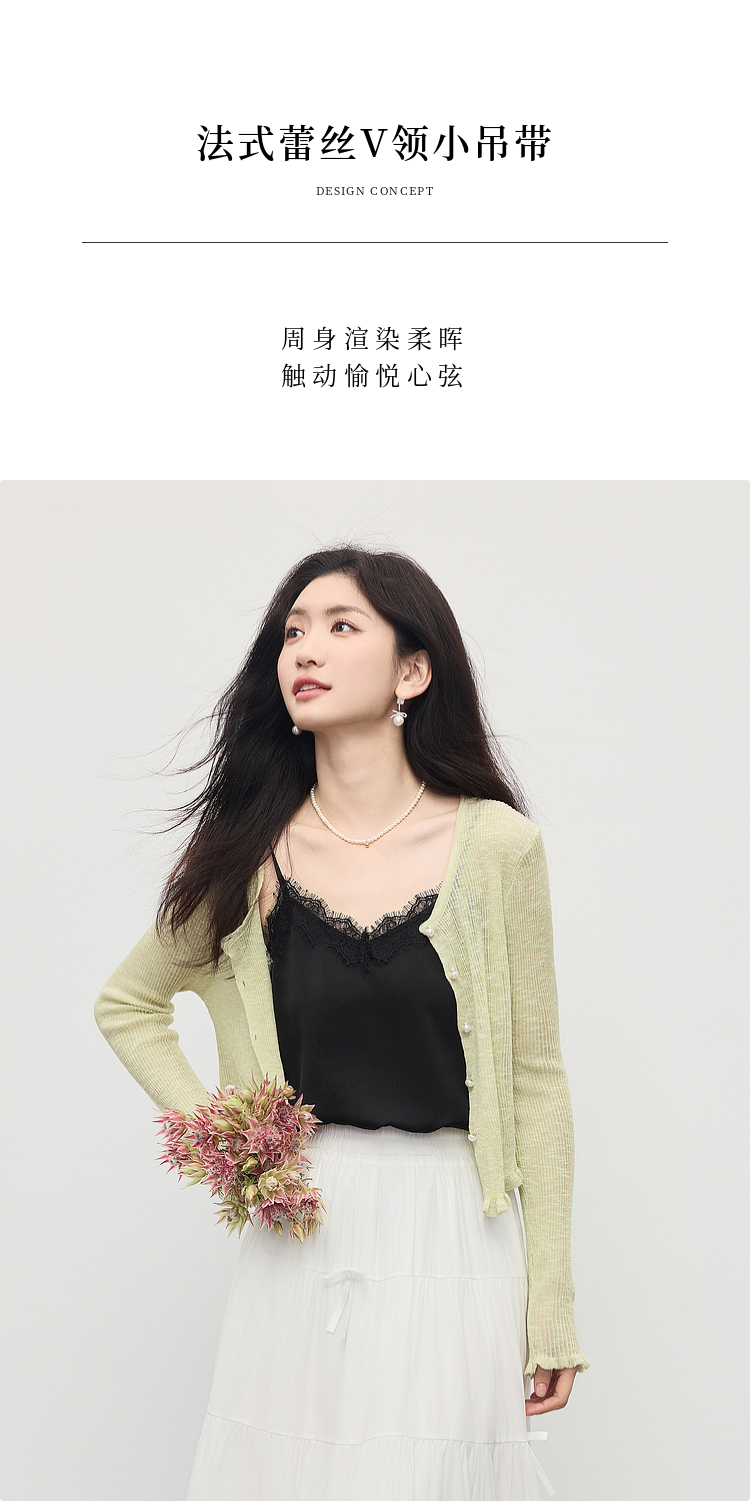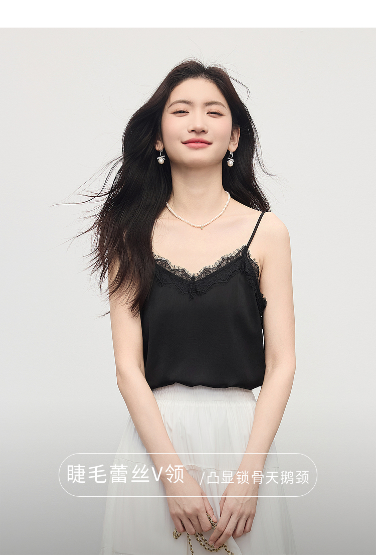 【专属特价】熙世界法式蕾丝花边V领小吊带女夏季无袖内搭背心上衣2025年新款