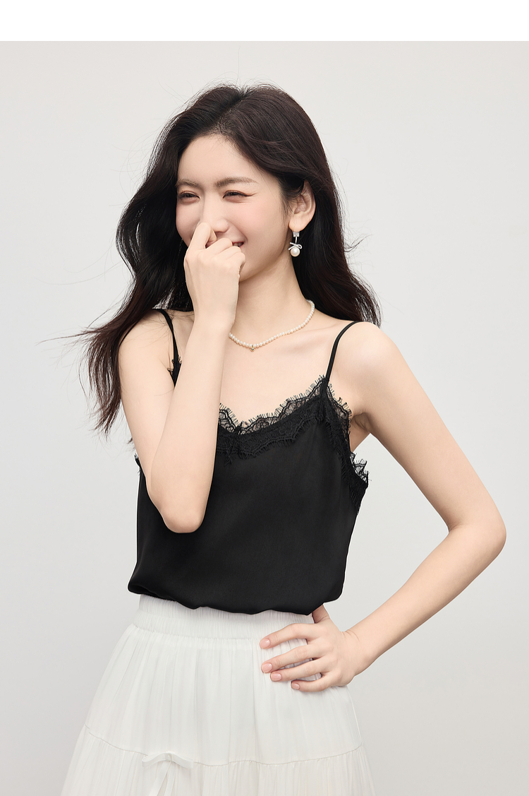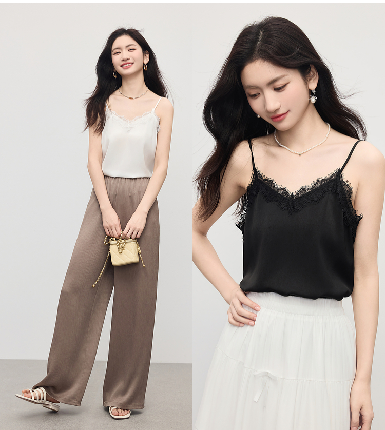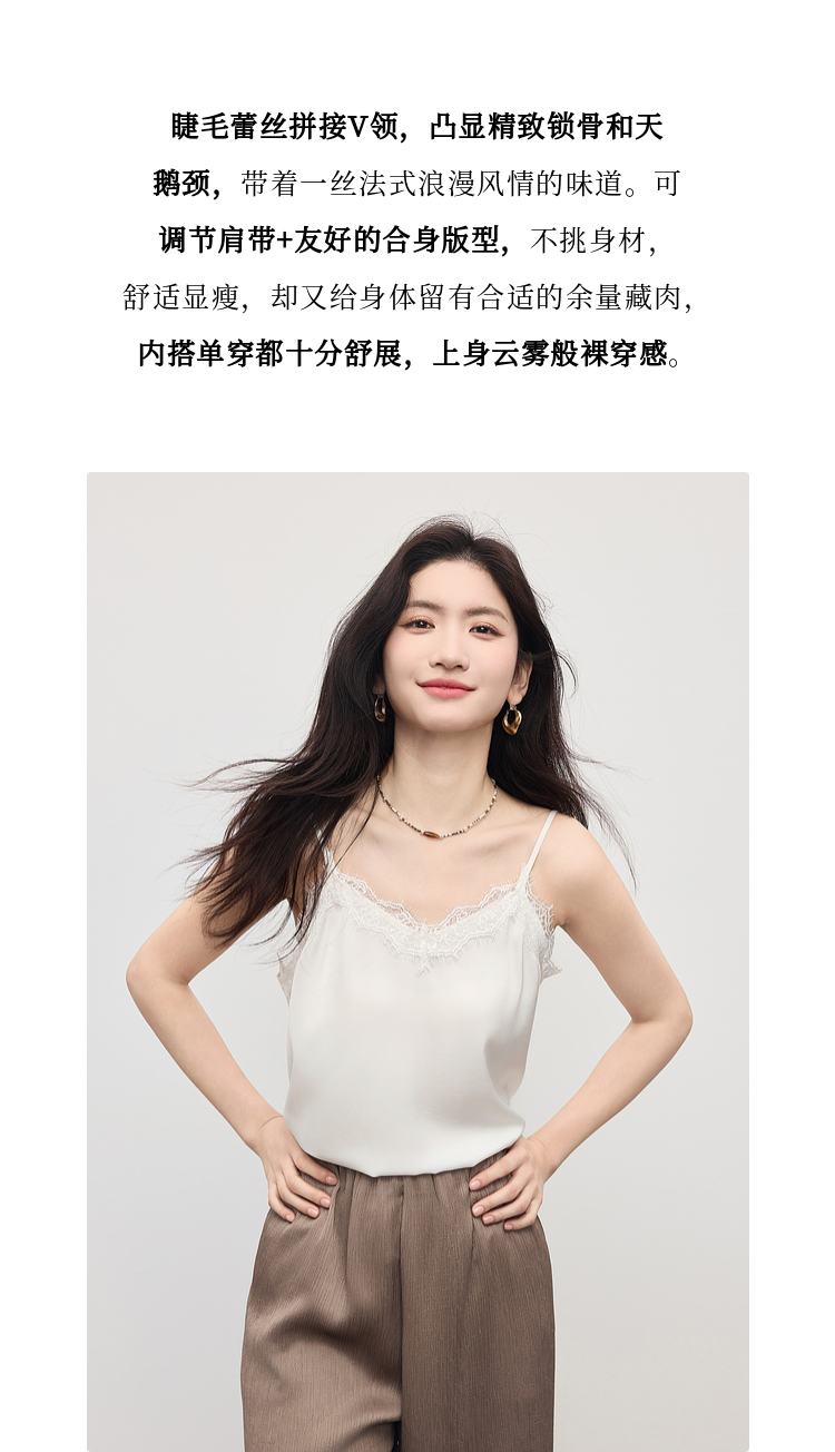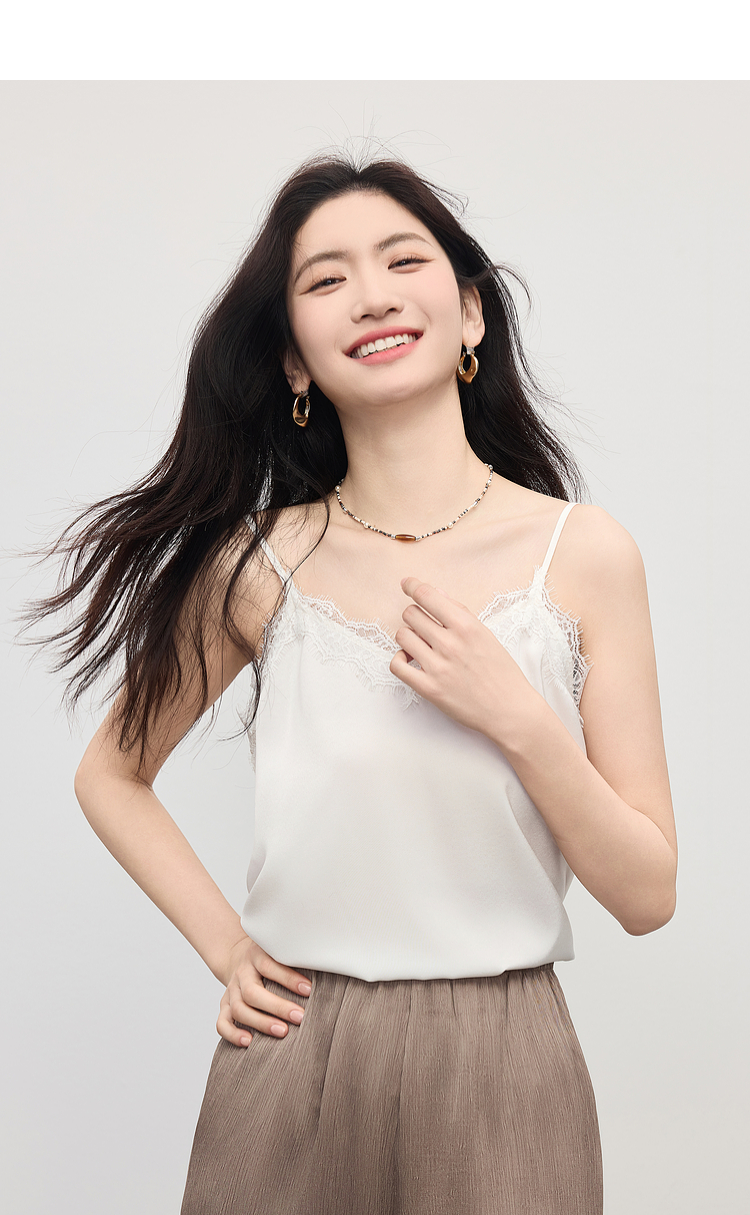 【专属特价】熙世界法式蕾丝花边V领小吊带女夏季无袖内搭背心上衣2025年新款