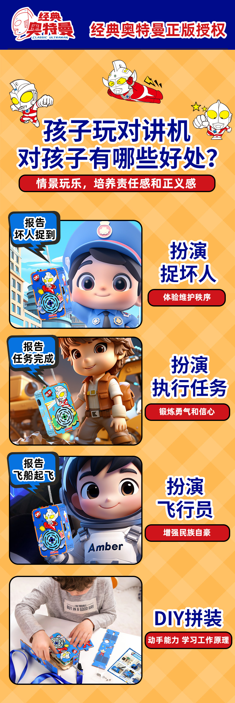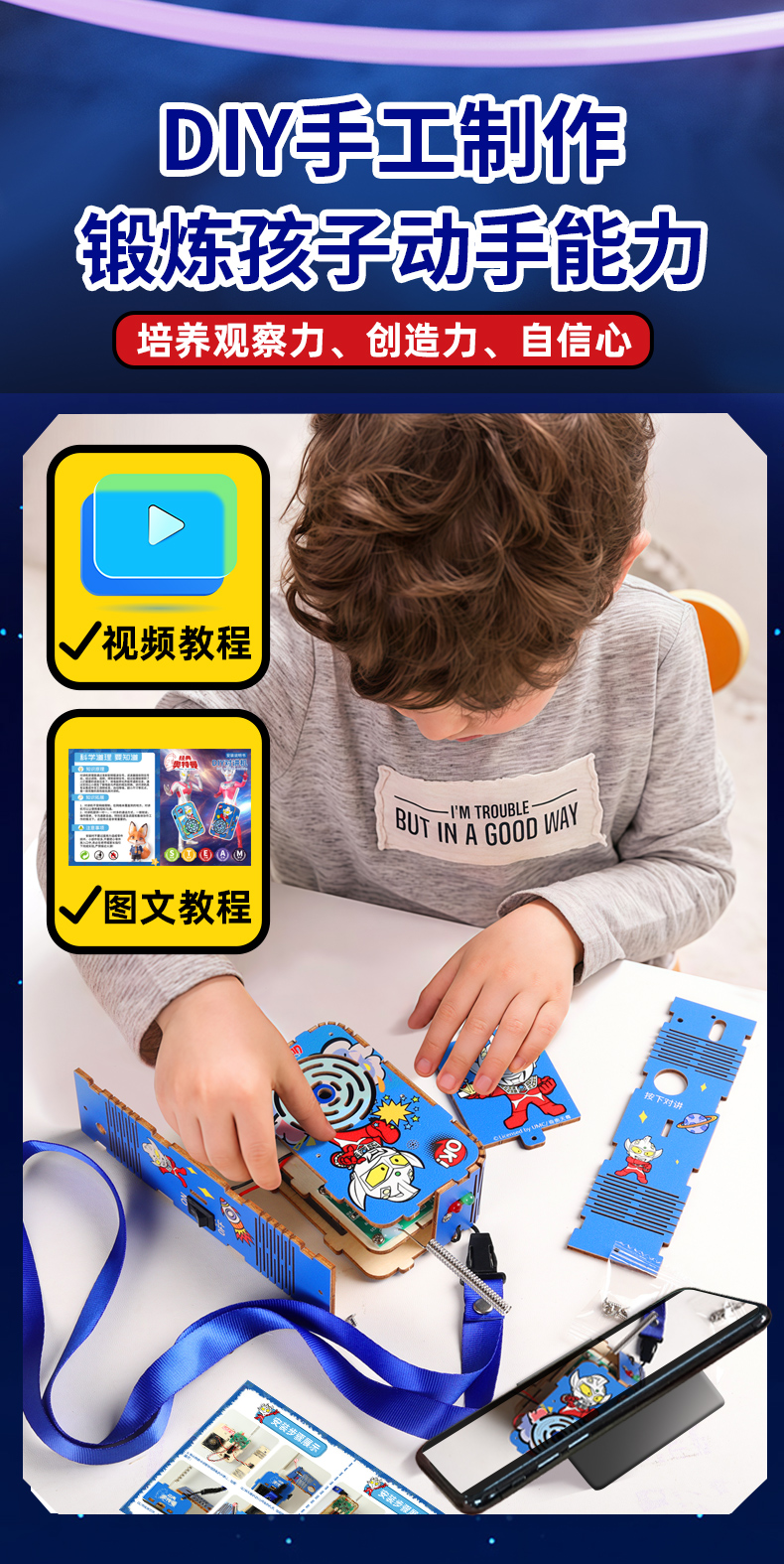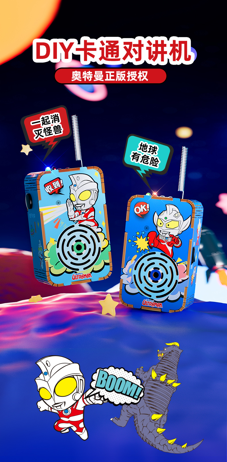 奥特曼儿童DIY对讲机科技小制作300米传呼亲子互动科学手工拼装