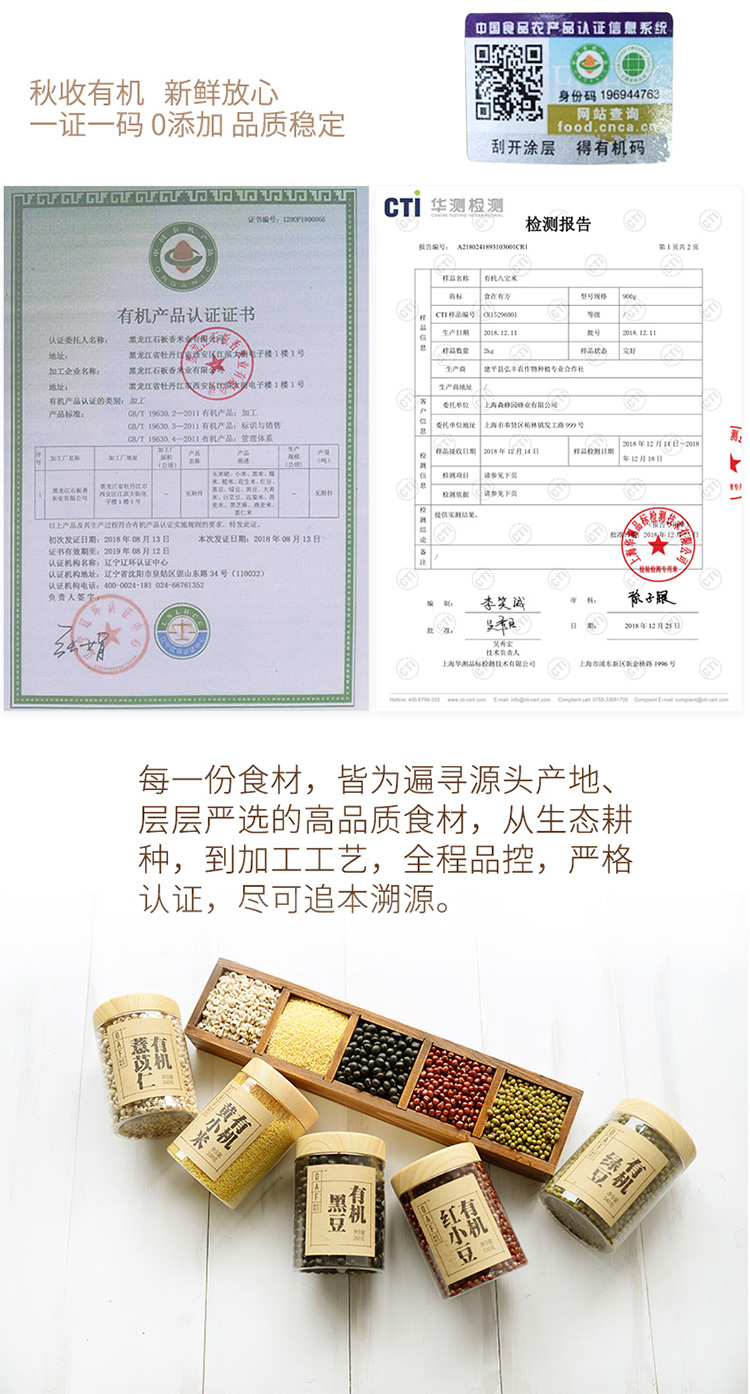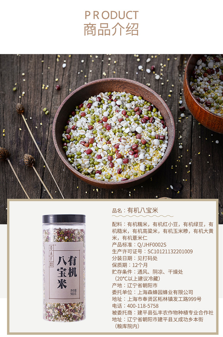 OAF食在有方 八宝米900g有机杂粮五谷糙米贡米糯米八宝粥 可追溯