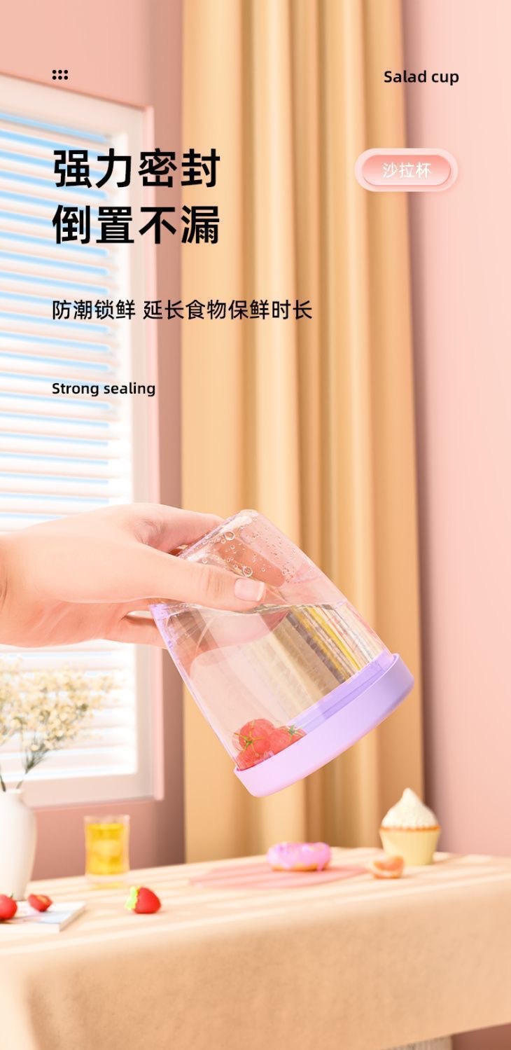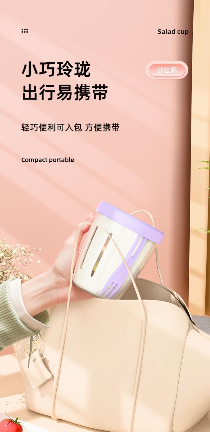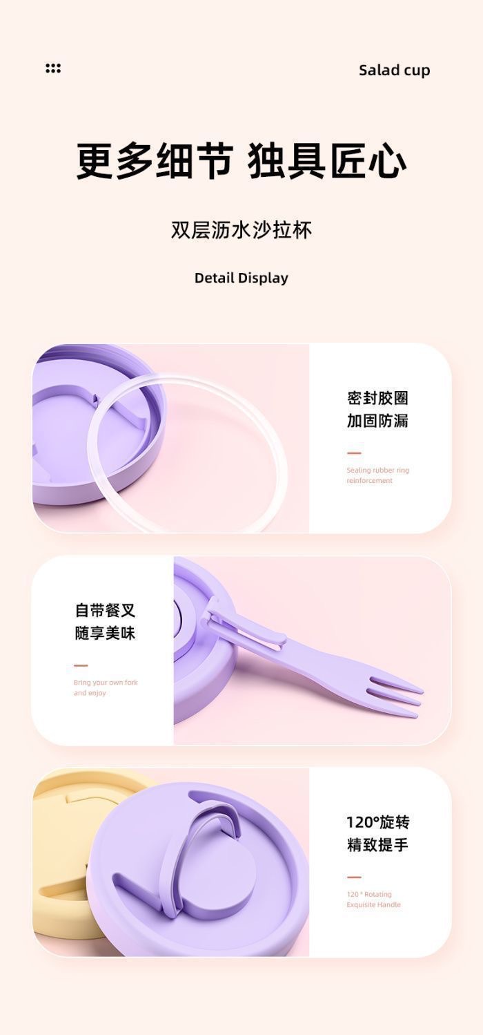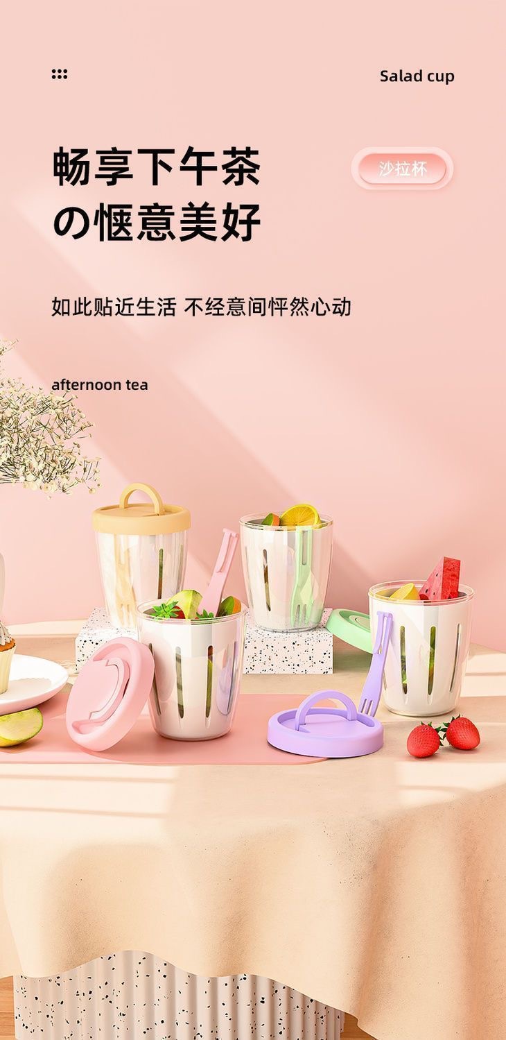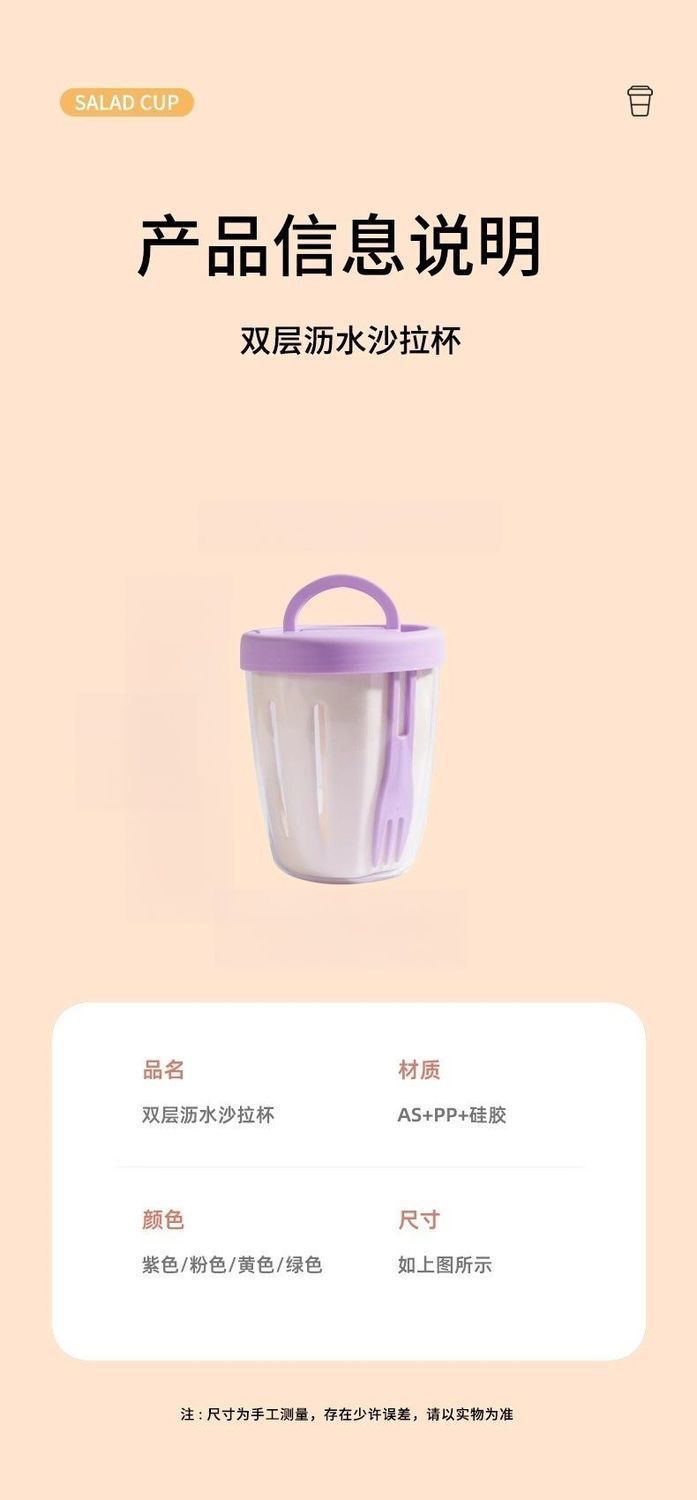 「9.9到手两只!便携水果杯」水果杯双层沥水沙拉杯便携式可沥水带叉子风早餐外野餐燕麦杯餐饮用具