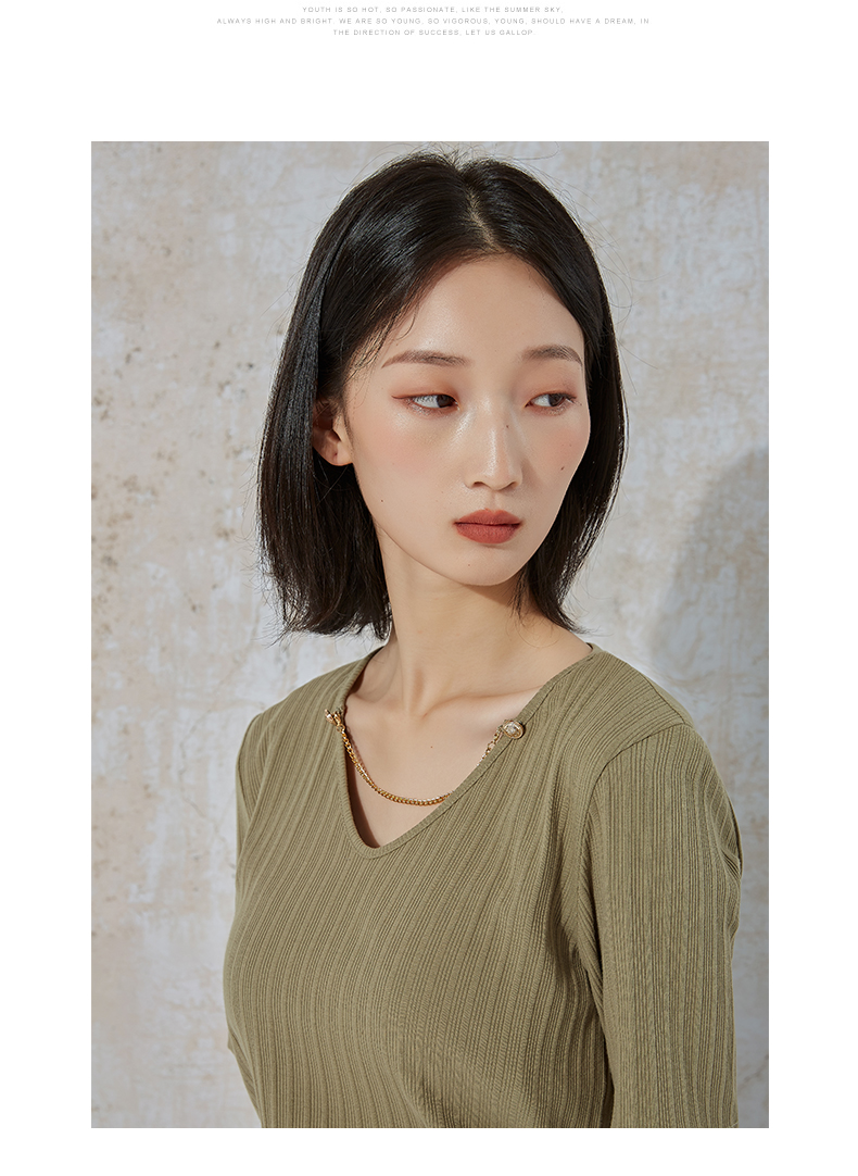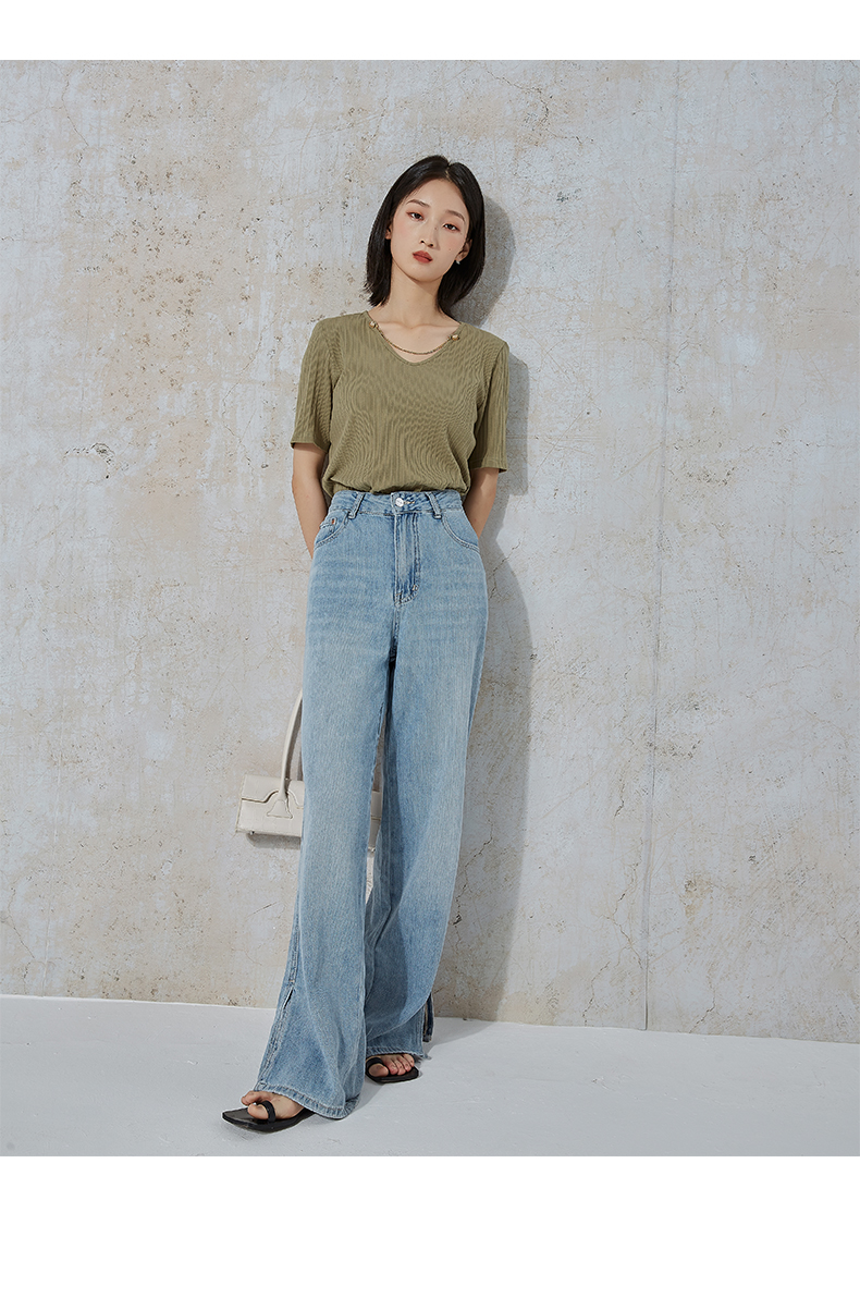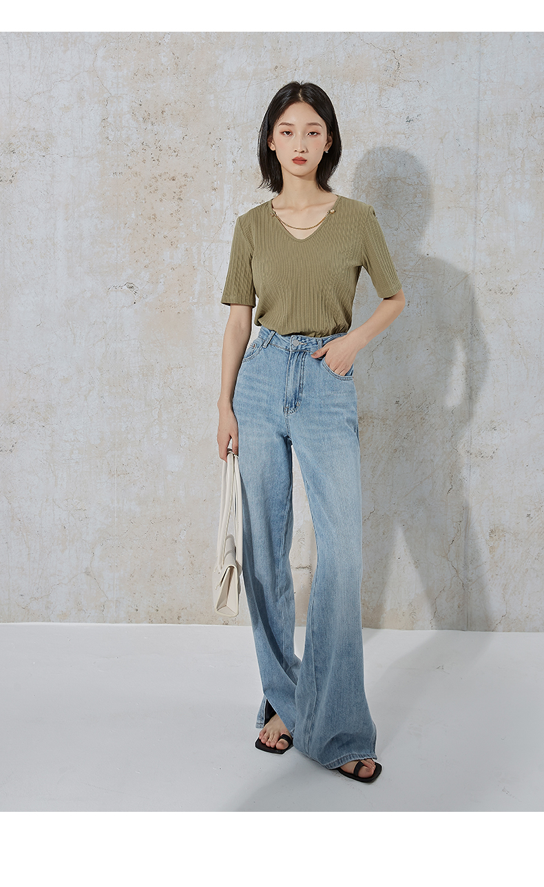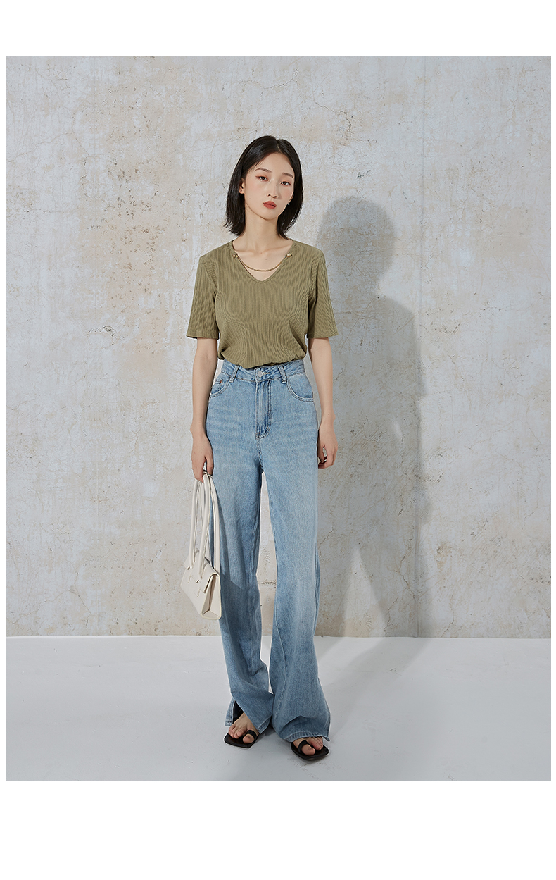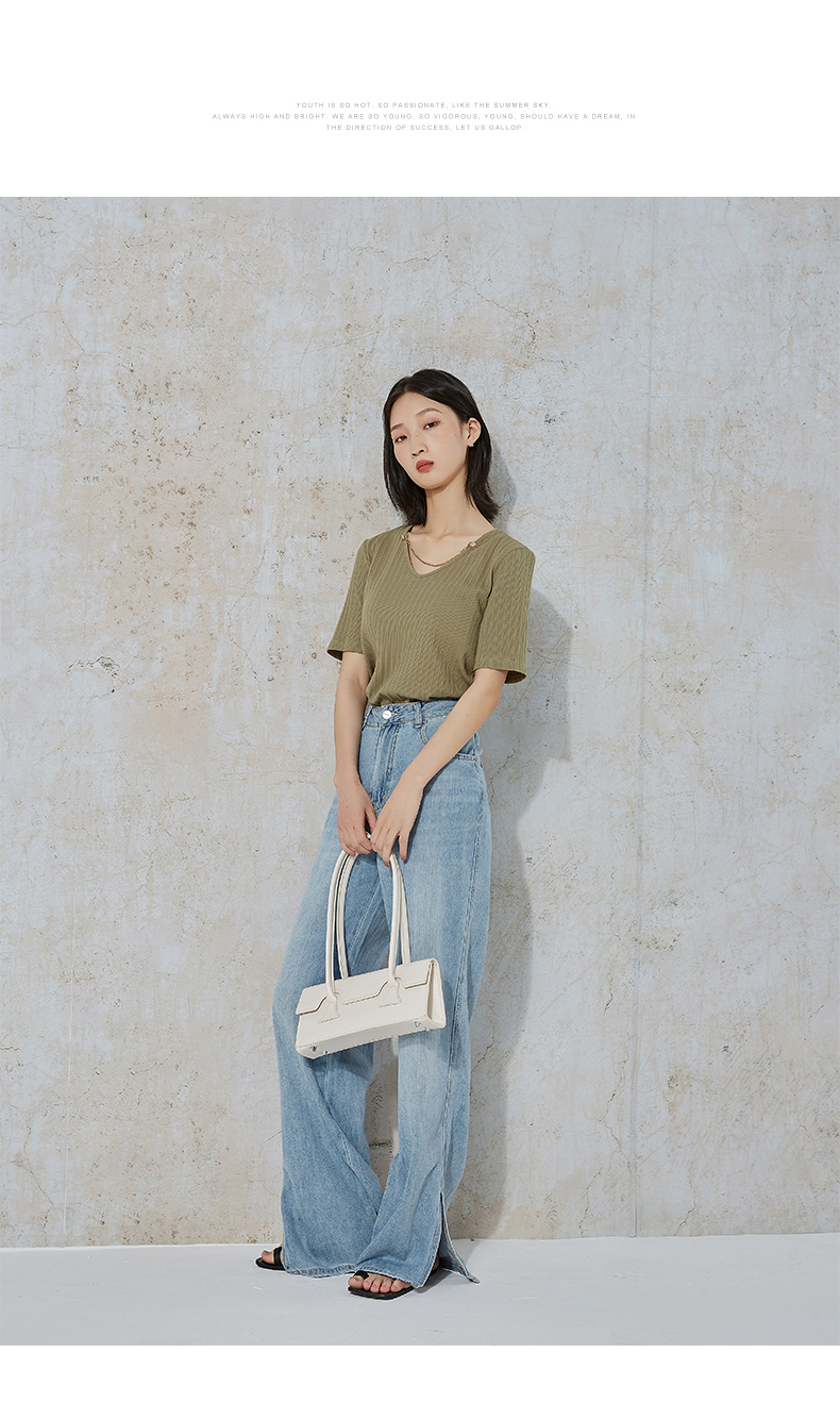 NUTS商场同款V领夏款纯色时尚气质百搭中袖T恤女231022076B