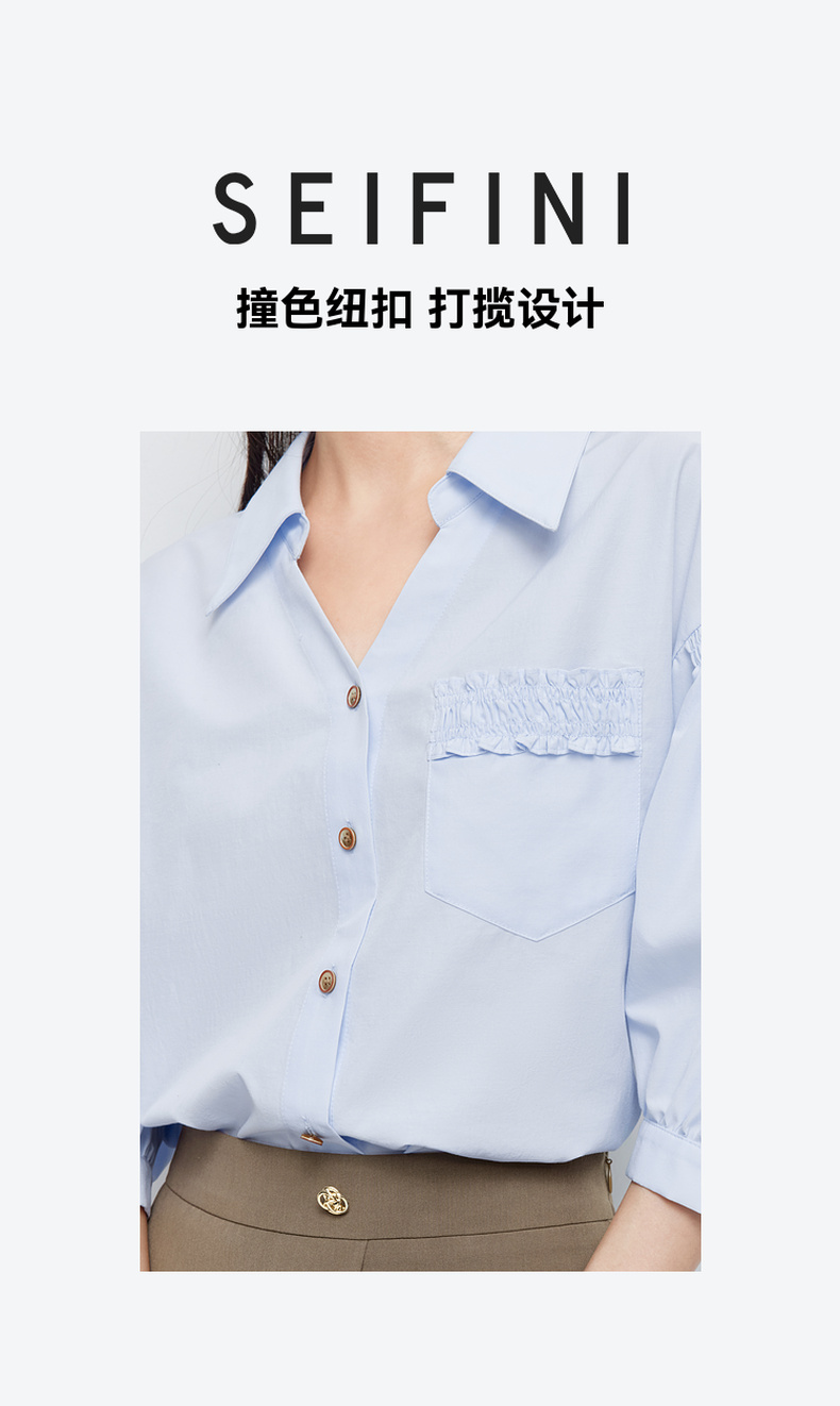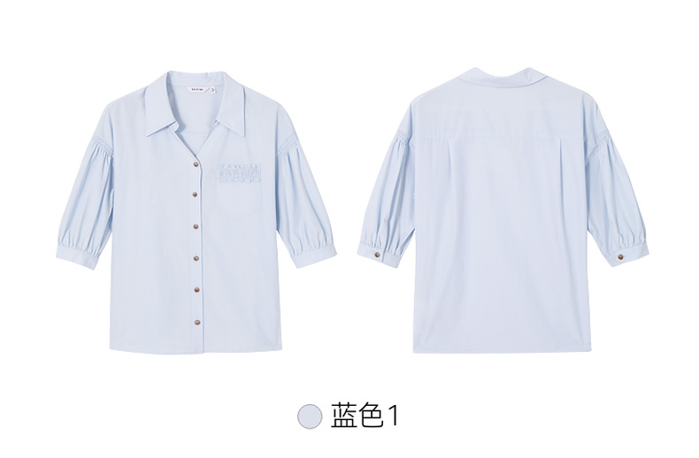 【商场同款】诗凡黎蓝色翻领气质衬衫2024夏新款衬衣女3F4120931
