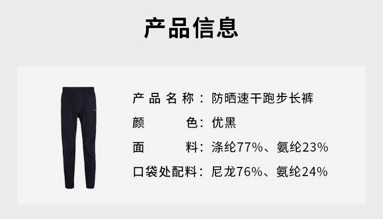 优极UG 防晒速干慢跑训练长裤