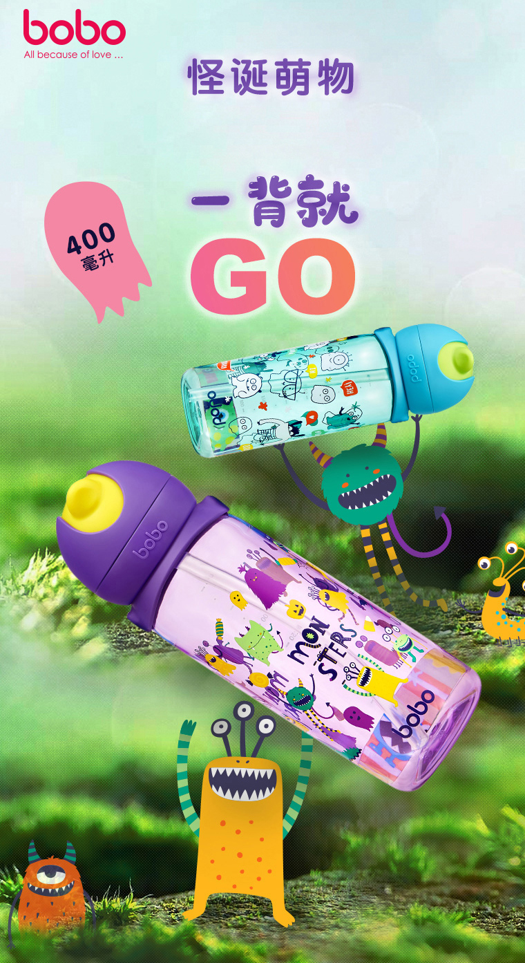 bobo 萌宝英雄儿童吸管杯水杯 400ml