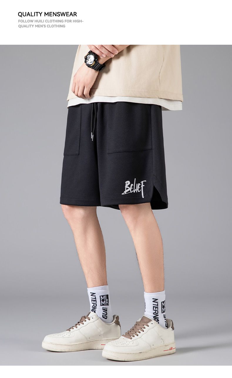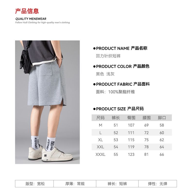 回力冰丝短裤男士夏季新款美式潮牌宽松五分裤弹力针织运动裤