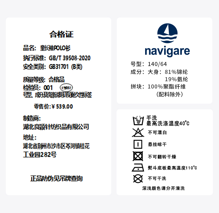 【120-160】【纳维凯尔】意大利小帆船男童休闲长袖POLO衫
