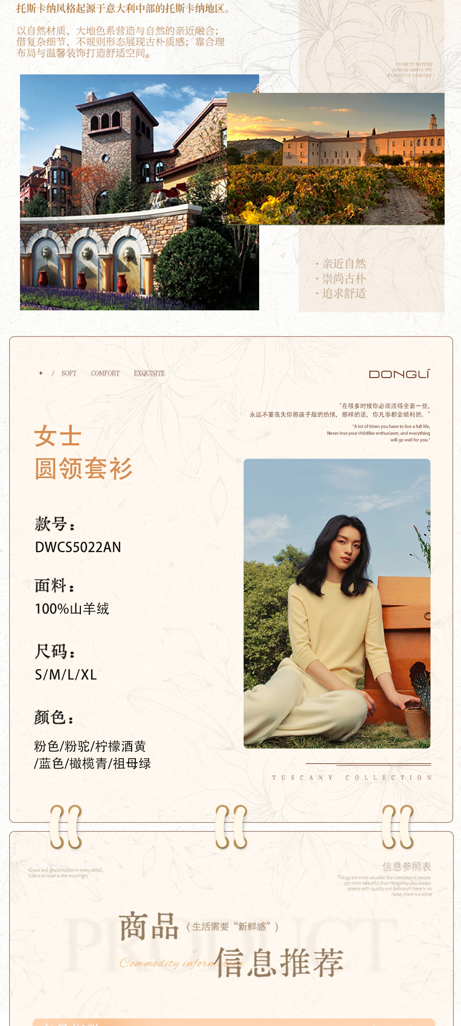 东黎 • 托斯卡纳系列之一朵晴 山羊绒女士圆领套衫 5022