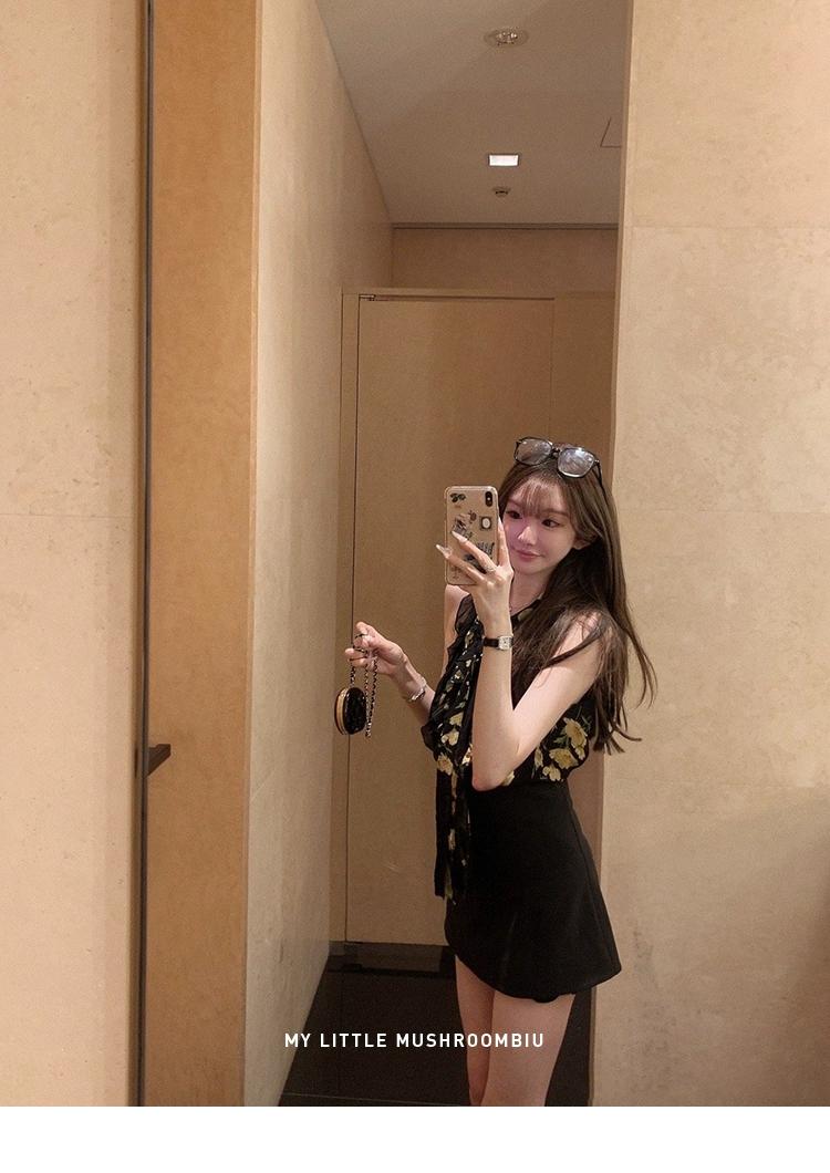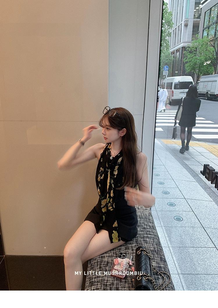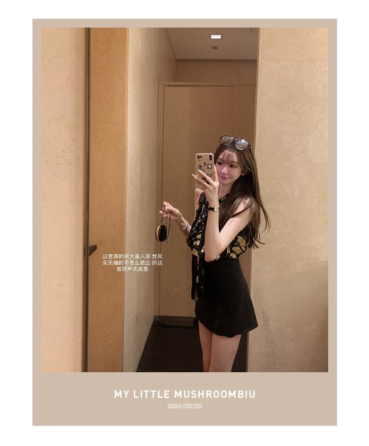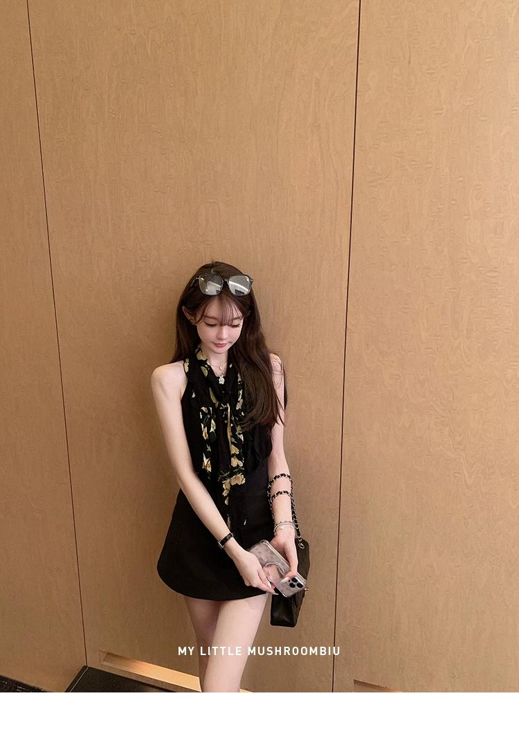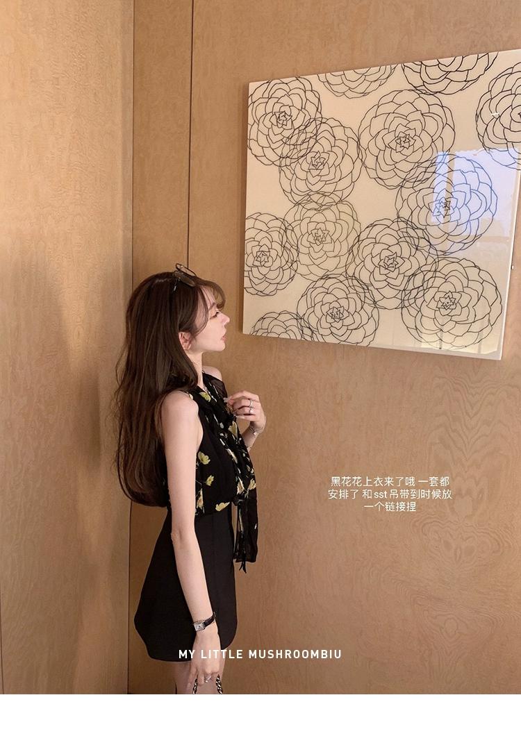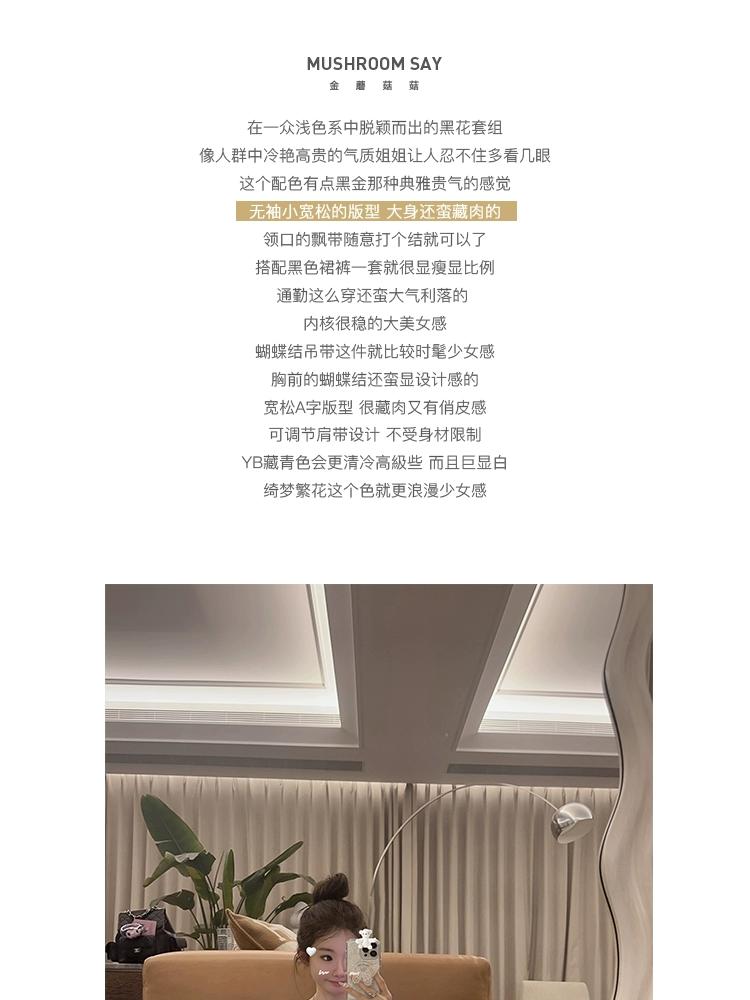 金蘑菇菇 love in raisin大英博物馆/无袖挂脖黑花上衣短裤套装