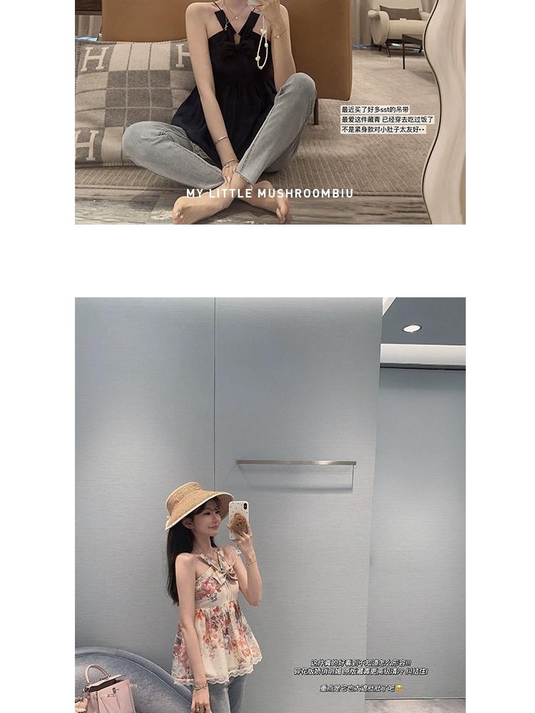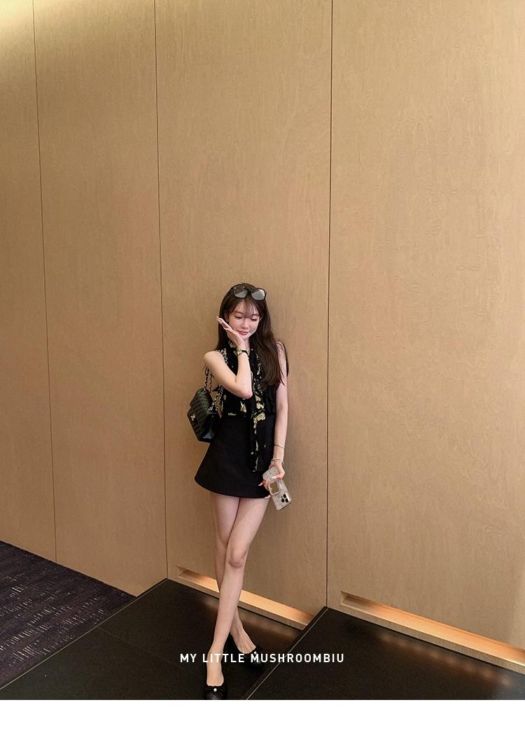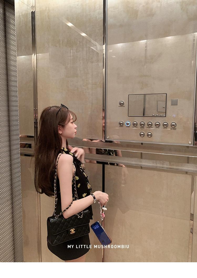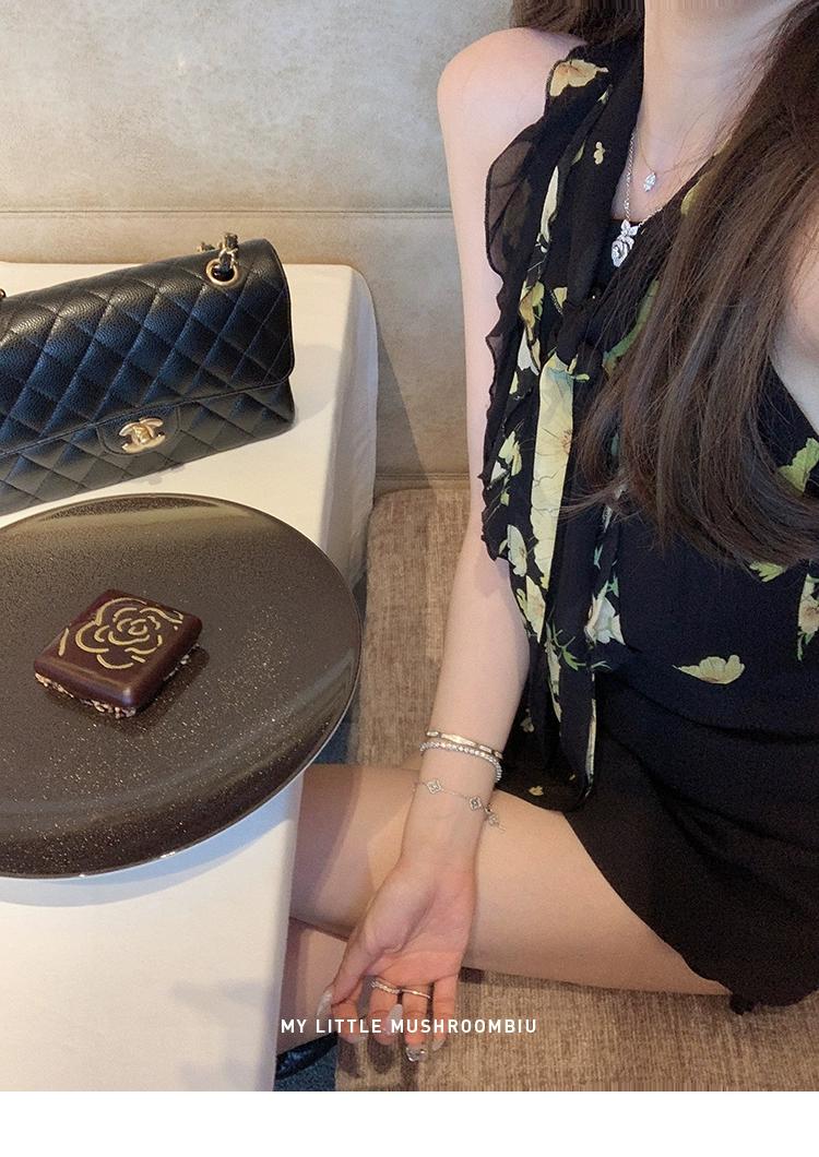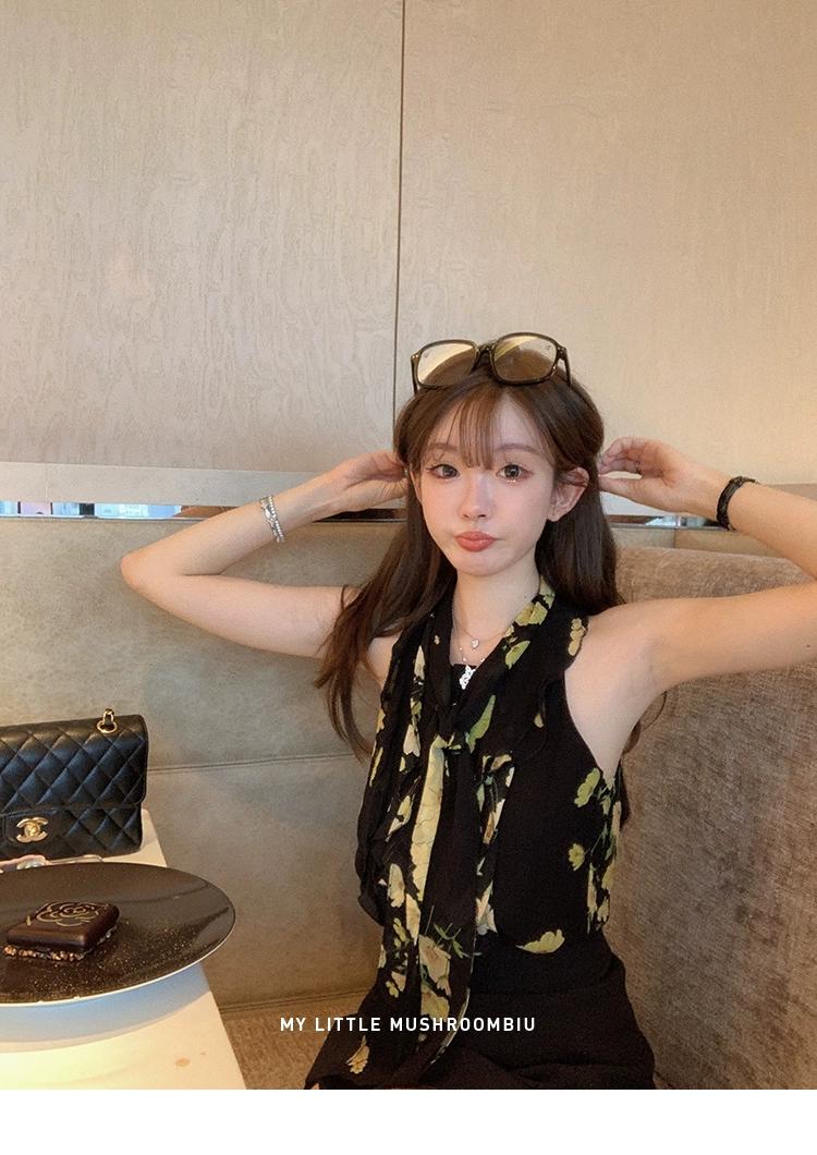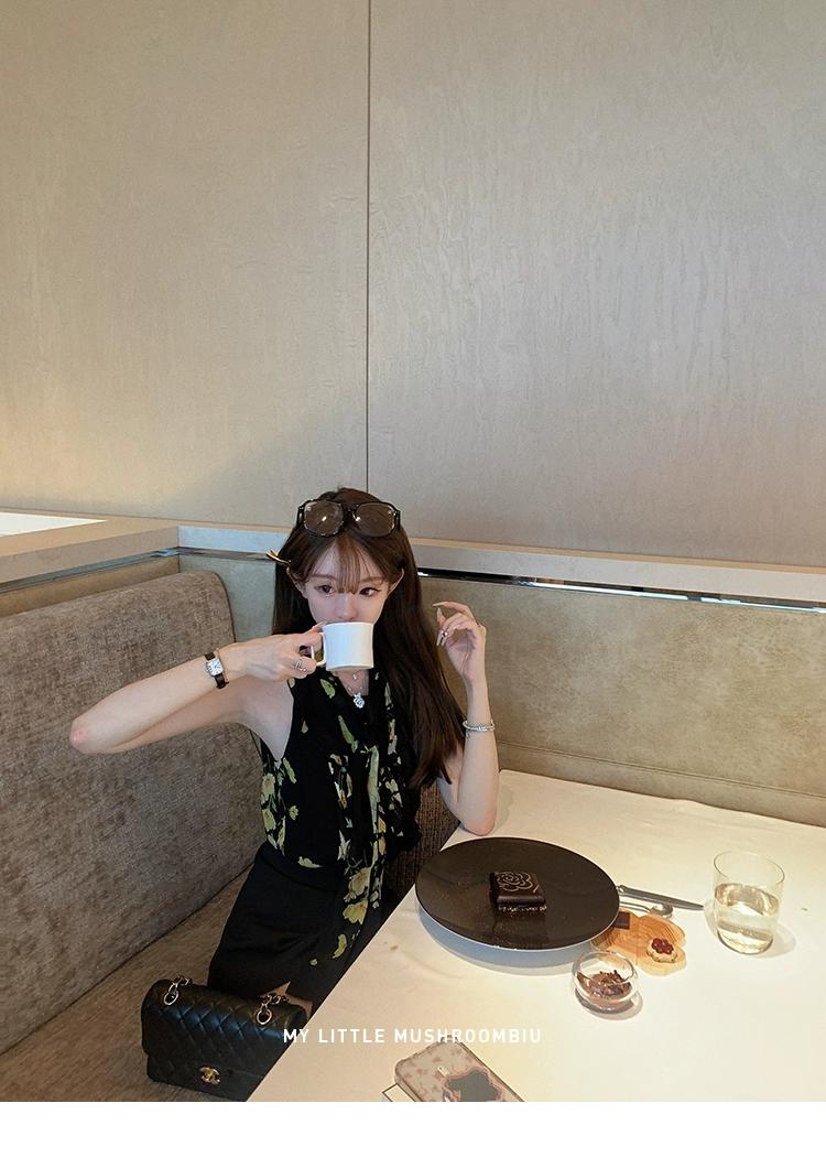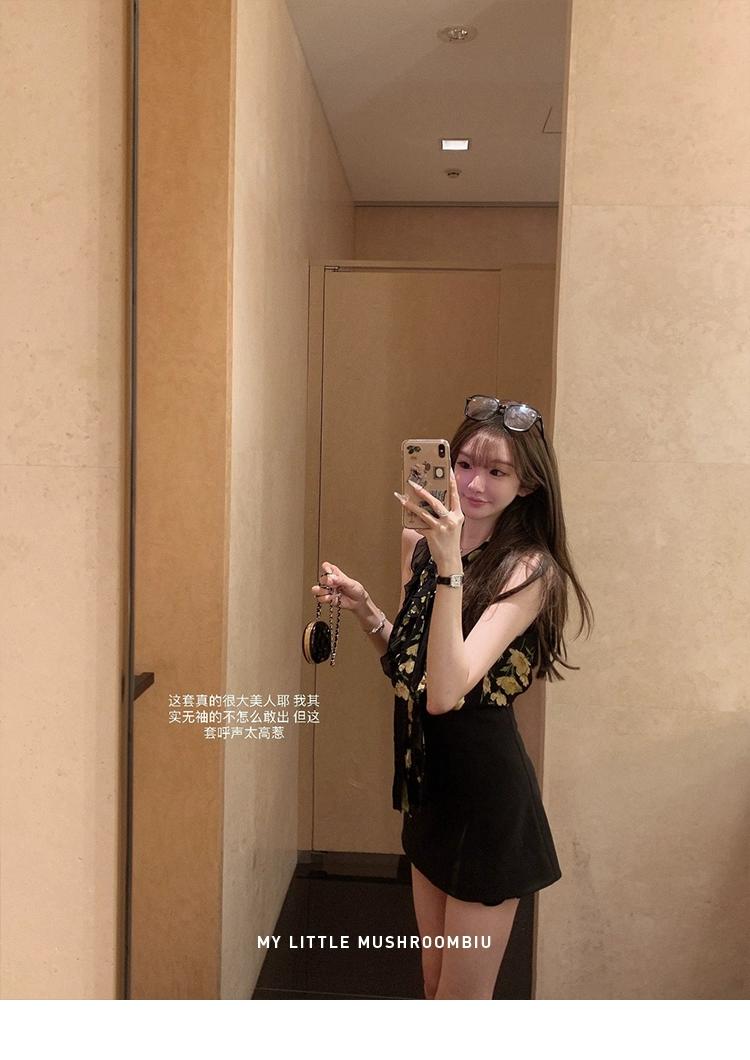 金蘑菇菇 love in raisin大英博物馆/无袖挂脖黑花上衣短裤套装