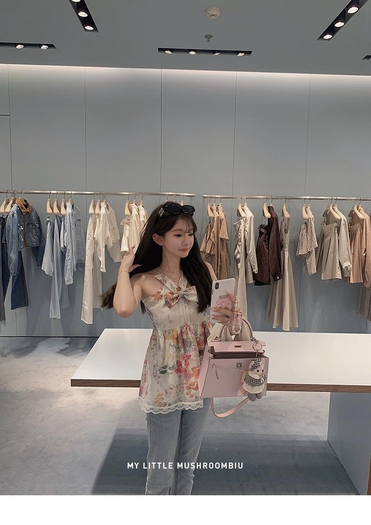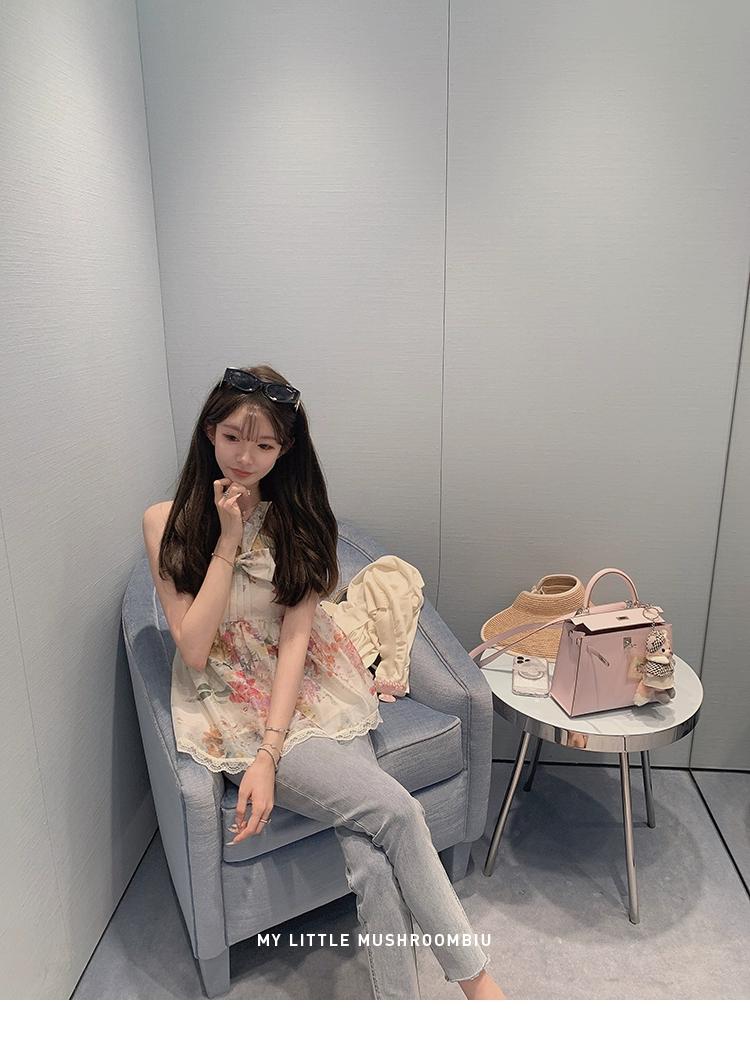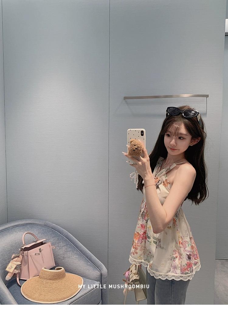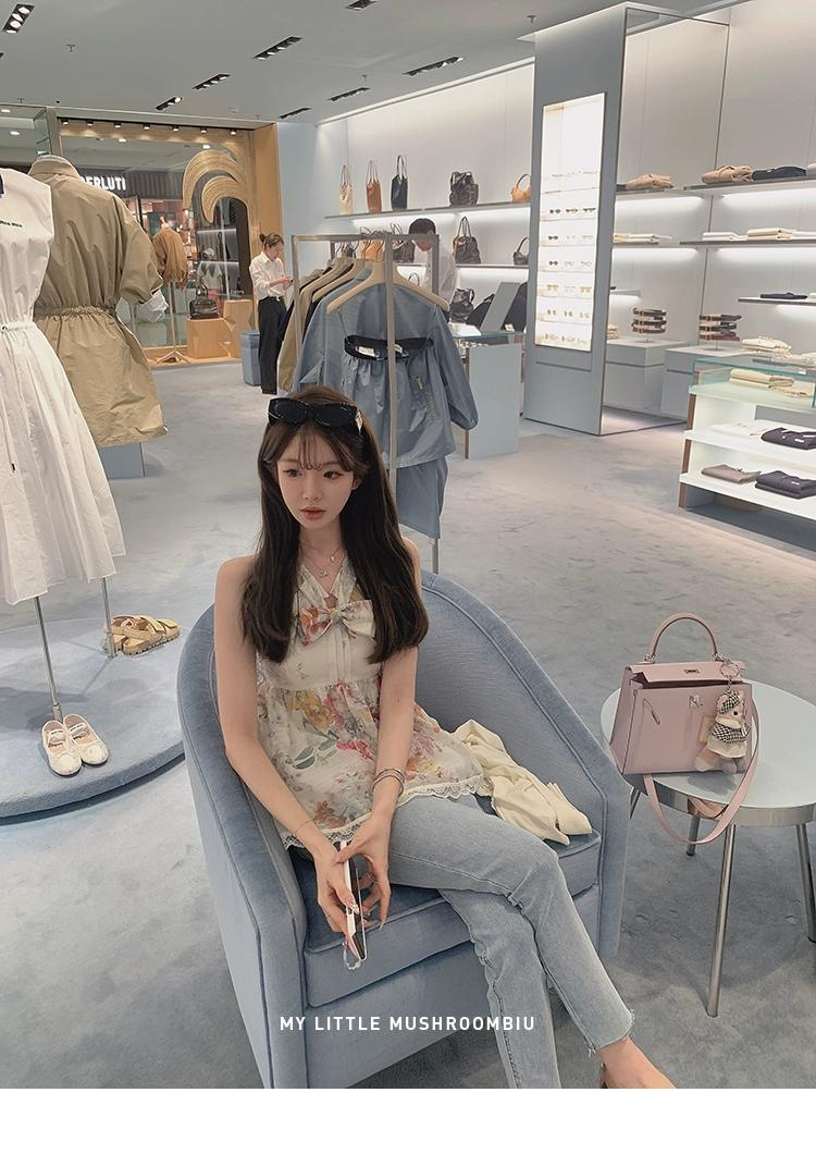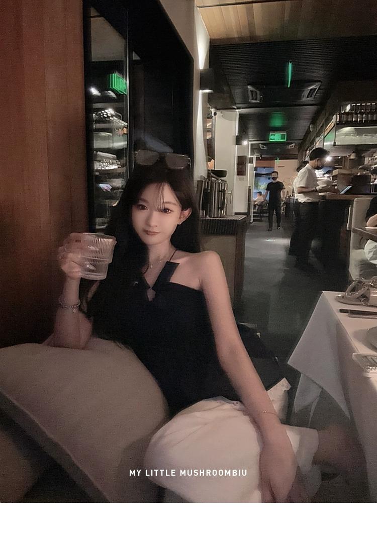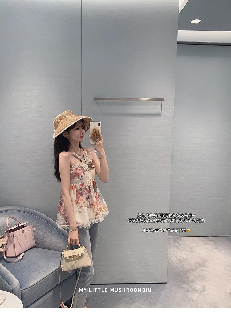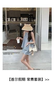 金蘑菇菇 love in raisin大英博物馆/无袖挂脖黑花上衣短裤套装