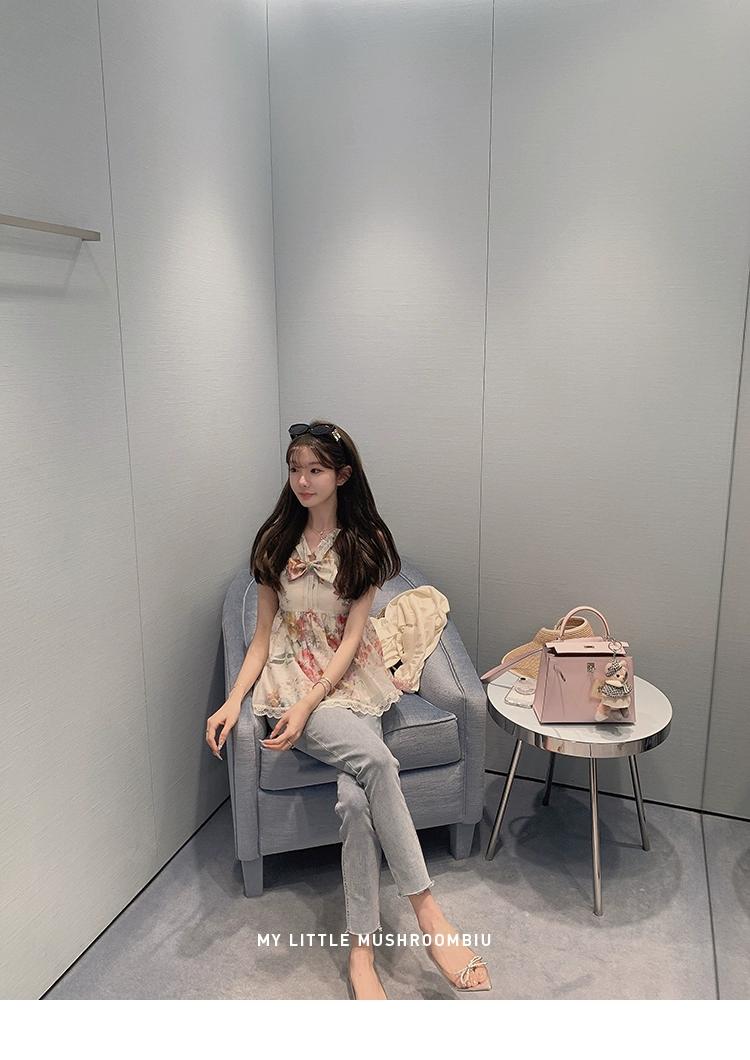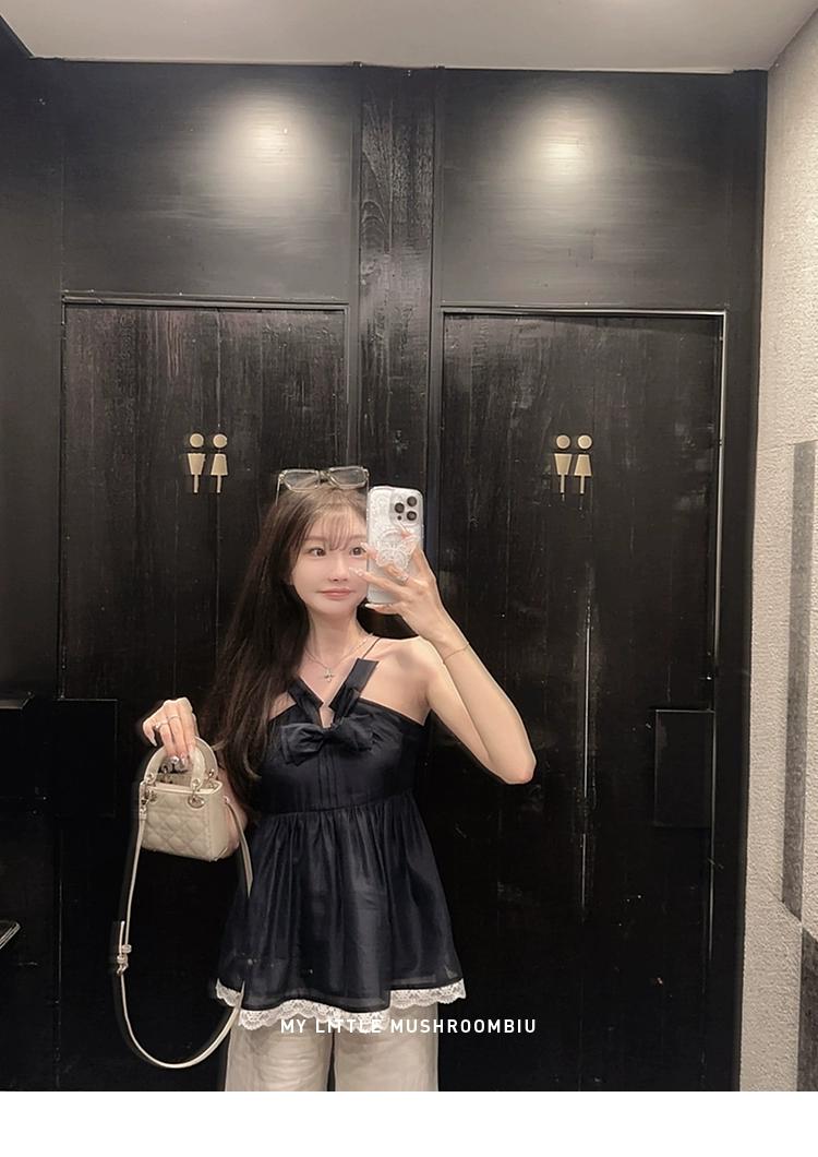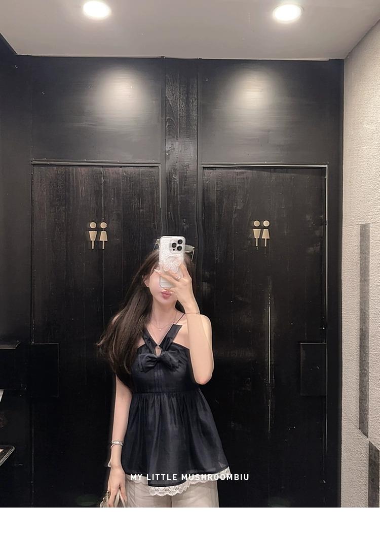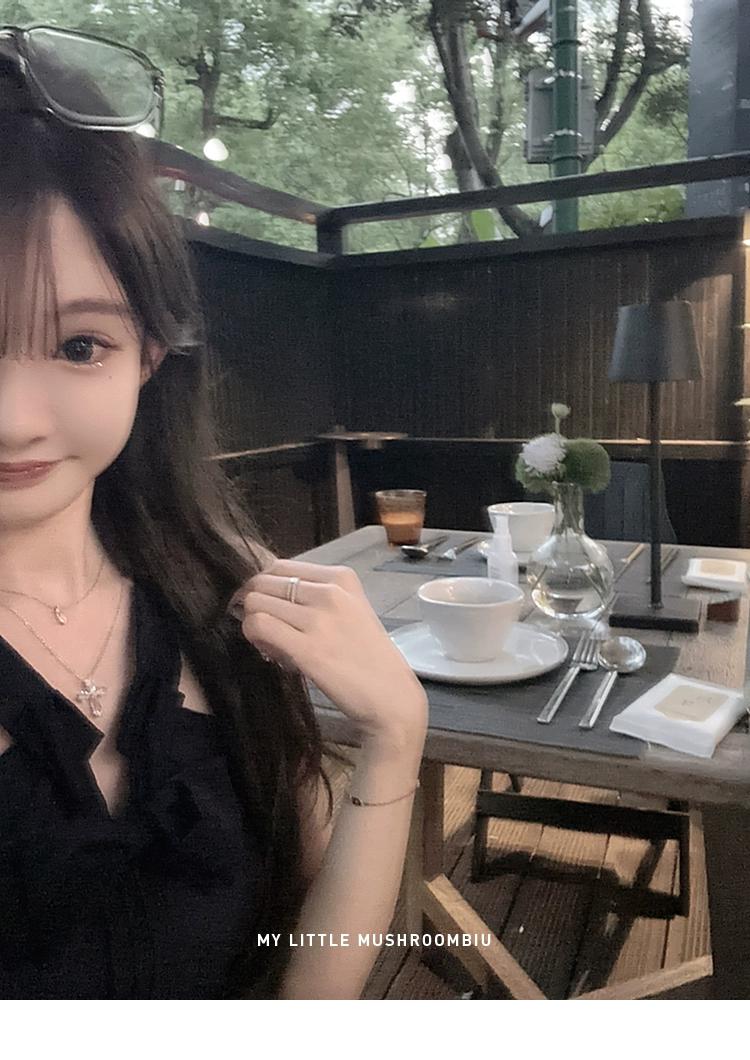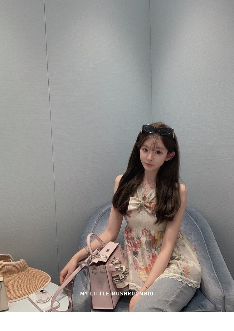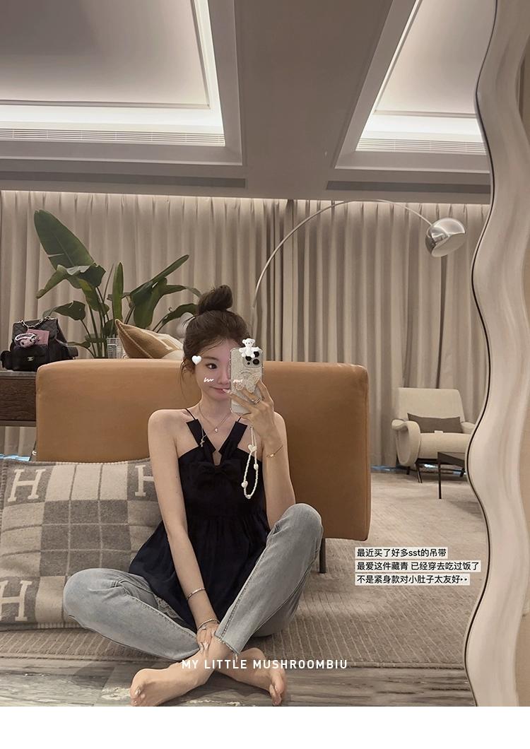 金蘑菇菇 love in raisin大英博物馆/无袖挂脖黑花上衣短裤套装