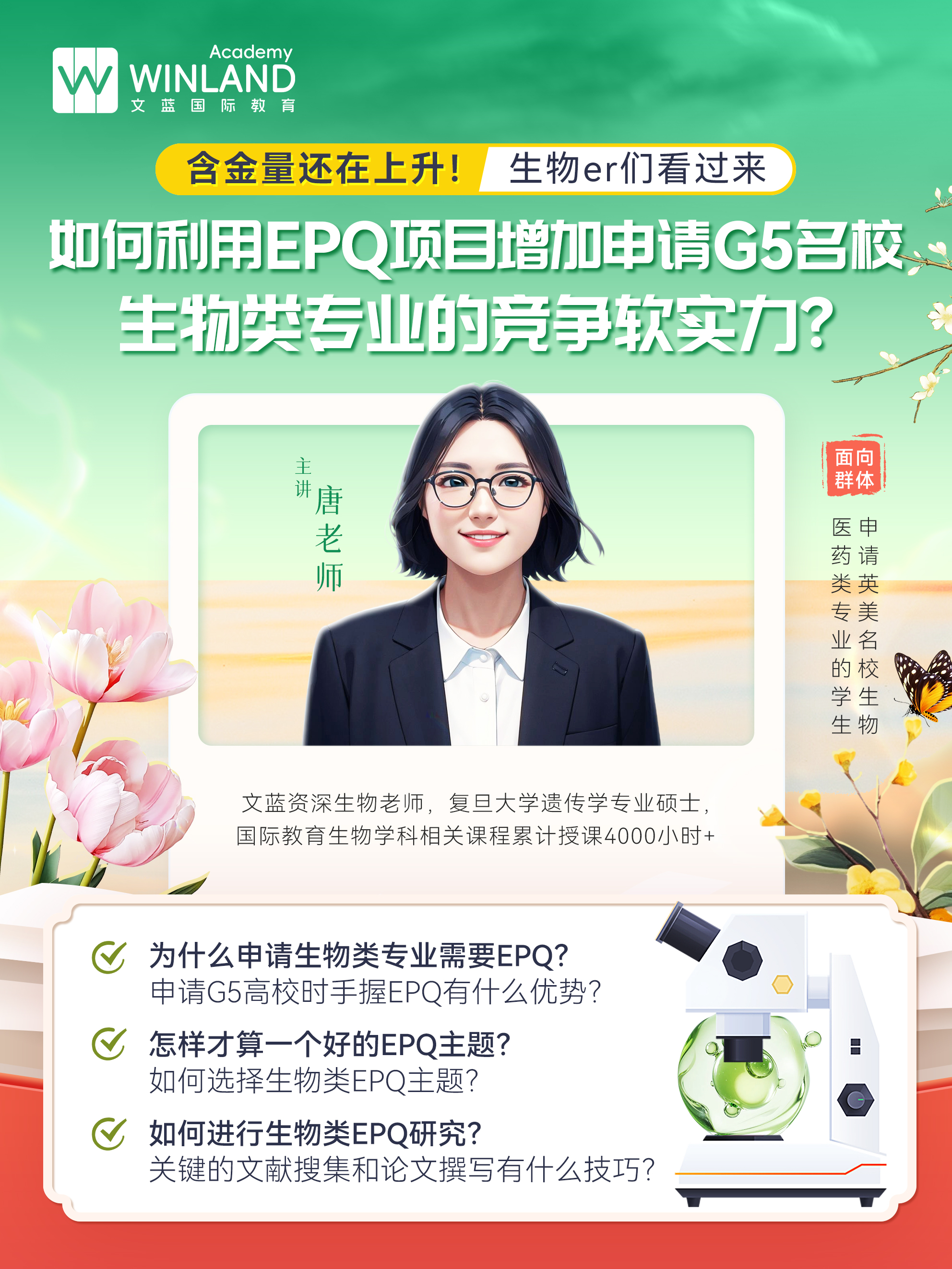 【2.20】含金量还在上升!生物er们看过来,如何利用EPQ项目增加申请G5名校生物类专业的竞争软实力?