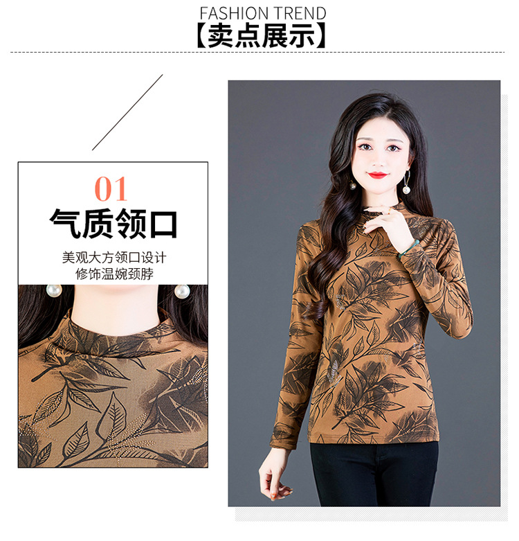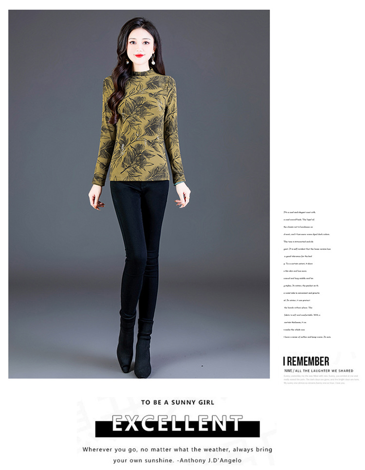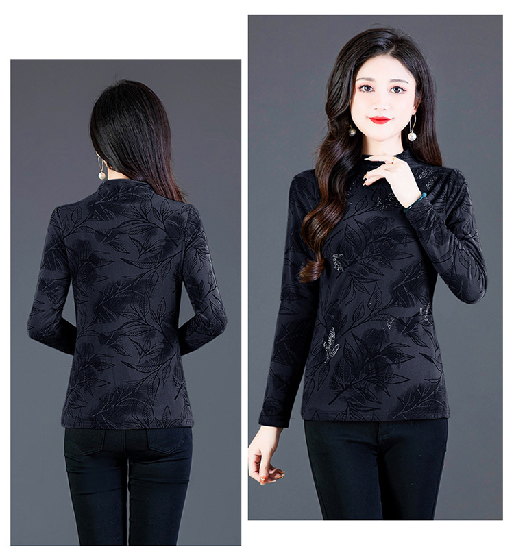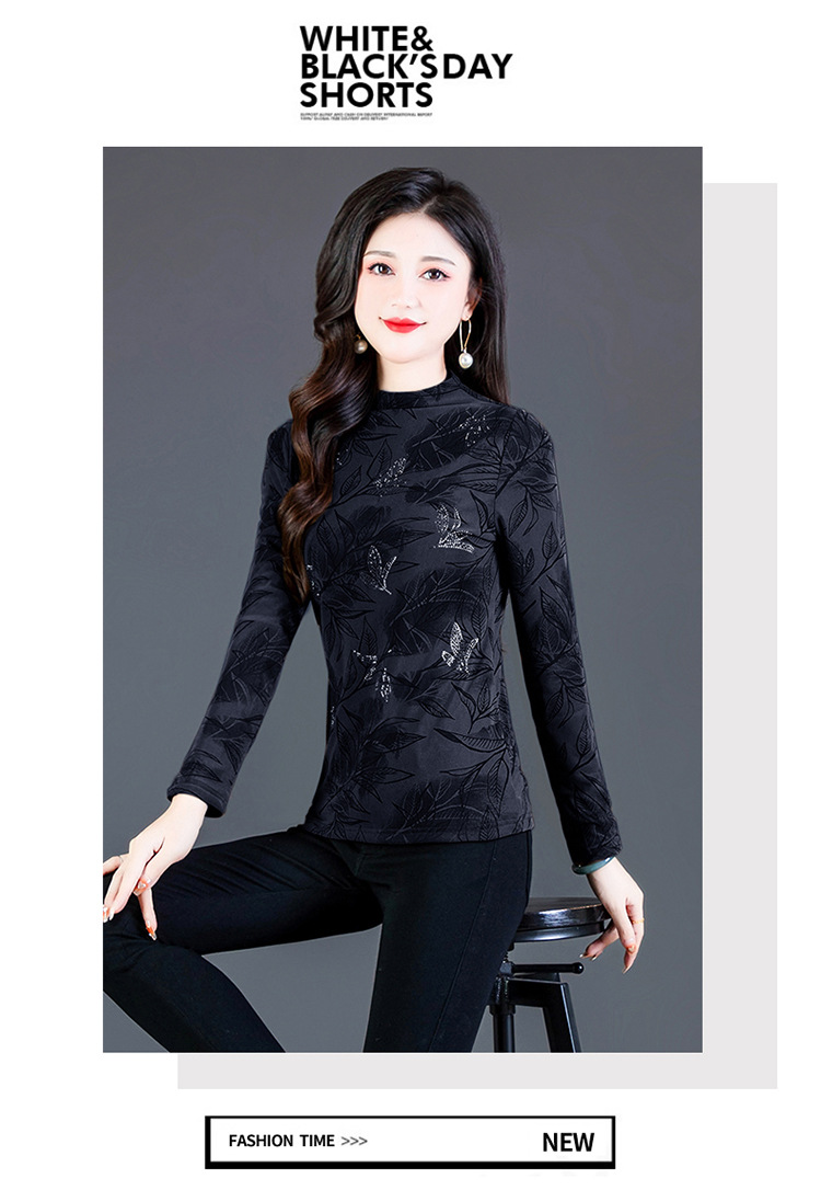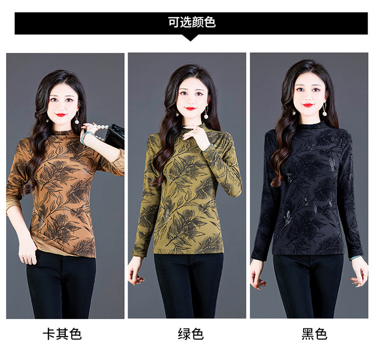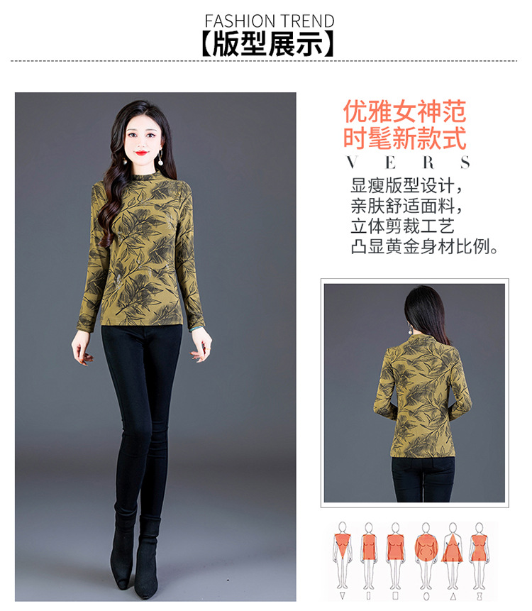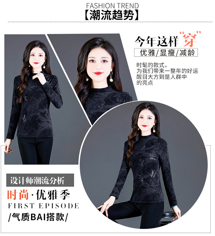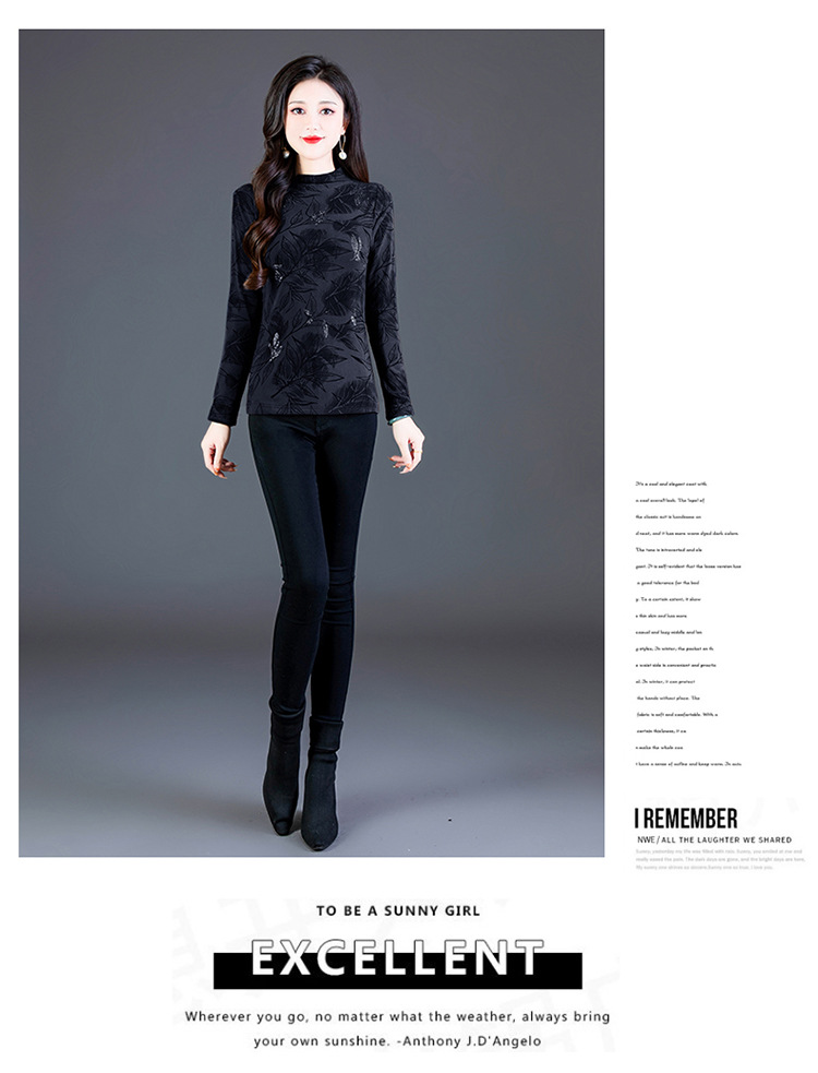 时尚修身半高领丝绒绣花长袖打底衫KQL1306