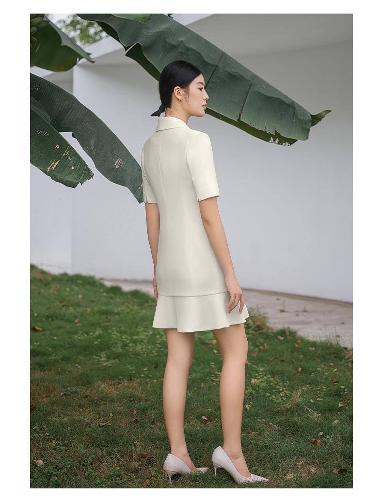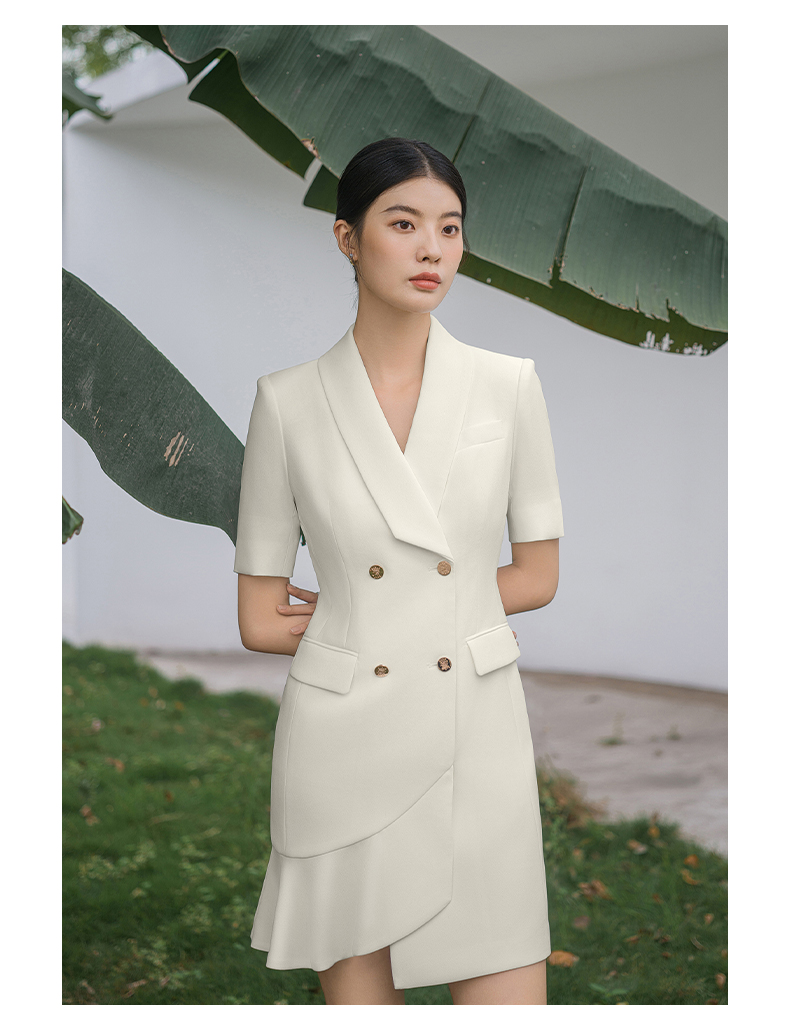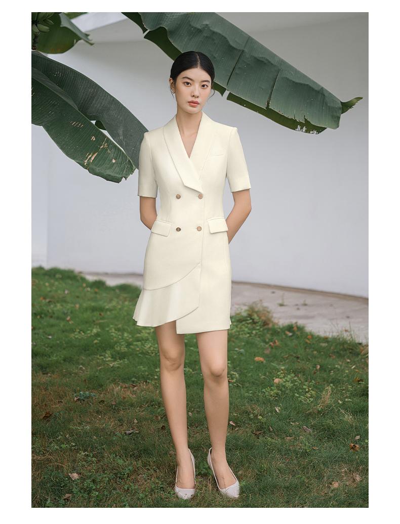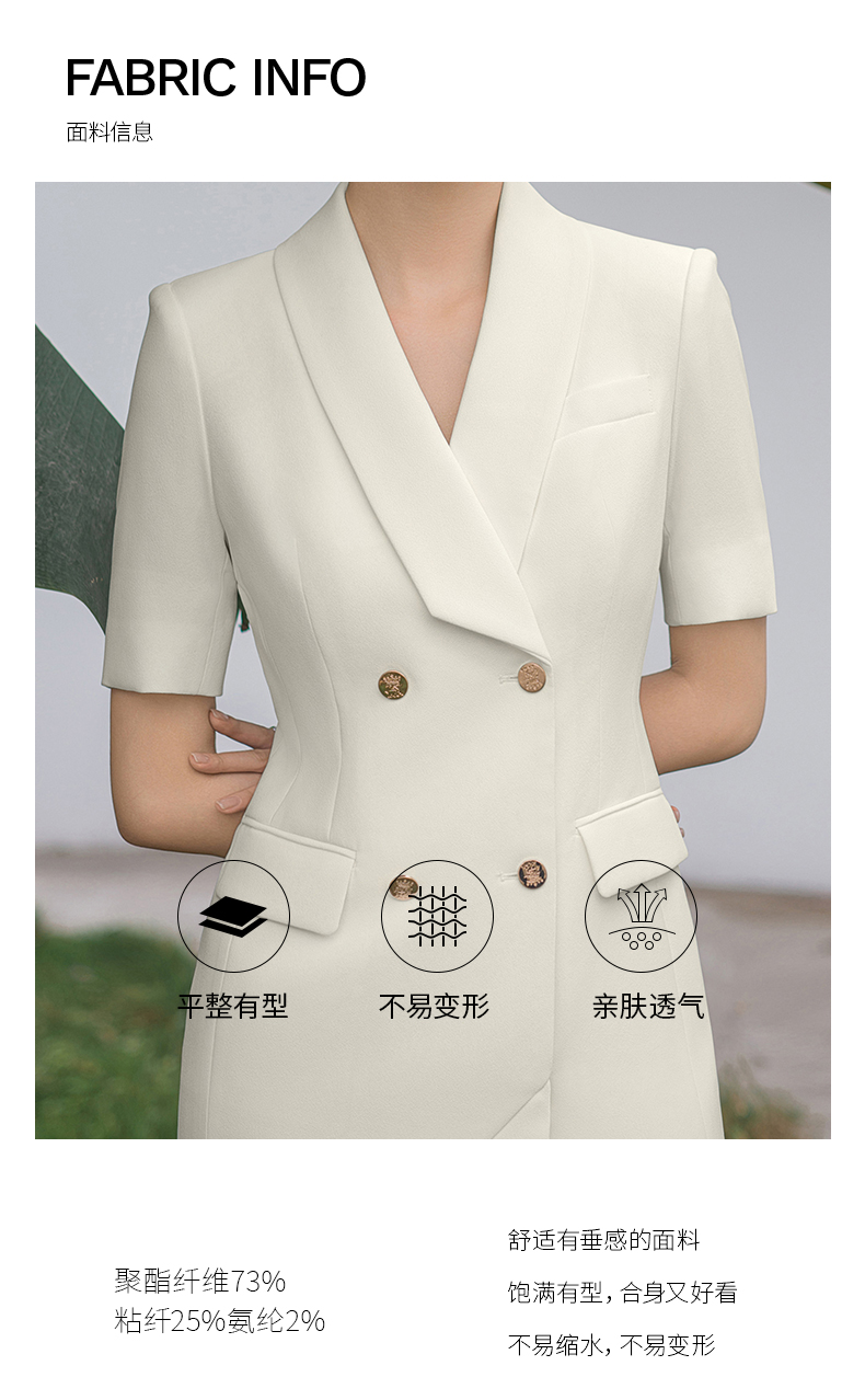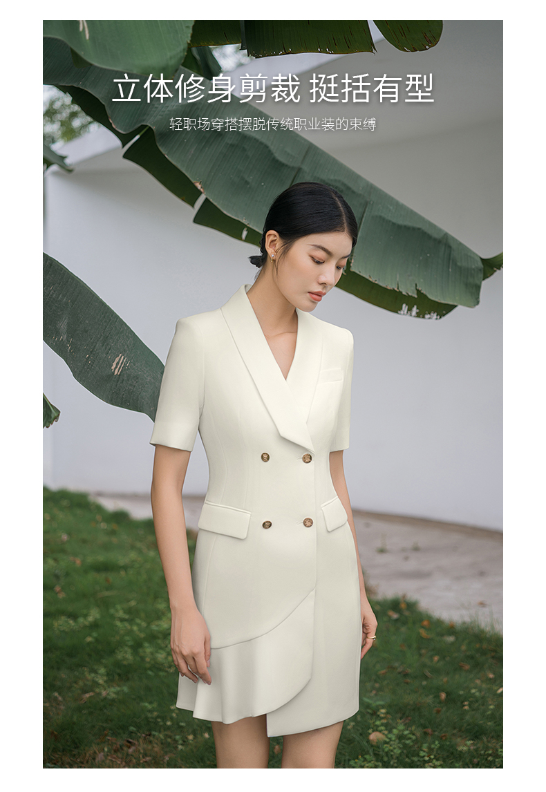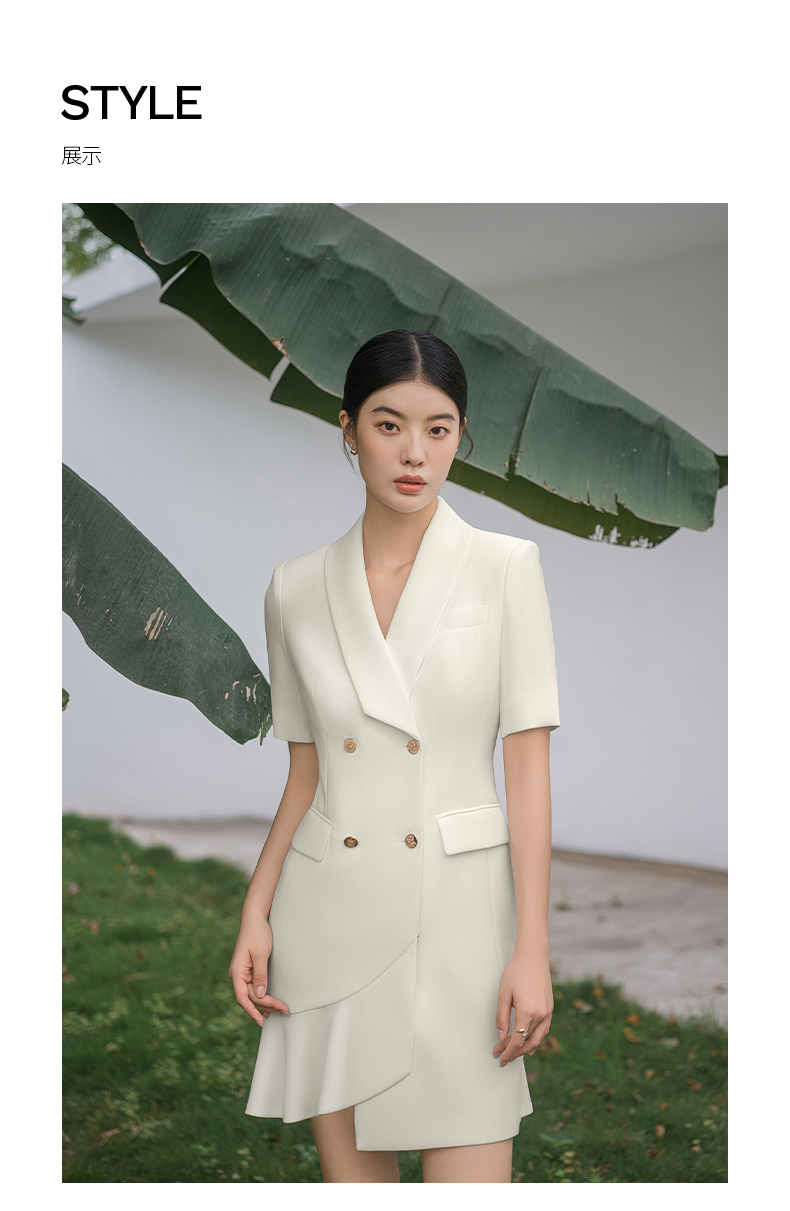IWY/杏色西装连衣裙短袖设计感修身高级通勤摄影医美商务销售工装Q11255