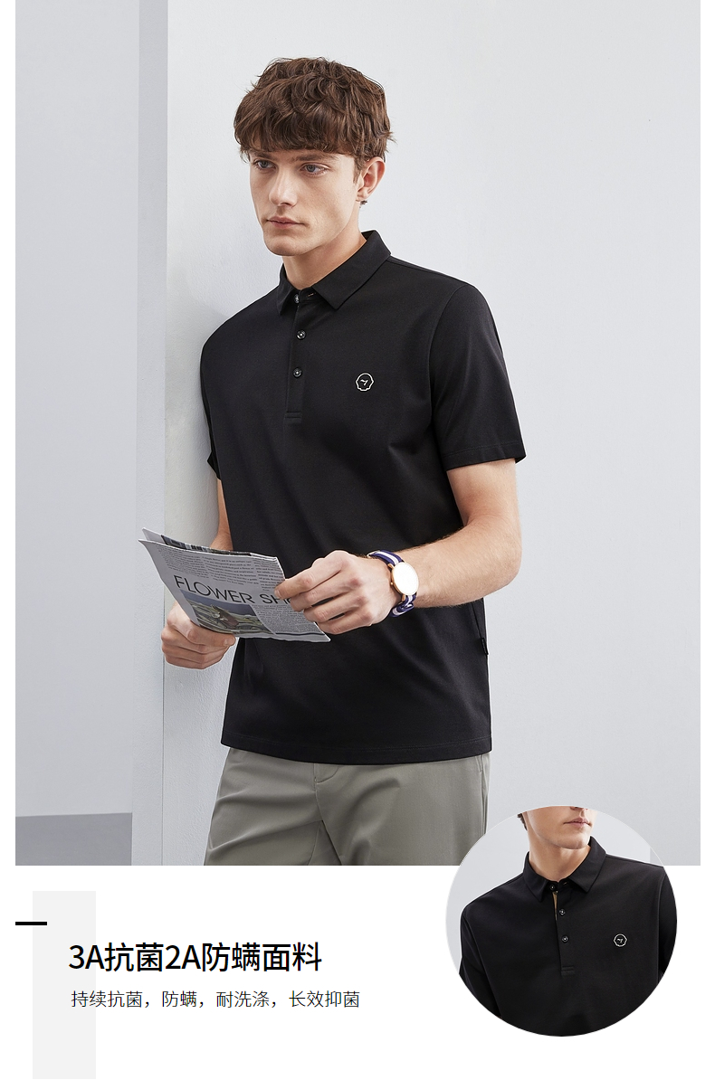 【特价3A抗菌/2A防螨】柒牌polo衫短袖男夏季薄款时尚休闲翻领保罗衫 124T70070