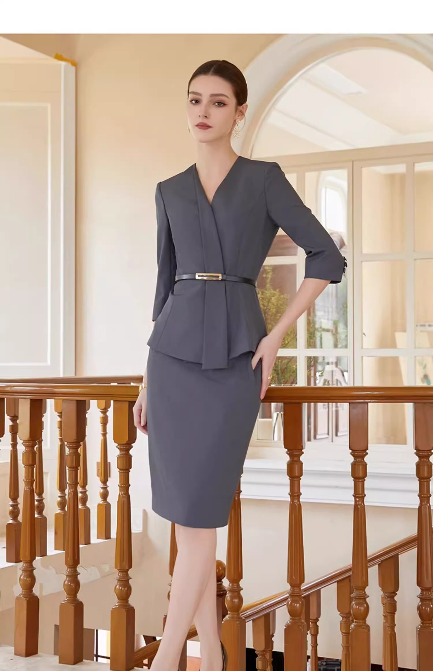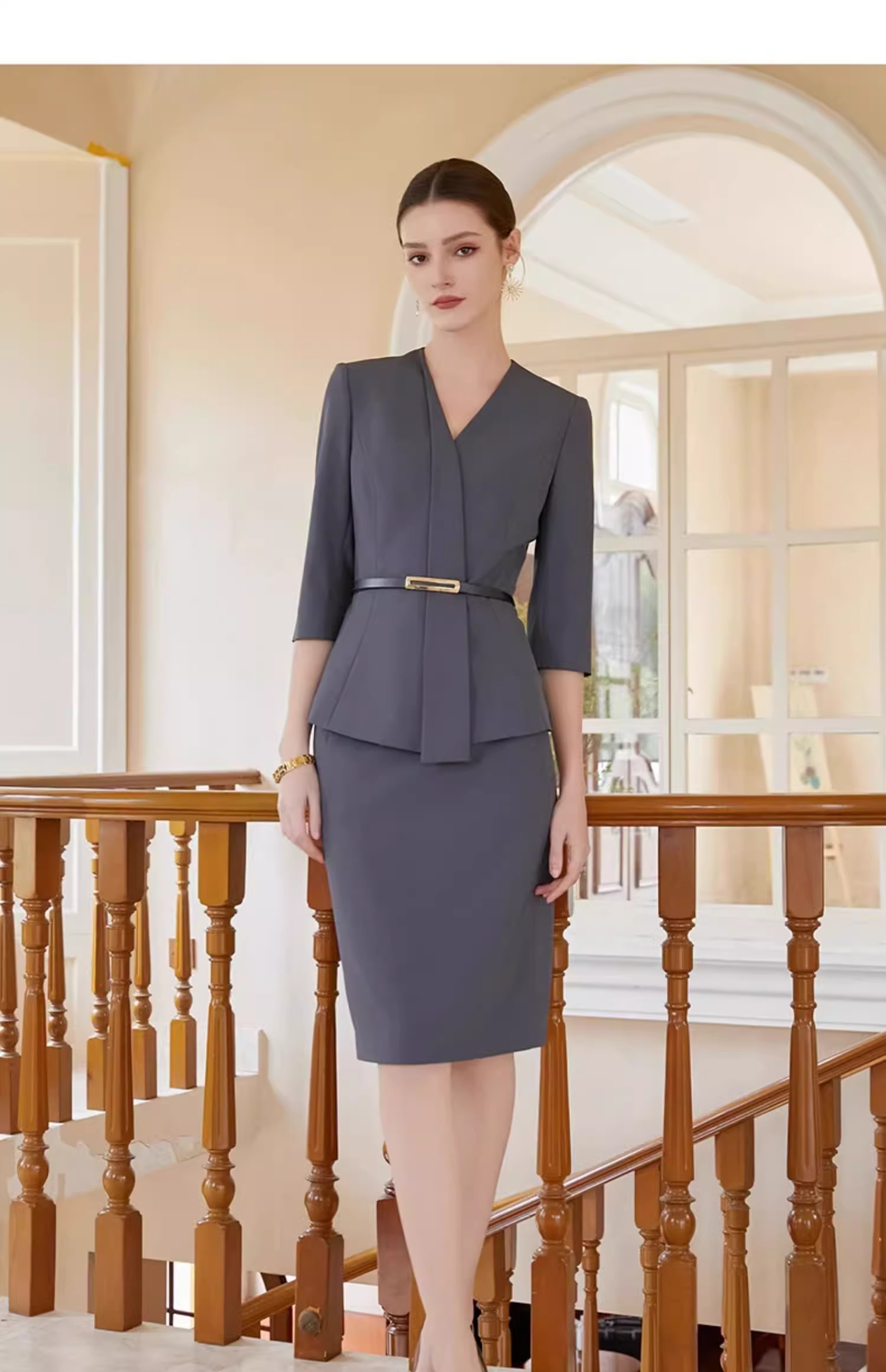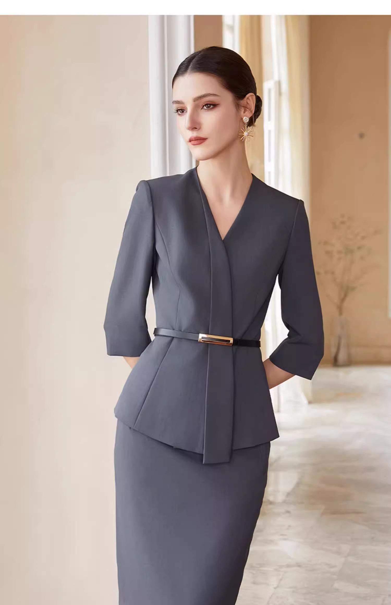 IWY/灰色酒店经理职业套装女西装配裙子两件套夏季案场客服工作服高端CS1998