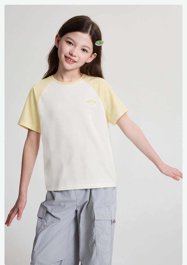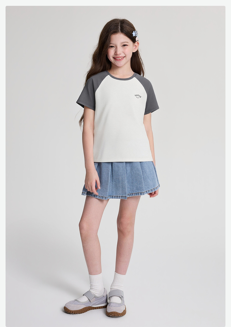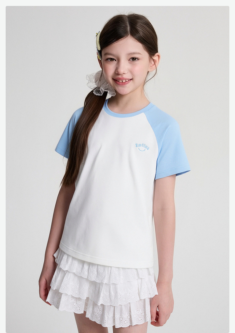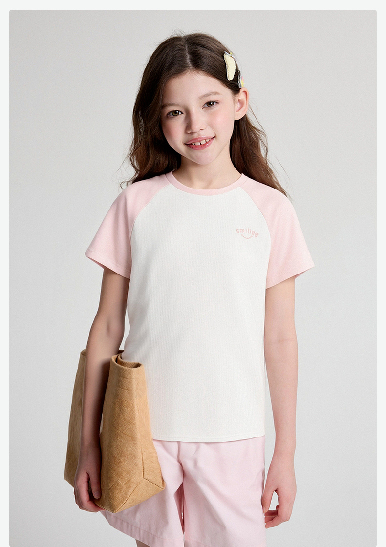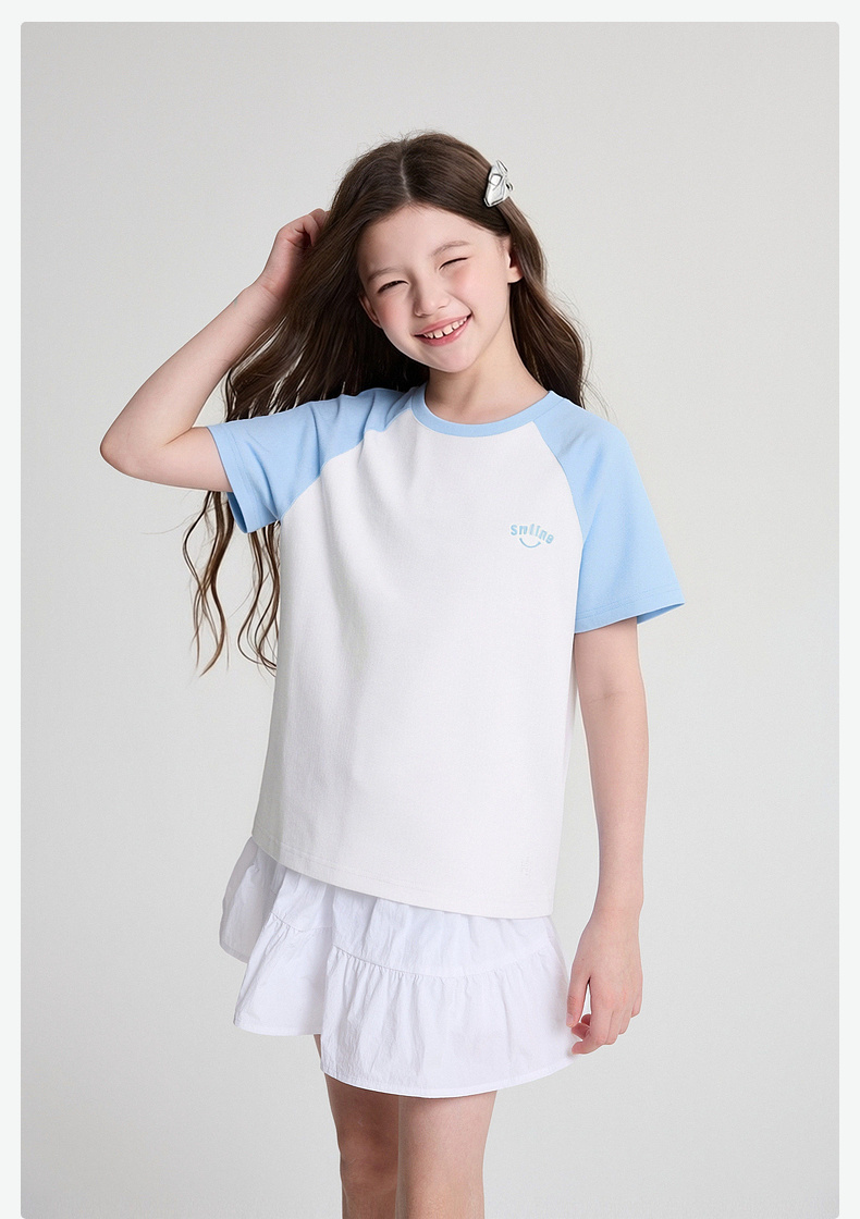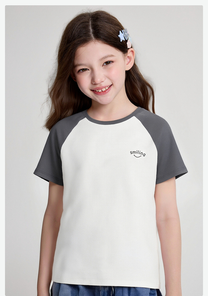 笛莎/Deesha 2026年夏季新款女童中大童插肩袖撞色T恤