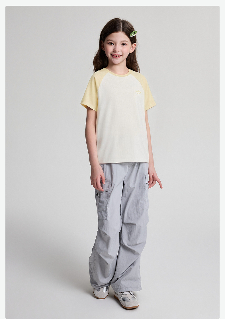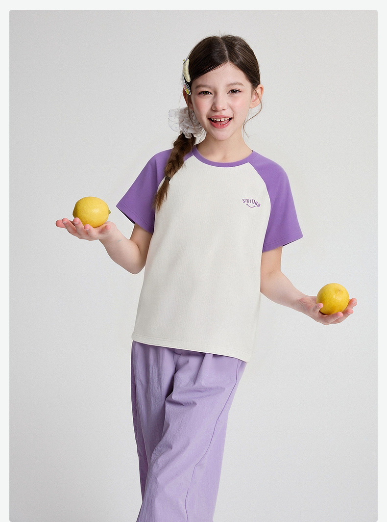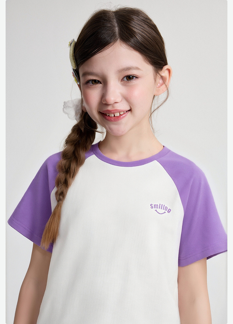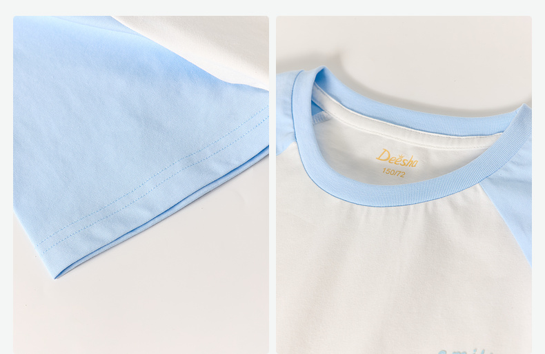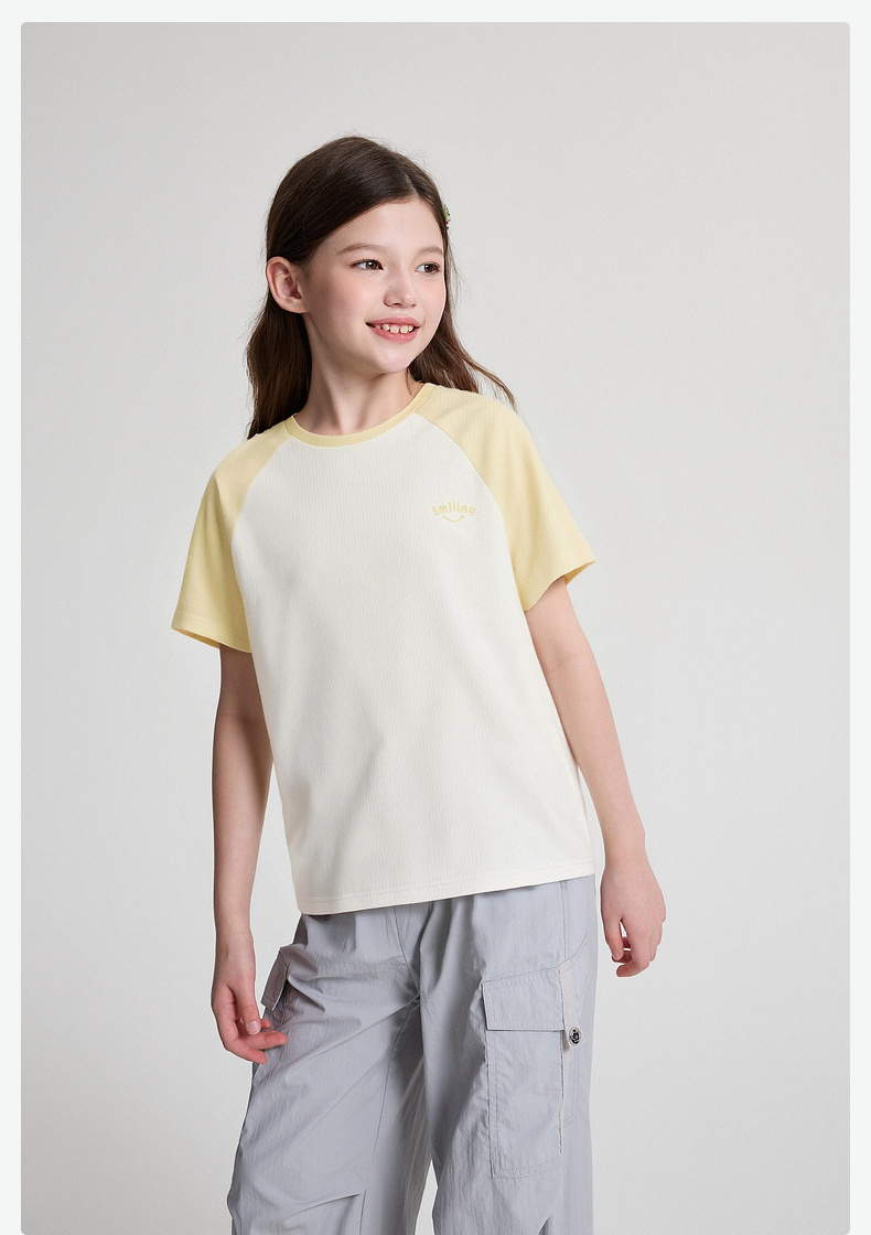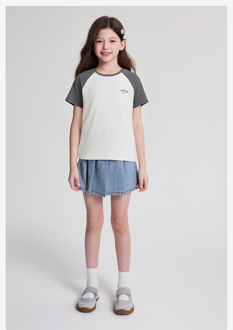 笛莎/Deesha 2026年夏季新款女童中大童插肩袖撞色T恤