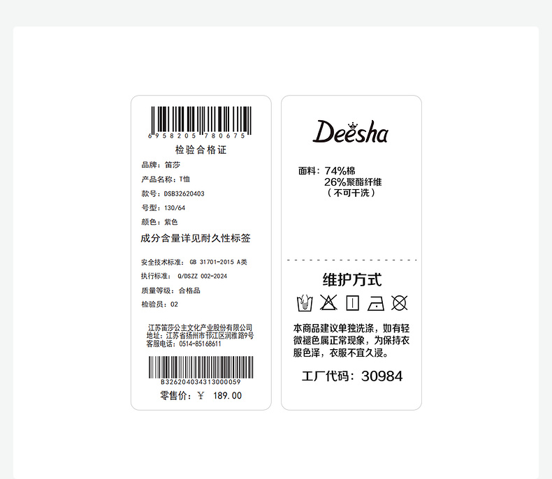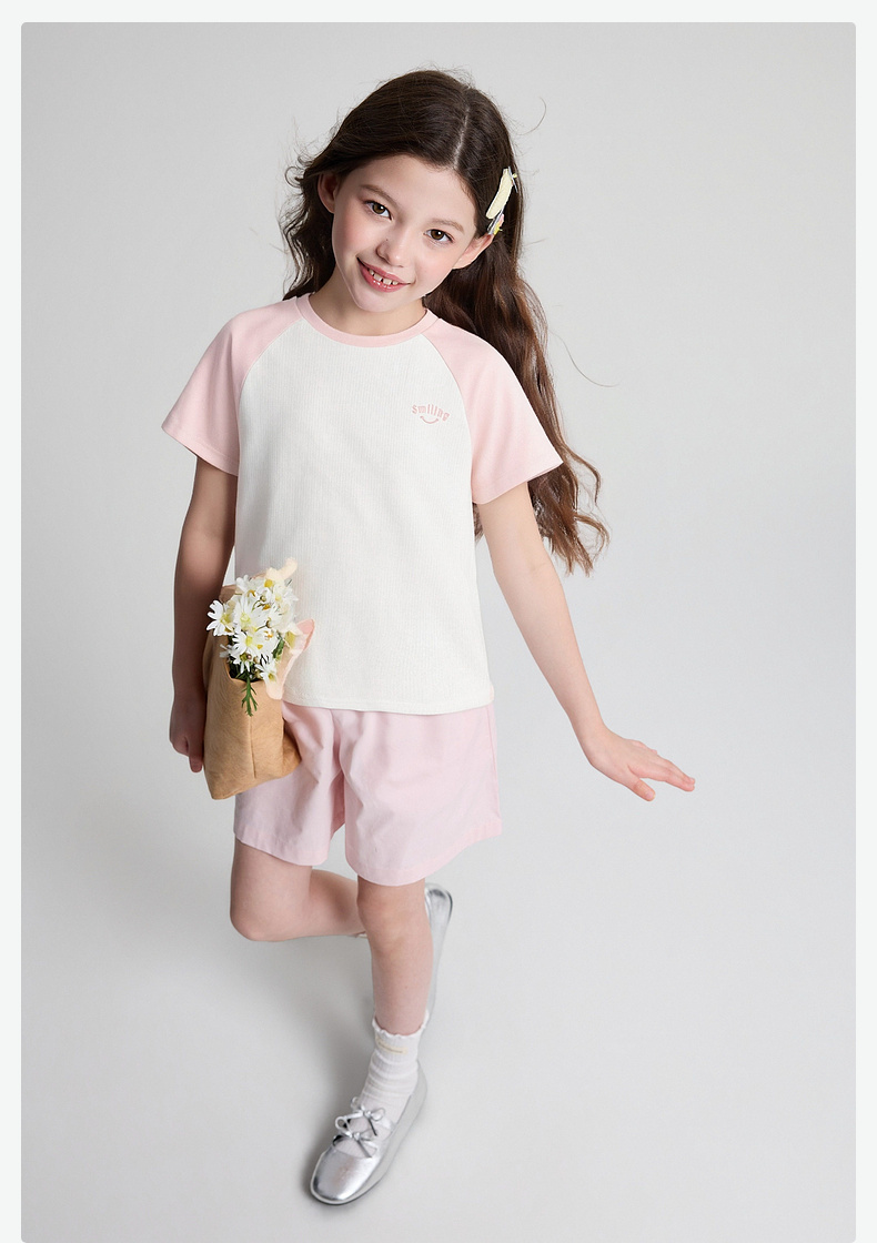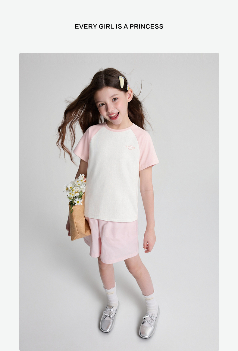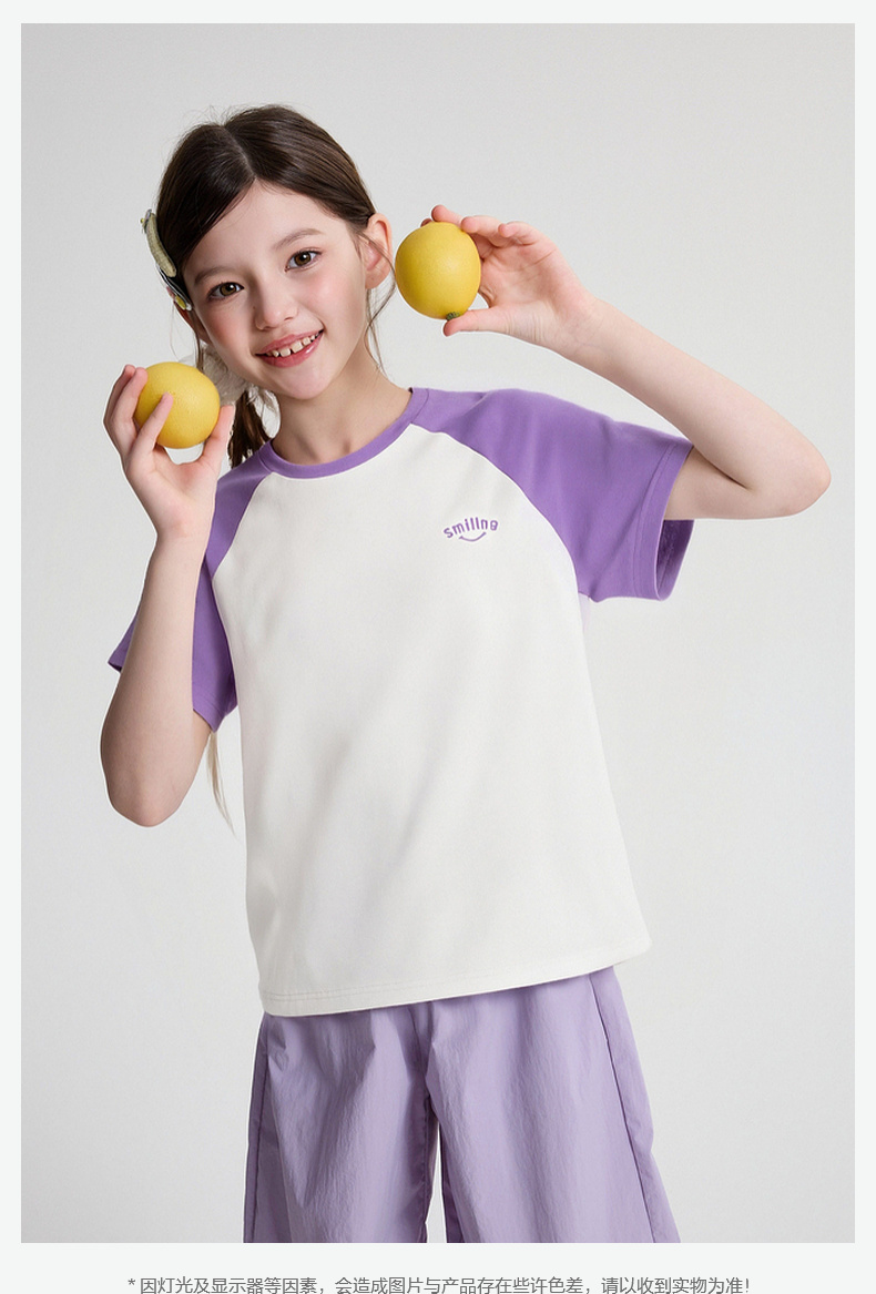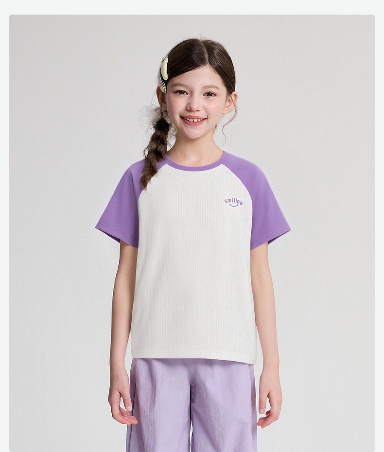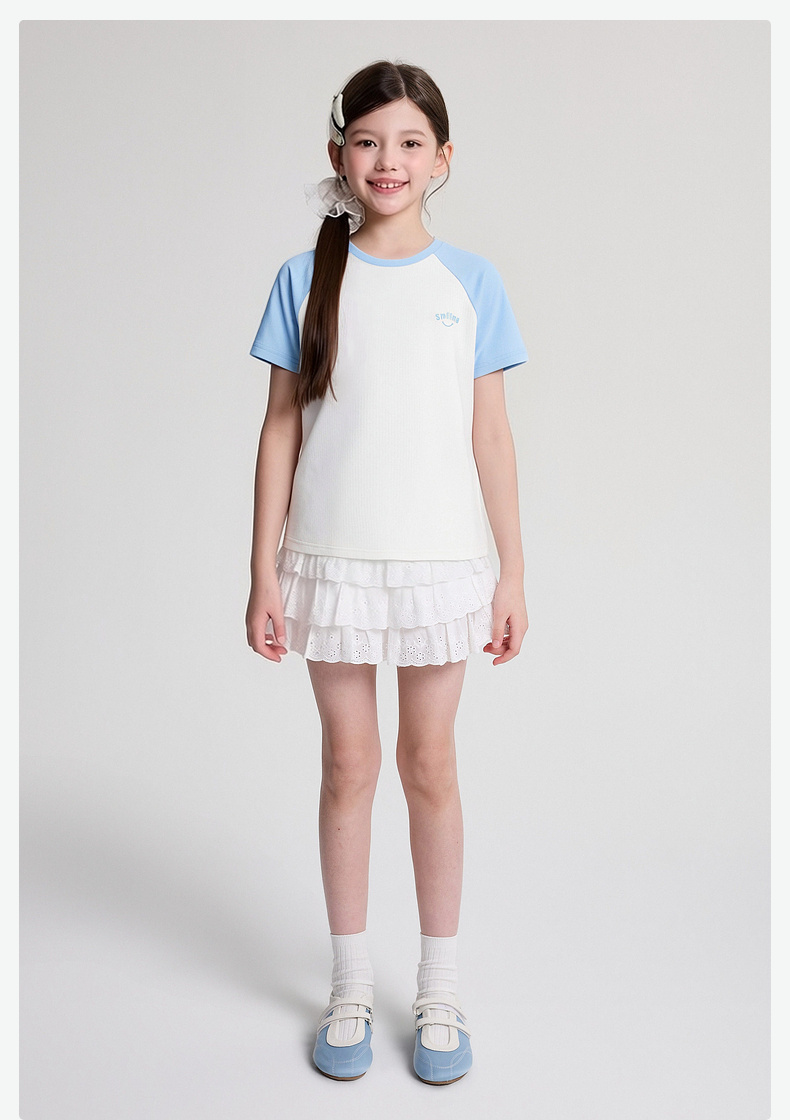 笛莎/Deesha 2026年夏季新款女童中大童插肩袖撞色T恤