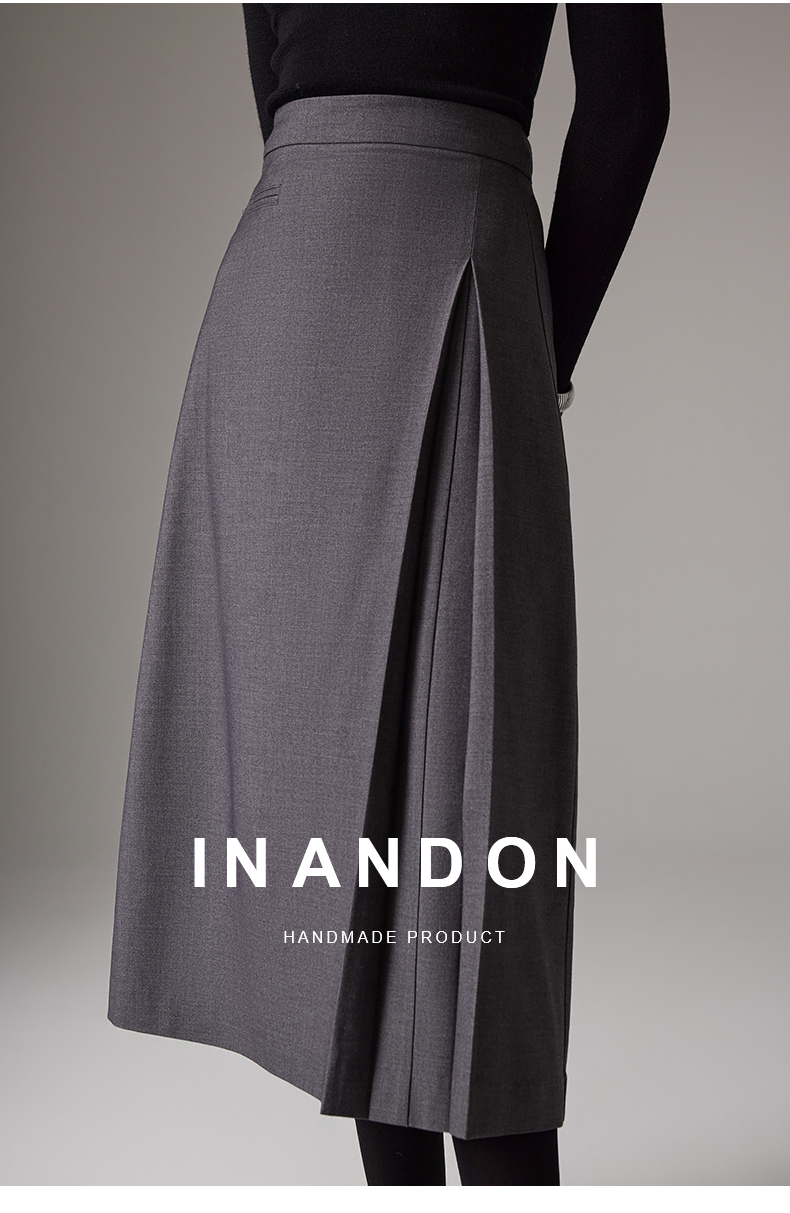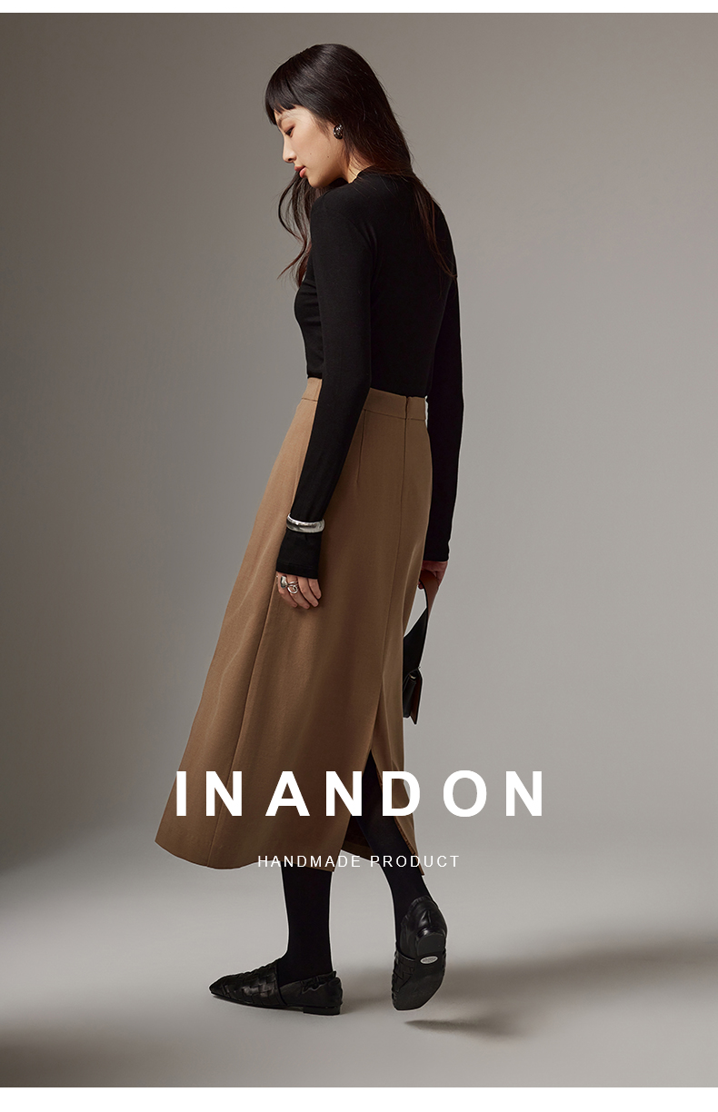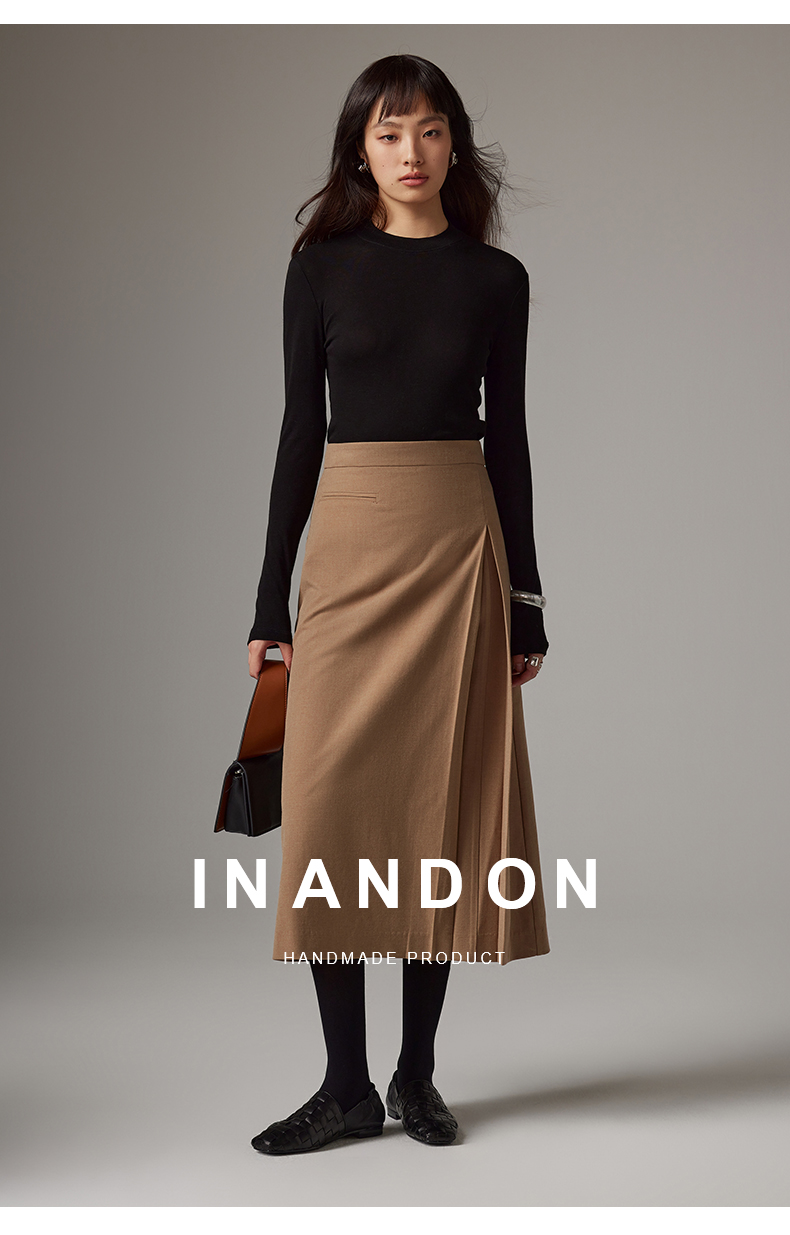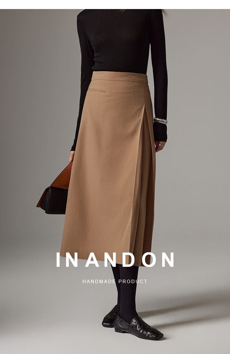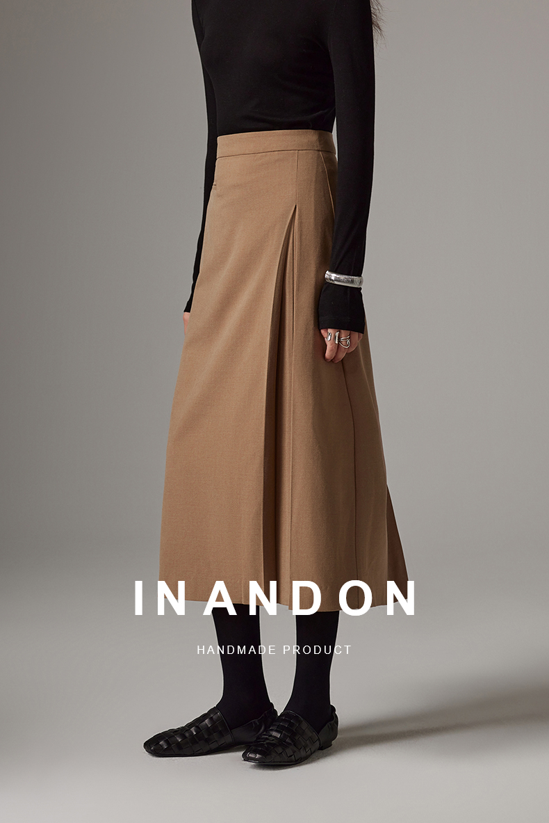 【品牌优选】IN AND ON知识分子风显瘦秋冬a字复古高腰立体褶裥包臀女半身裙53754