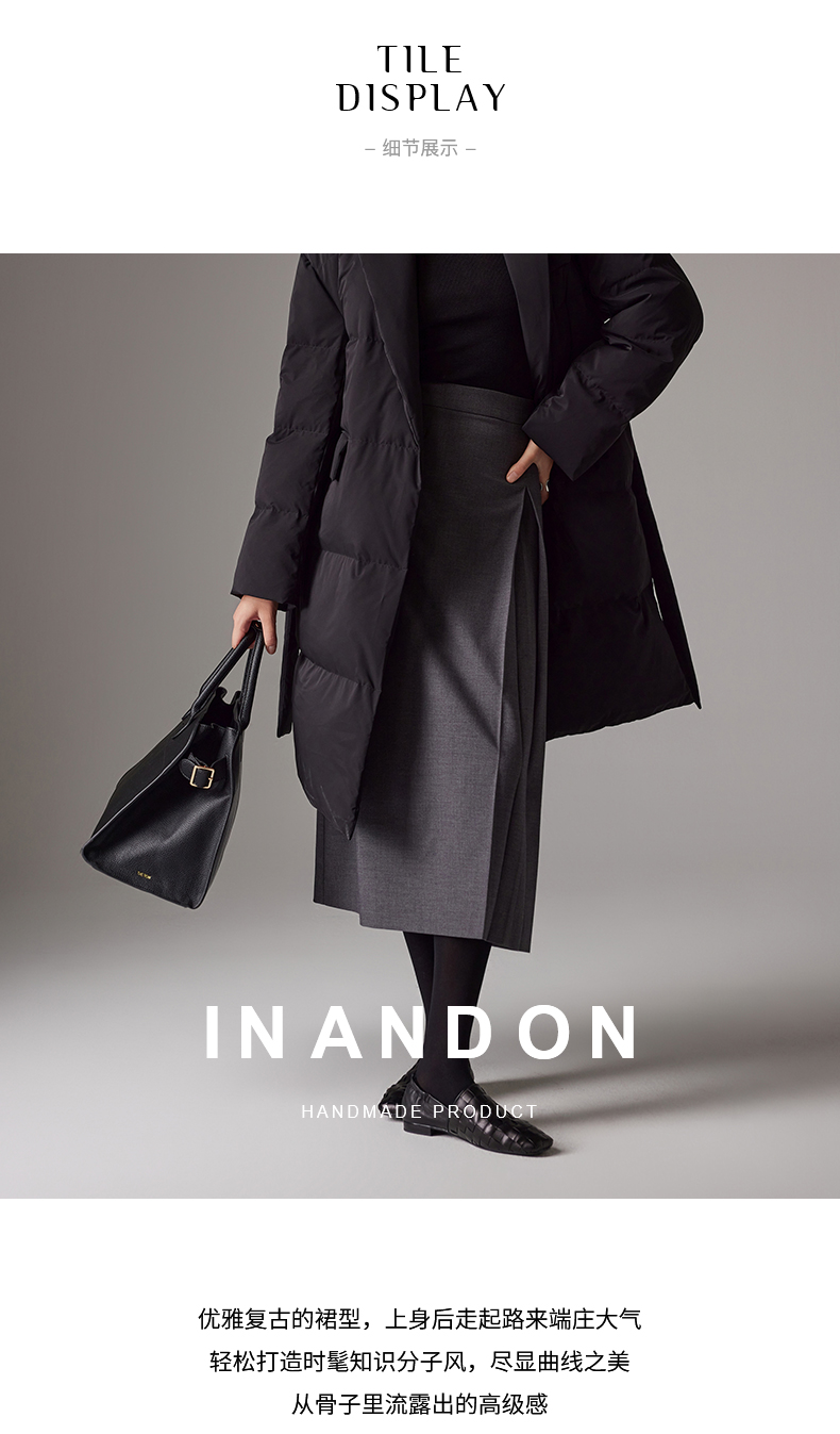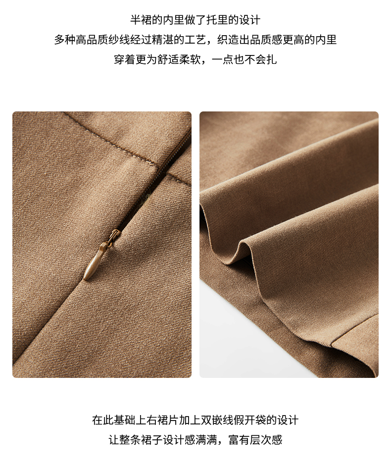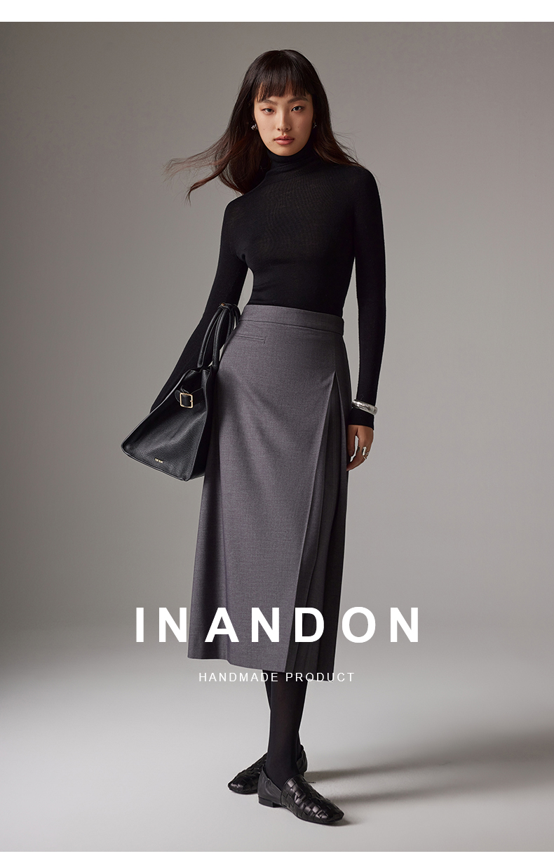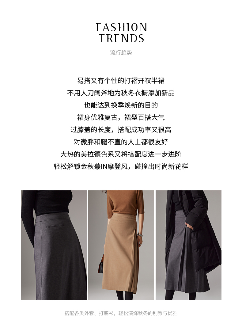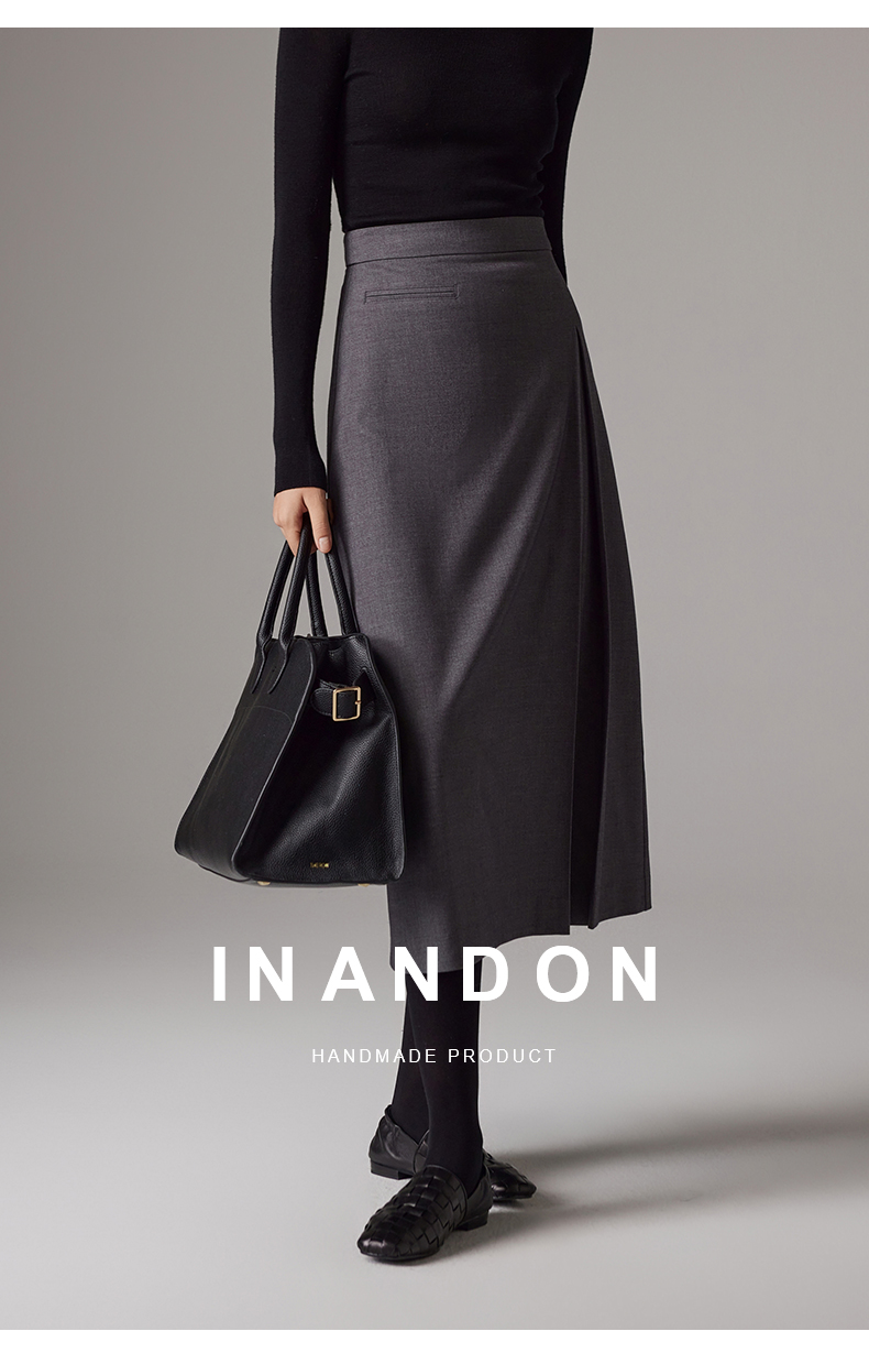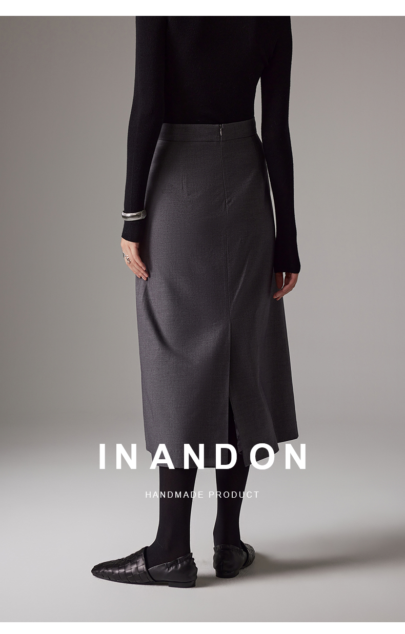 【品牌优选】IN AND ON知识分子风显瘦秋冬a字复古高腰立体褶裥包臀女半身裙53754