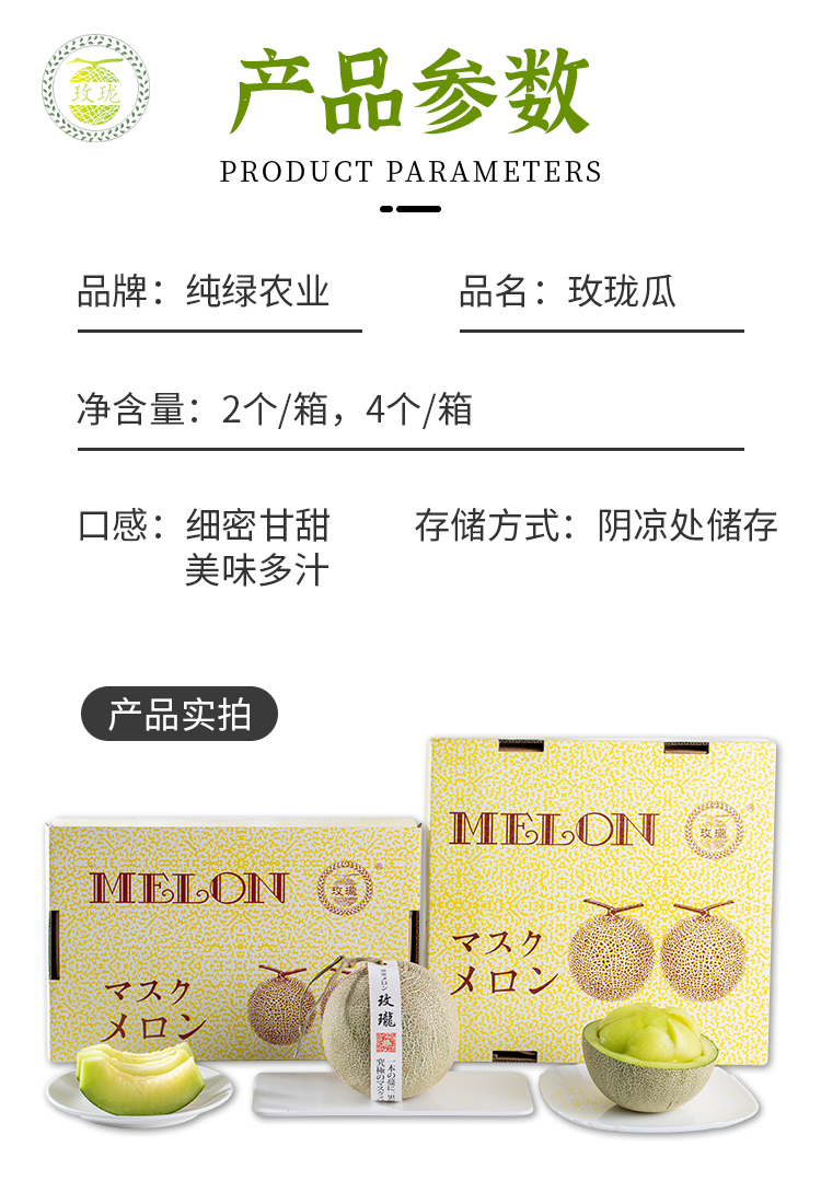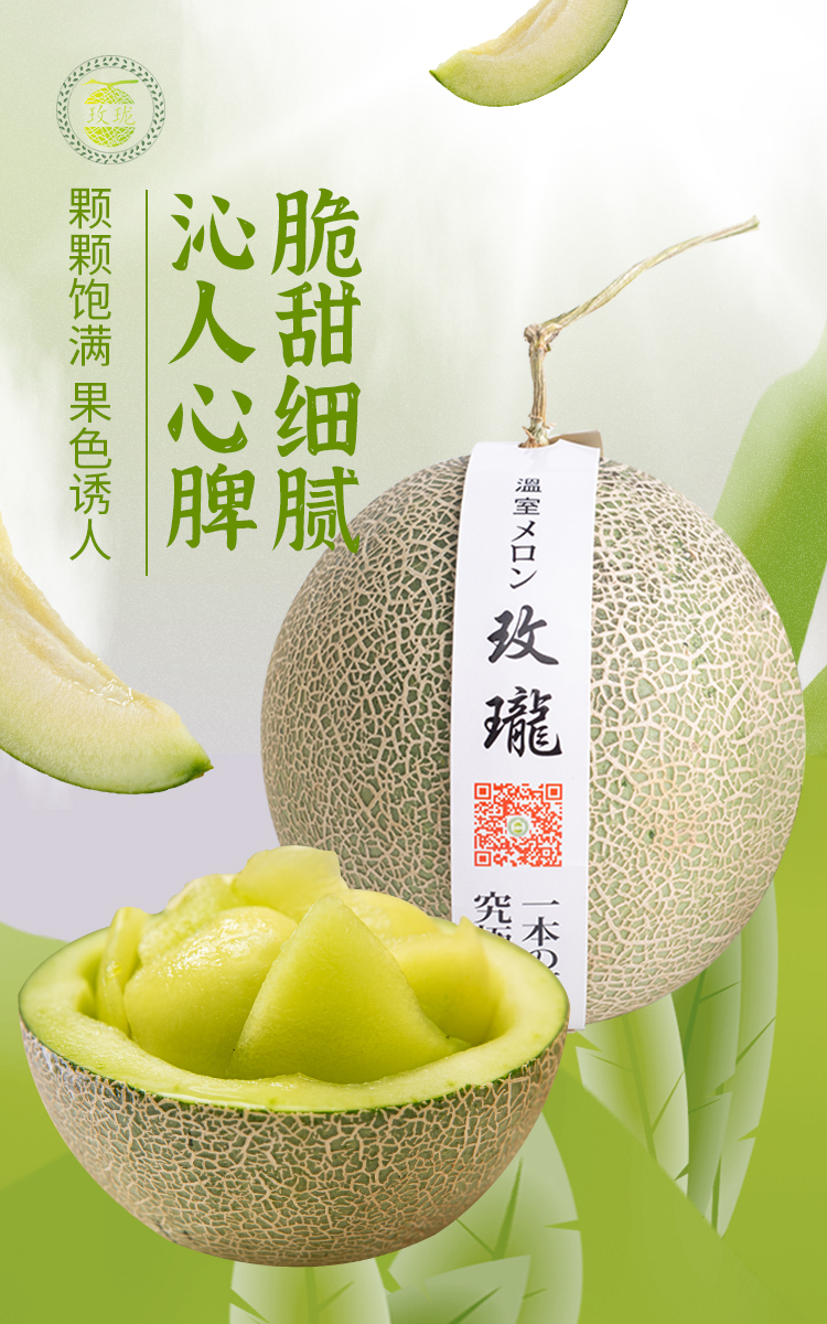 关于产品:外观独特,艺术感强,网纹犹如艺术珍品,在切食之前给人一种高级的视觉享受。 玫珑瓜个头饱满,体型圆润,表皮依成熟度呈翠绿色、天青色、奶白色,条条纹路交错其上,像人工雕琢的艺术品一样。