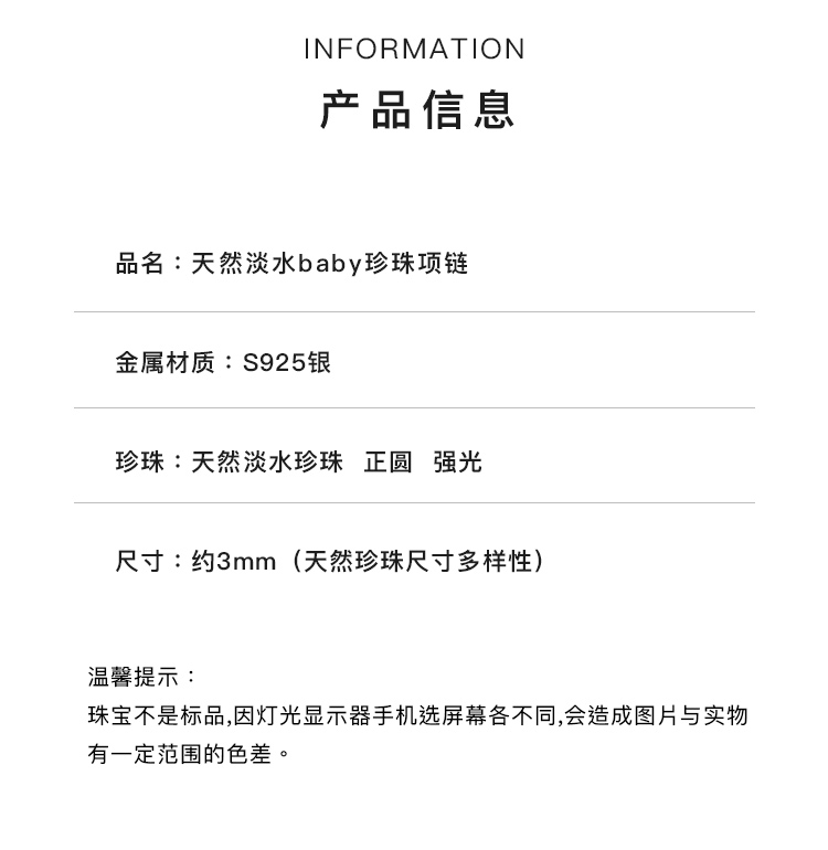 ysxb-07005【云赏珠宝】高品质天然淡水珍珠Baby珠正圆强光珍珠项链减龄显气质