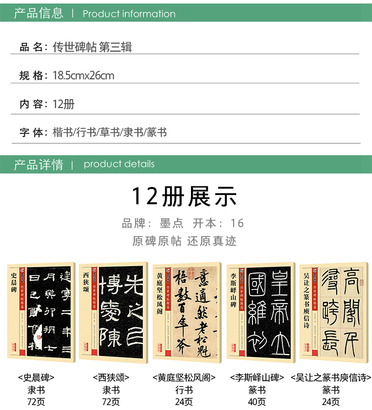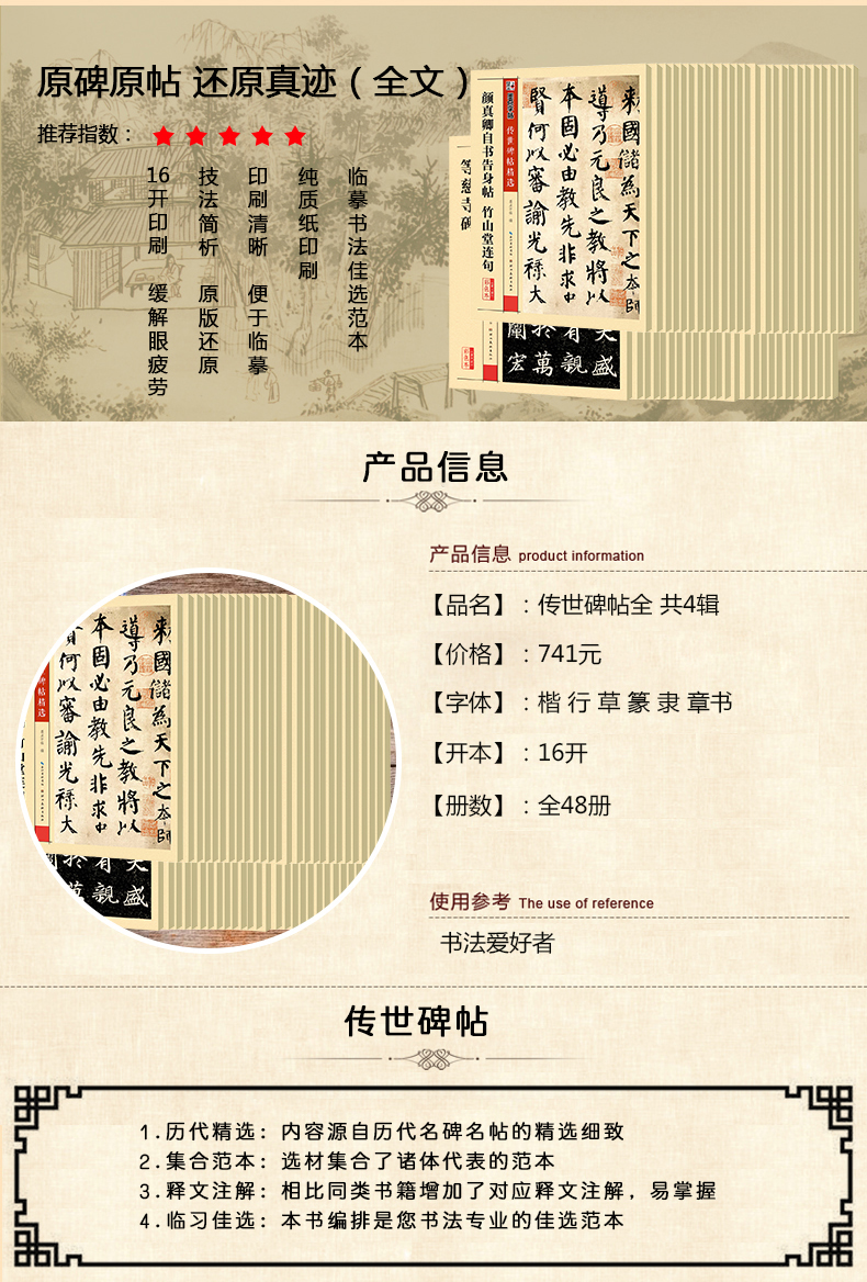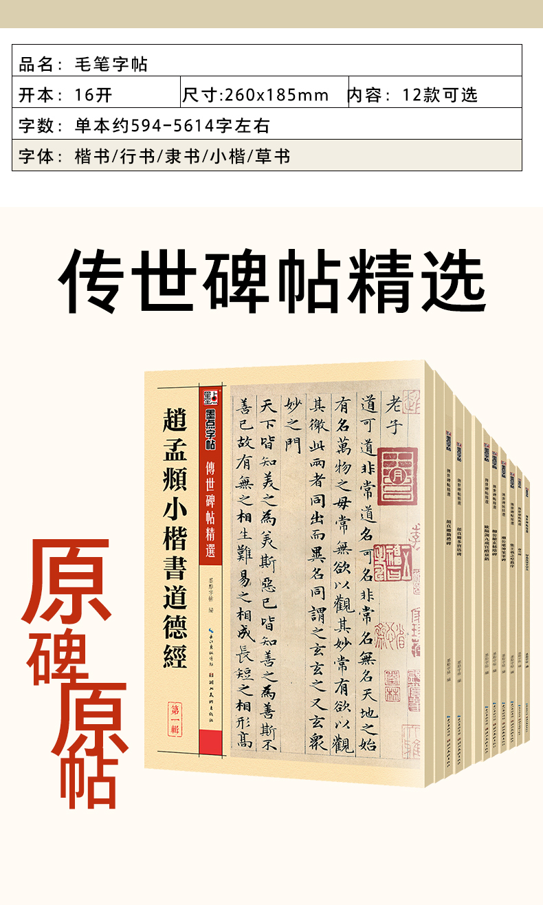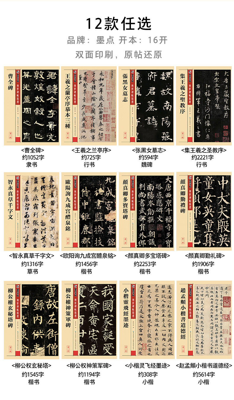 【传世碑帖全四辑】墨点字帖传世碑帖精选原碑原帖毛笔字帖初学者入门曹全碑隶书颜真卿楷书王羲之兰亭序赵孟俯小楷灵飞经千字文欧阳询书法临摹练字帖