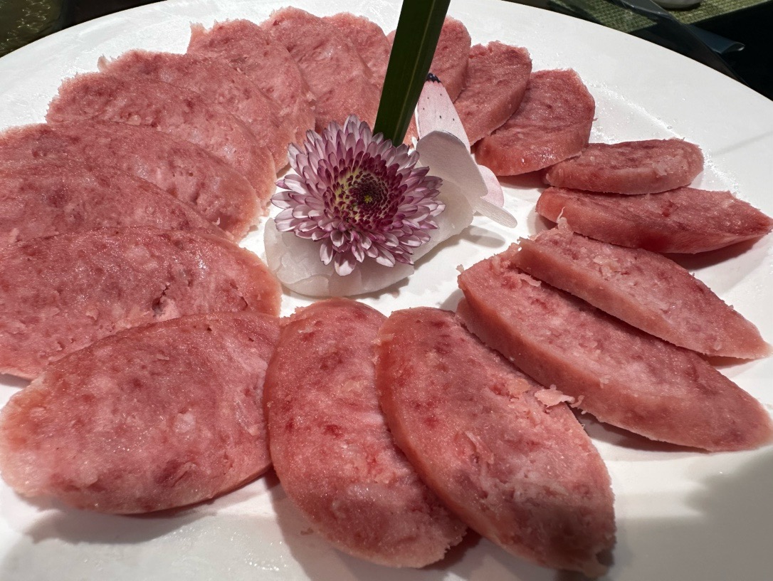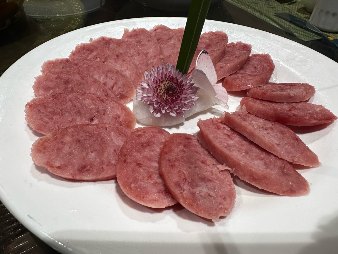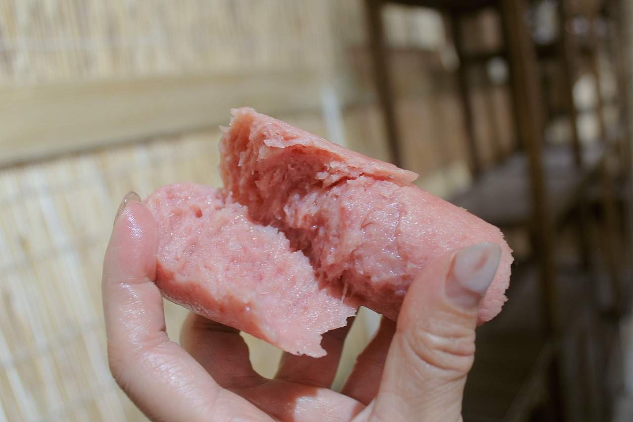 想不到呀,秒杀超市里的常见火腿肠。没有添加剂的味道,有肉香,很Q弹,颜色偏白一些,不像买来的火腿肠偏红,味道非常巴适。