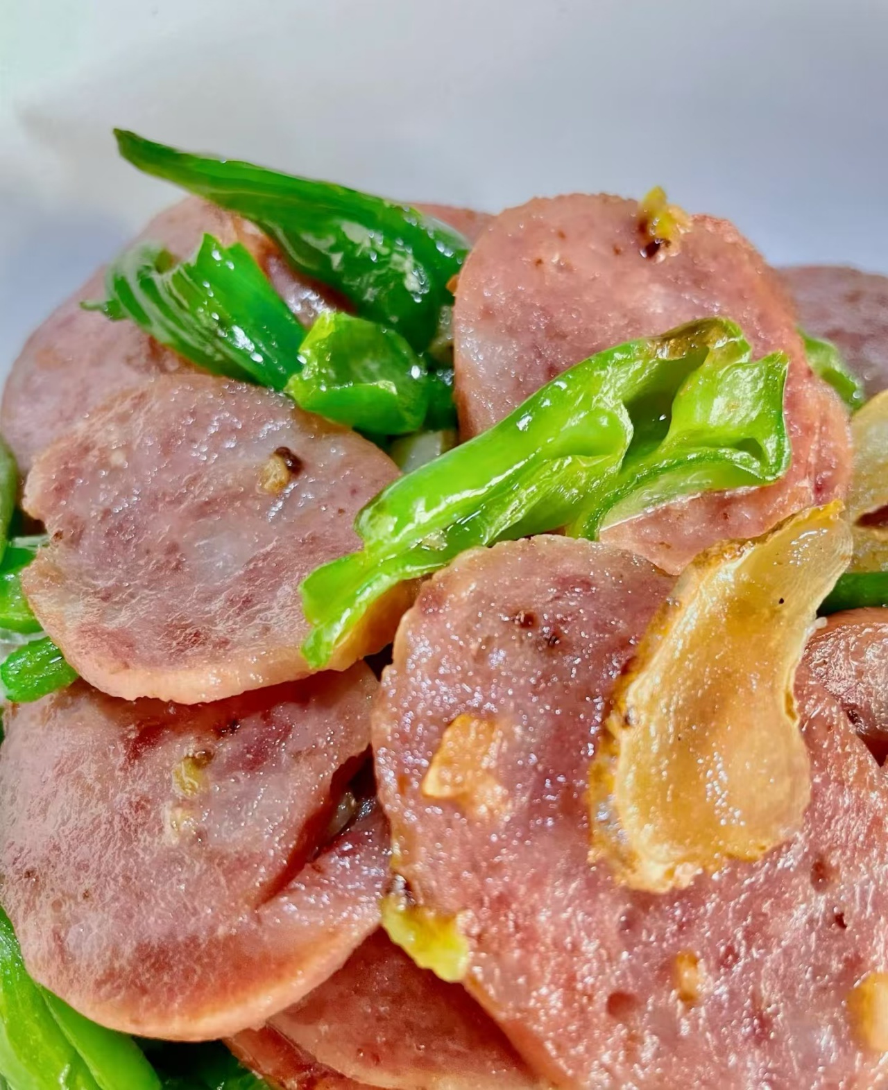 首先你得有一根真材实料的土猪肉火腿肠,能看得到肉粒,没有任何科技与狠活,吃的安心,关键是真好吃!