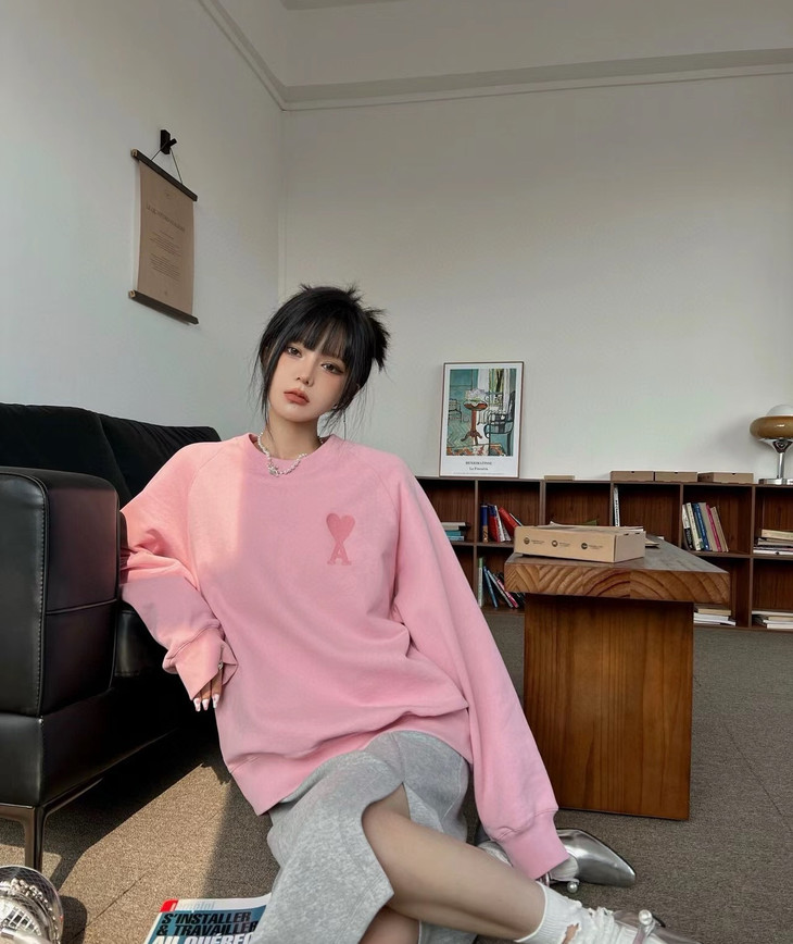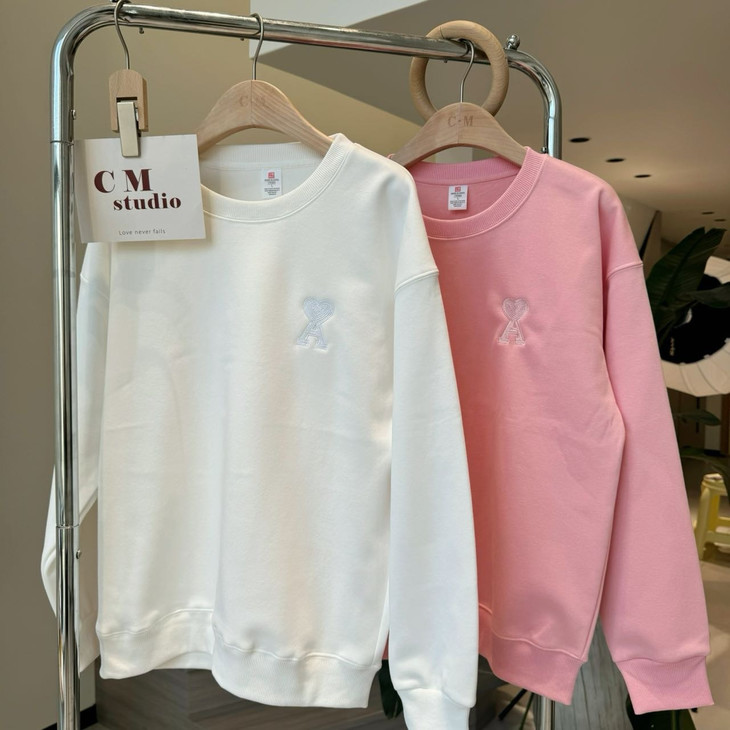 【爱心A刺绣男女同款卫衣】 落肩袖设计 宽松版型不挑人 内里是高级的水貂绒 绒感绵密细腻 上身保暖不臃肿