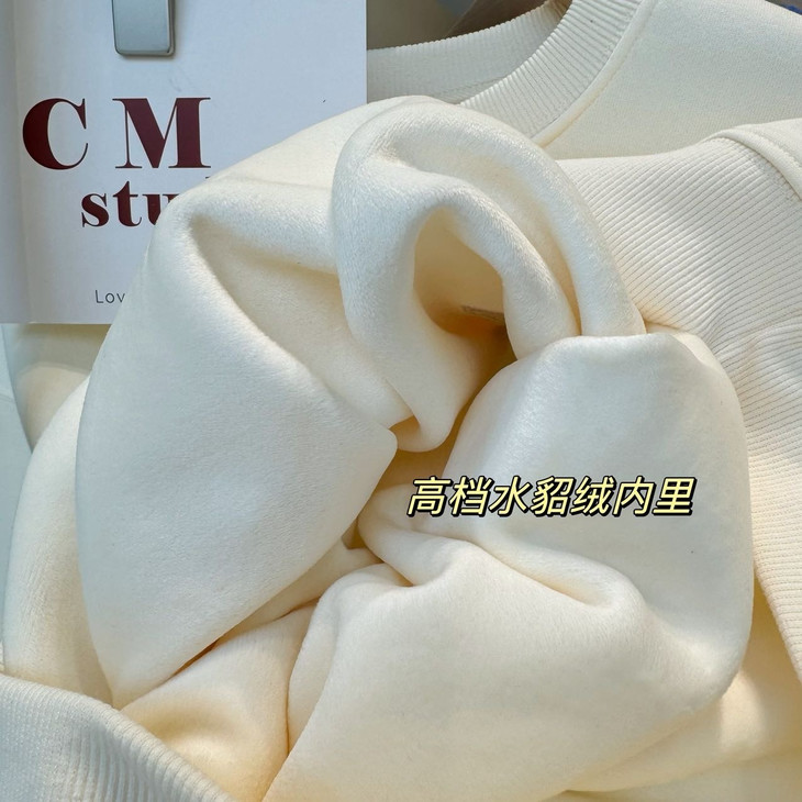 手感超级软糯~肉嘟嘟的感觉! 加绒之后卫衣型超级好,不会软塌塌! 宽松版型,适合各种身材, 包容性极好上身遮肉显瘦! 特别是男女同款的衣服,必须要质感到位!
