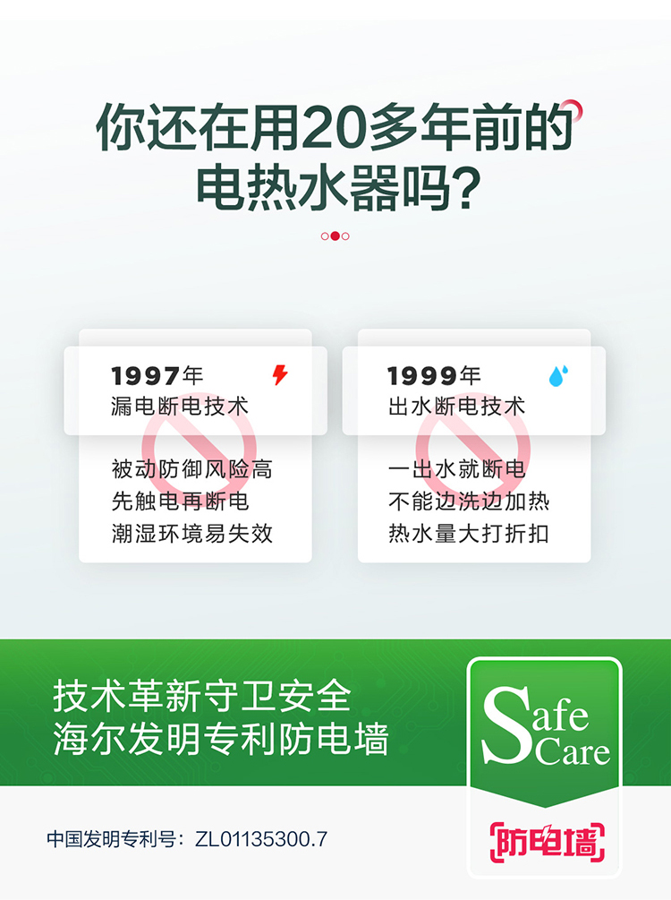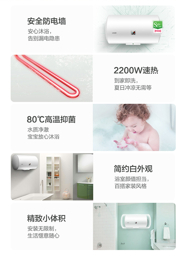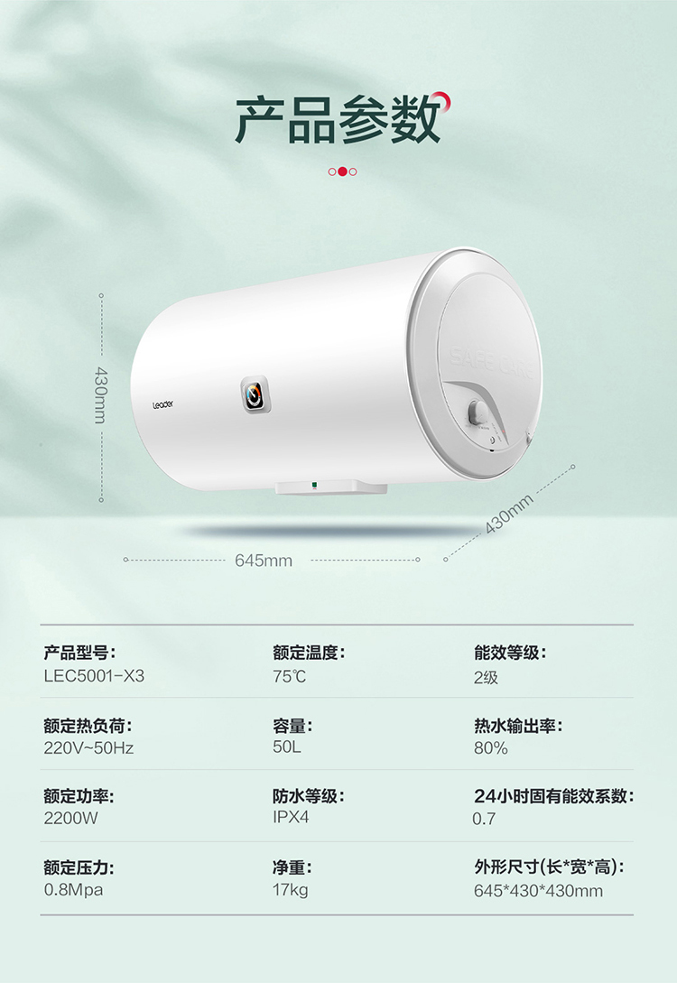 统帅(Leader)海尔出品 50升 电热水器 2200W大功率 专利防电墙 金刚三层胆 钼金加热管 LEC5001-X3
