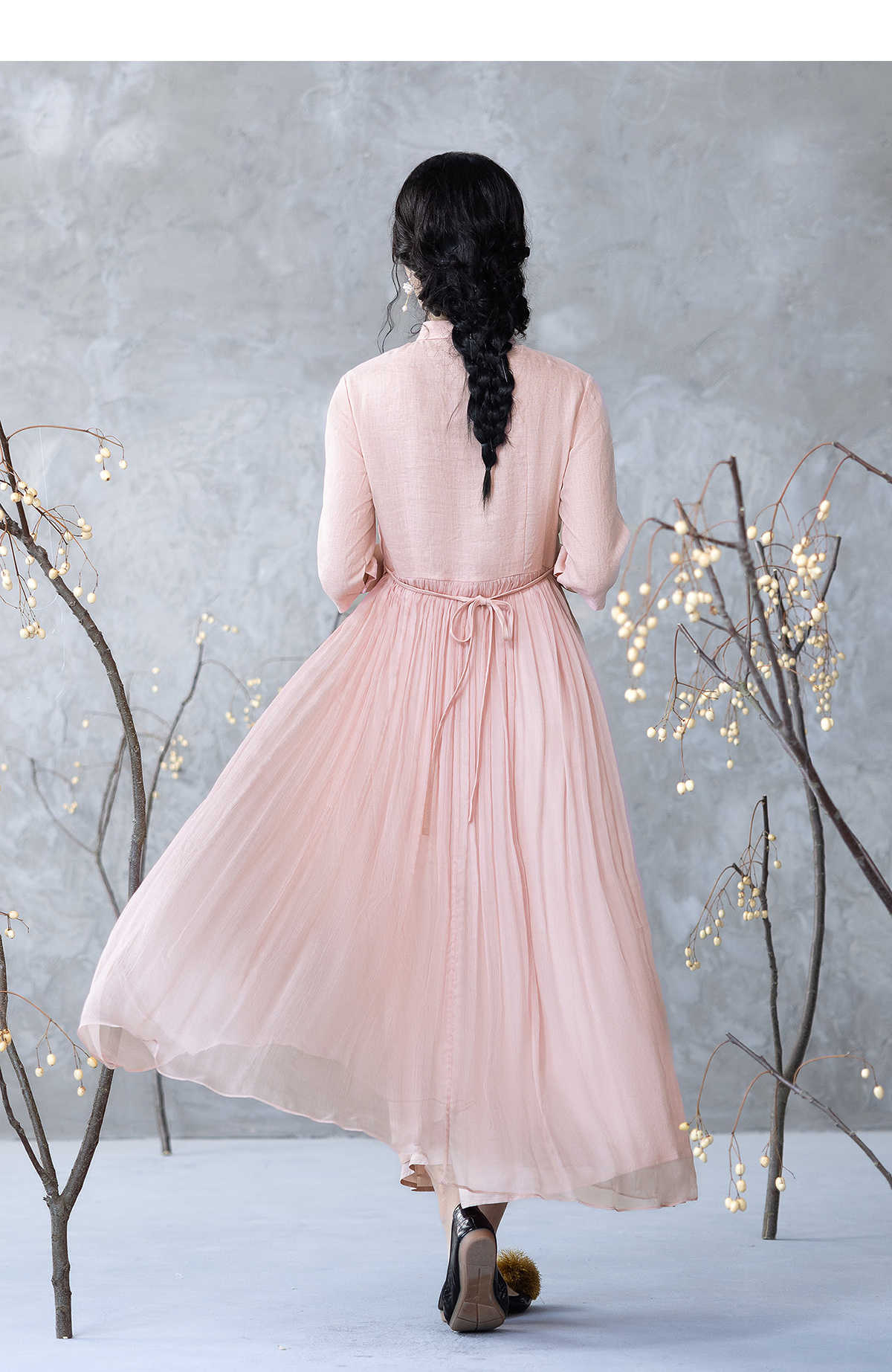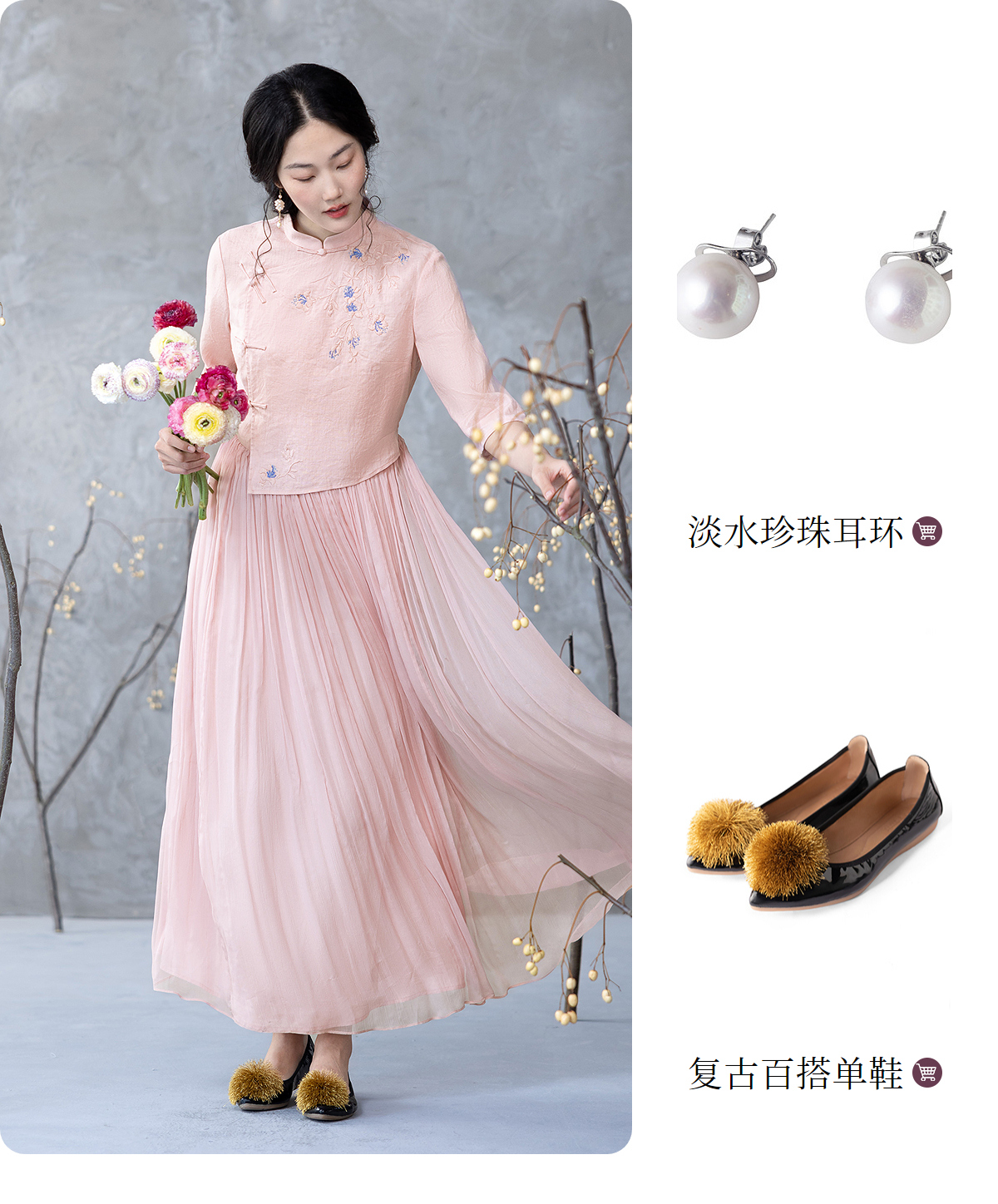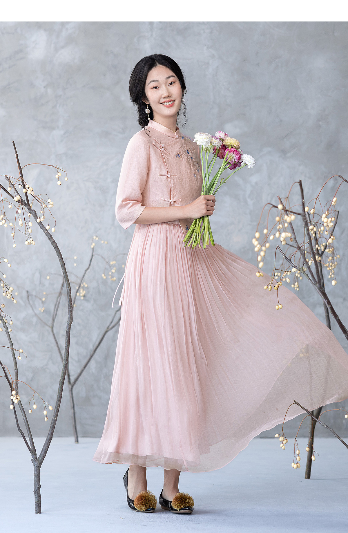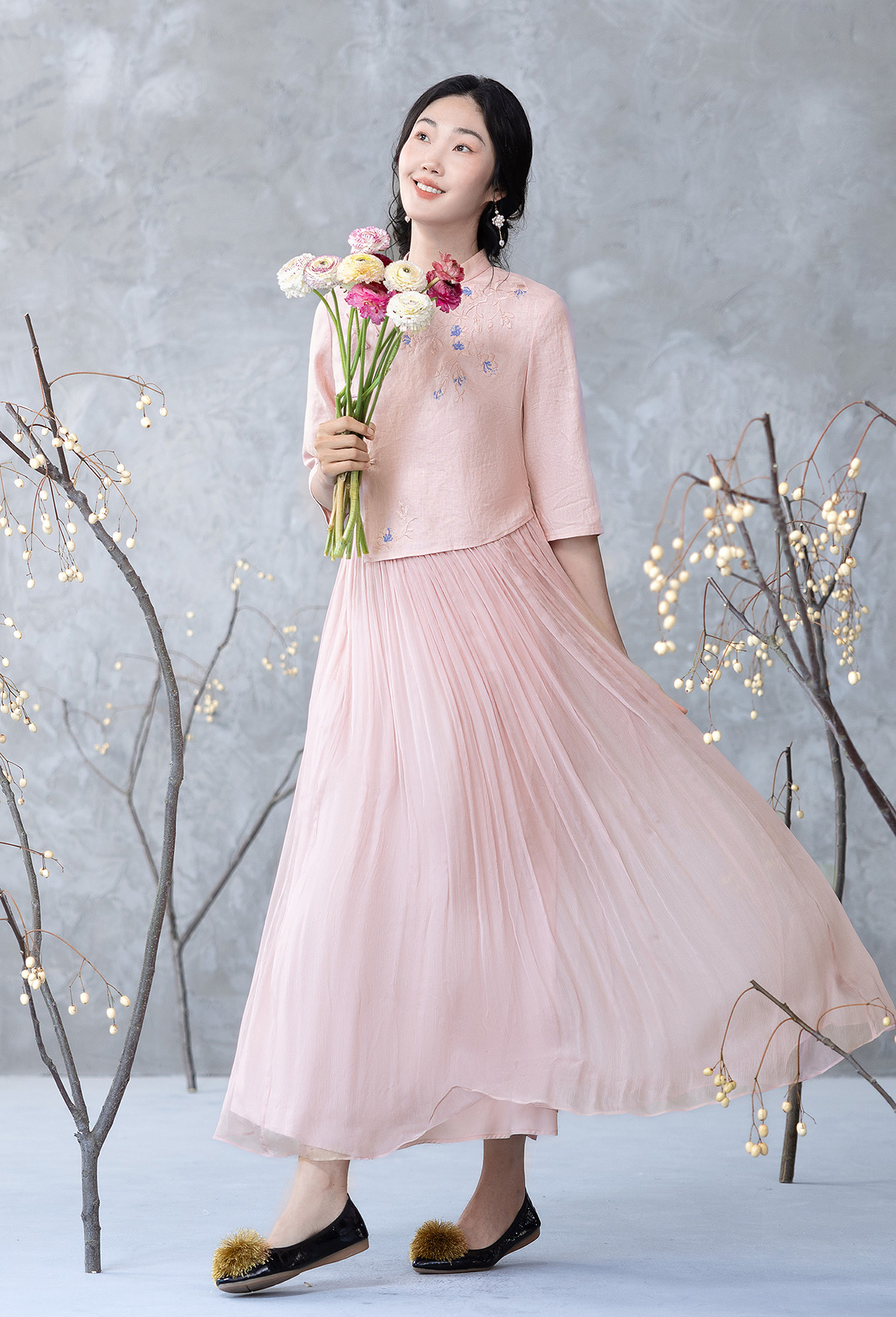 【林栖设计小店】亚麻连衣裙拼真丝新中式绣花2025夏季新品花仙子长裙女1952077