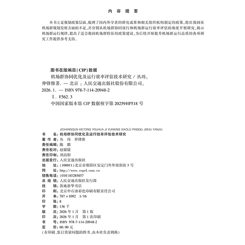 书名:机场群协同优化及运行效率评估技术研究