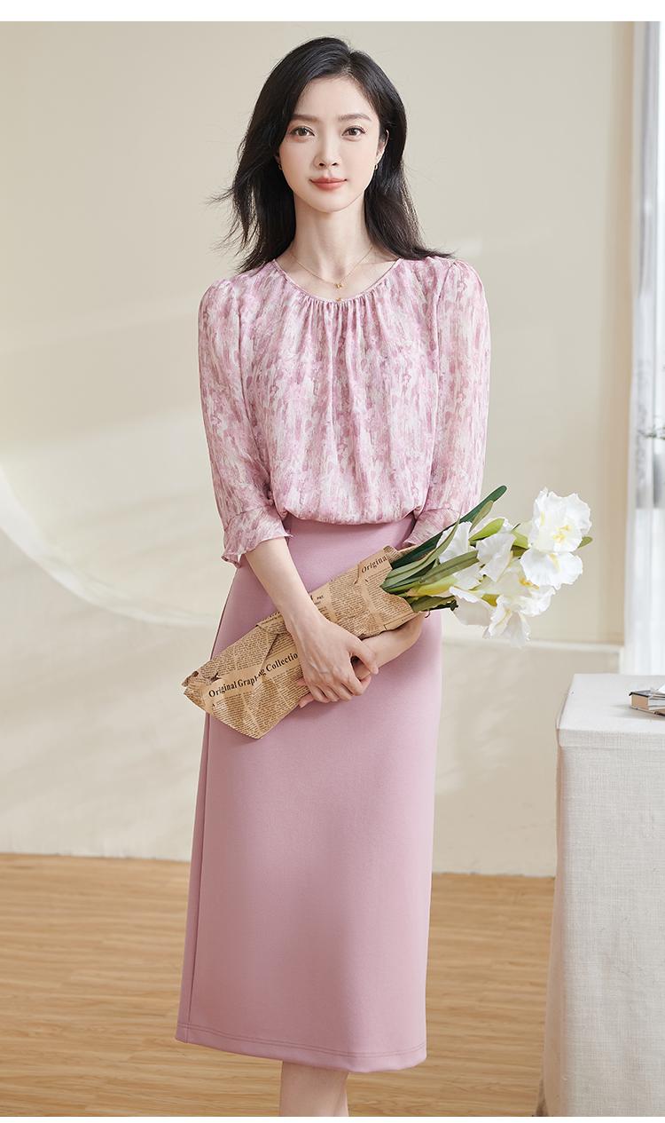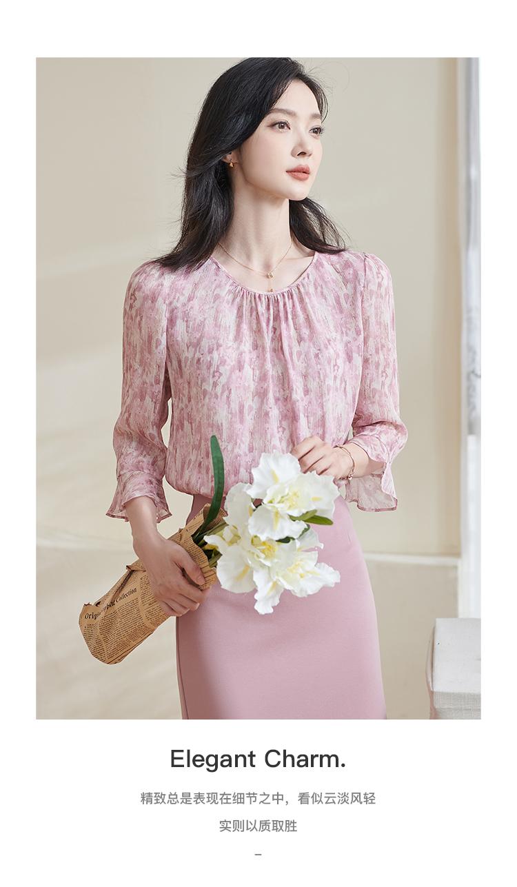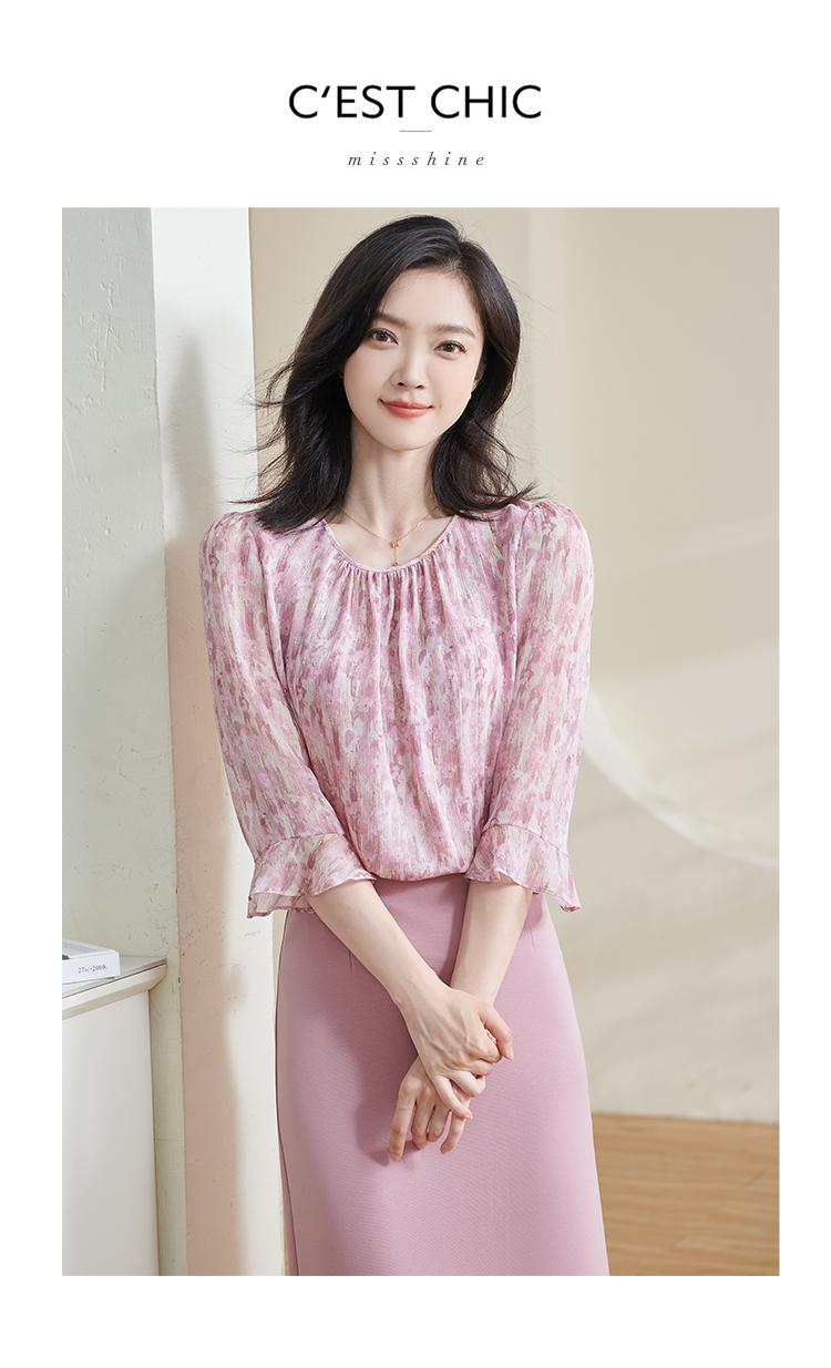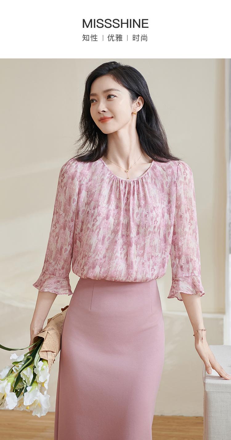 米思阳2026春季新品粉色印花衬衫甜美减龄轻薄气质时尚上衣1506