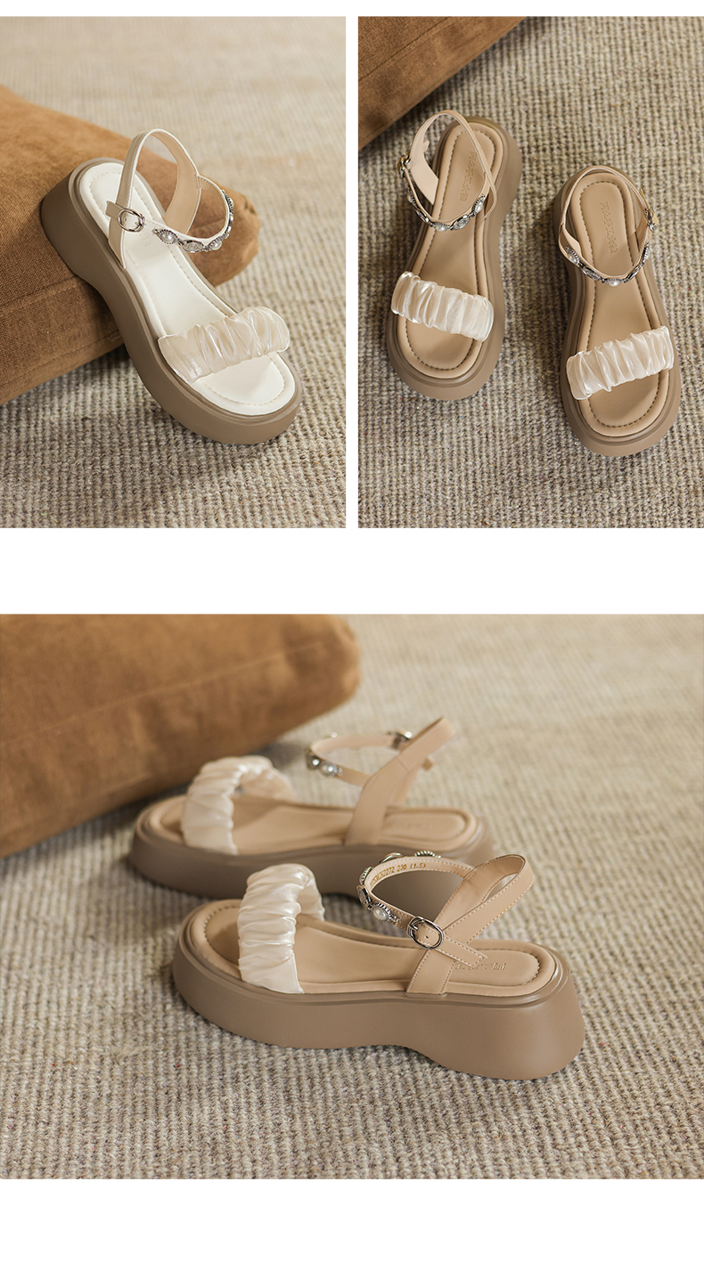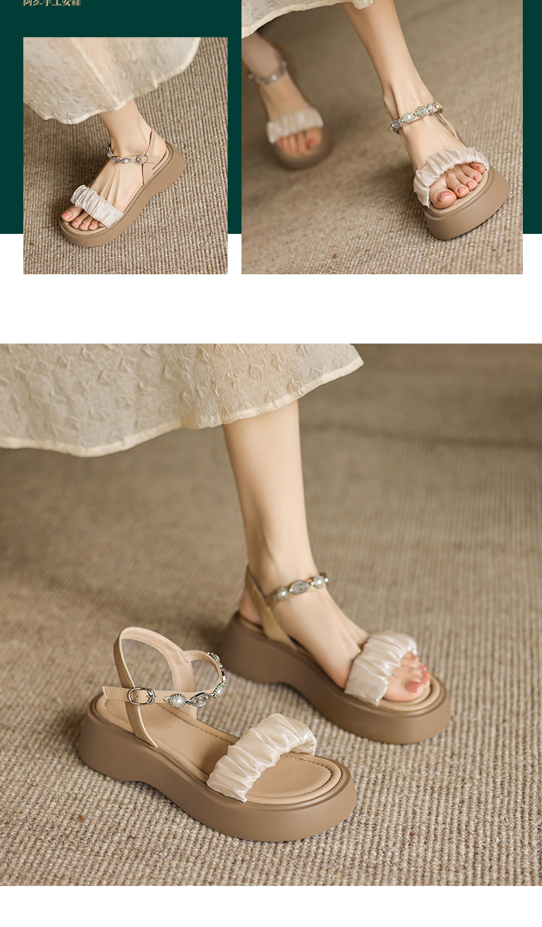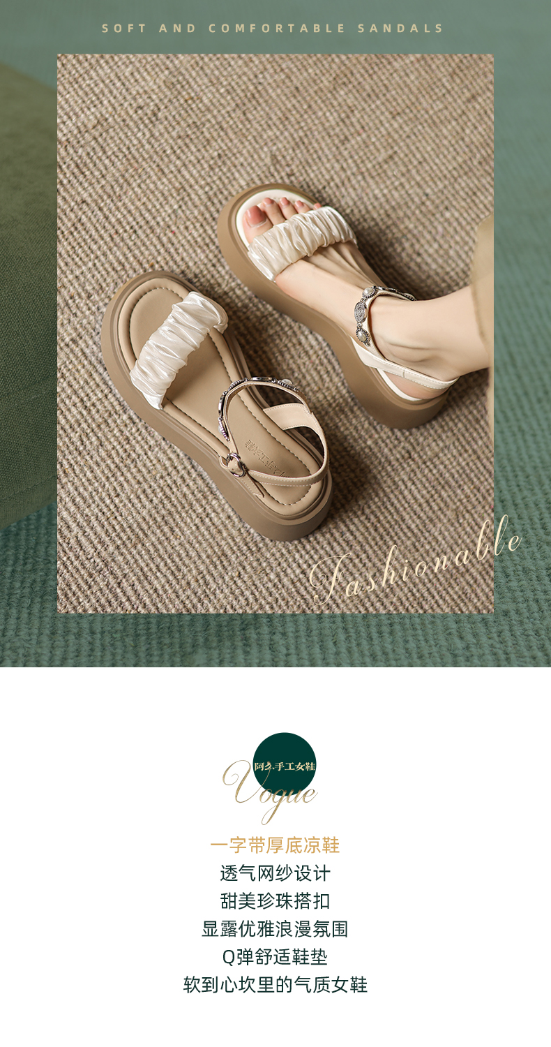 阿么手工女鞋仙女风厚底一字带凉鞋女夏季2025新款休闲百搭5.5CM