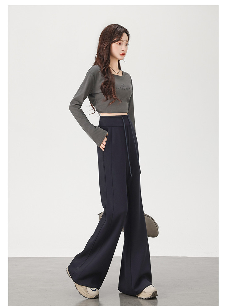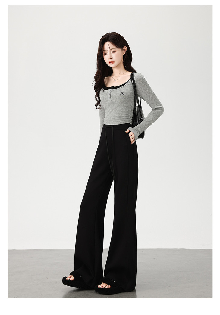黑色喇叭裤女秋冬高腰显瘦休闲阔腿裤高个子砂洗棉微喇裤