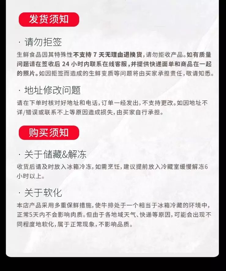 3.非质量问题的退换货和改地址、因个人原因电话留错后造成的延迟收货,不在售后范围