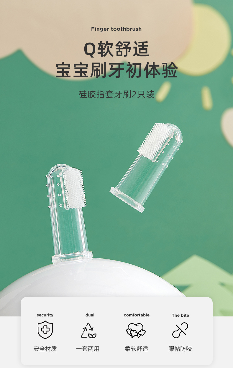 【十月结晶】婴儿牙刷0-1岁儿童训练乳牙幼儿硅胶软毛指套牙刷2只装