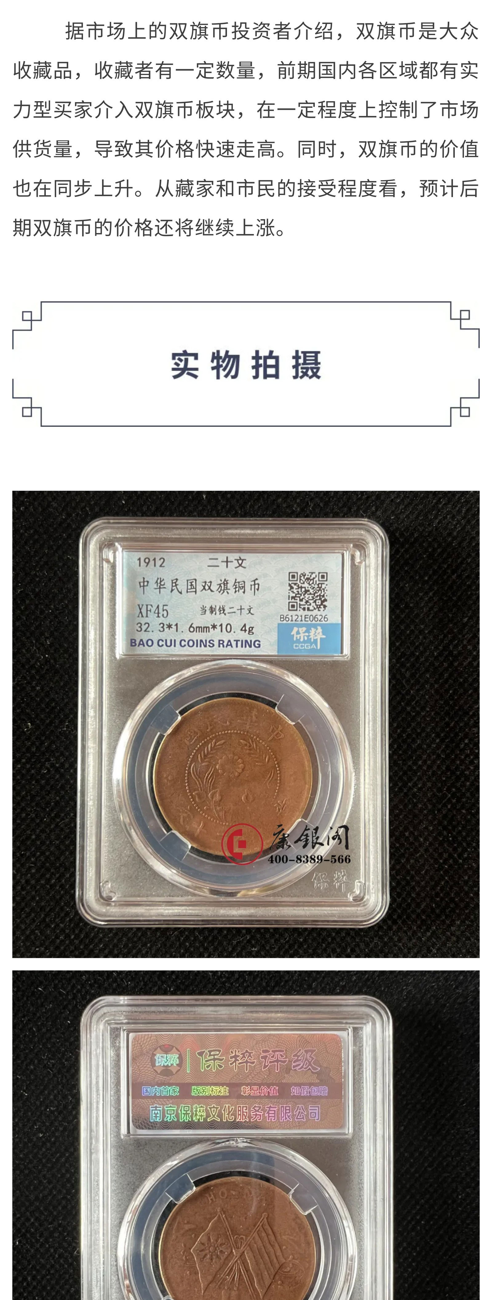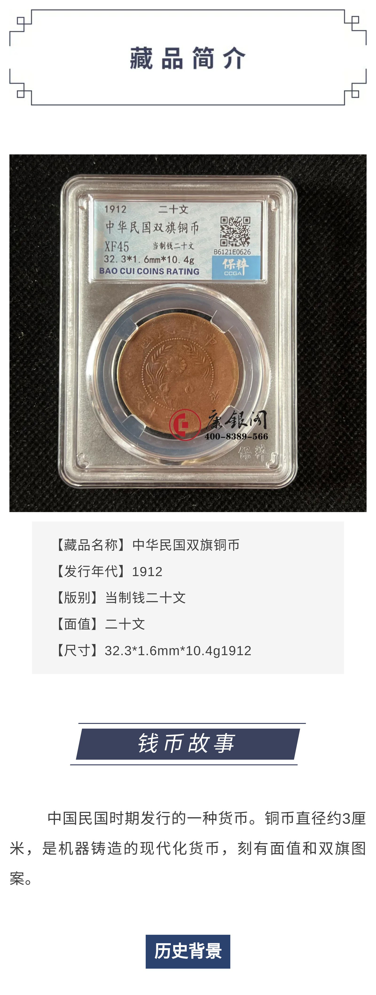 1912年民国双旗铜币 当制钱二十文