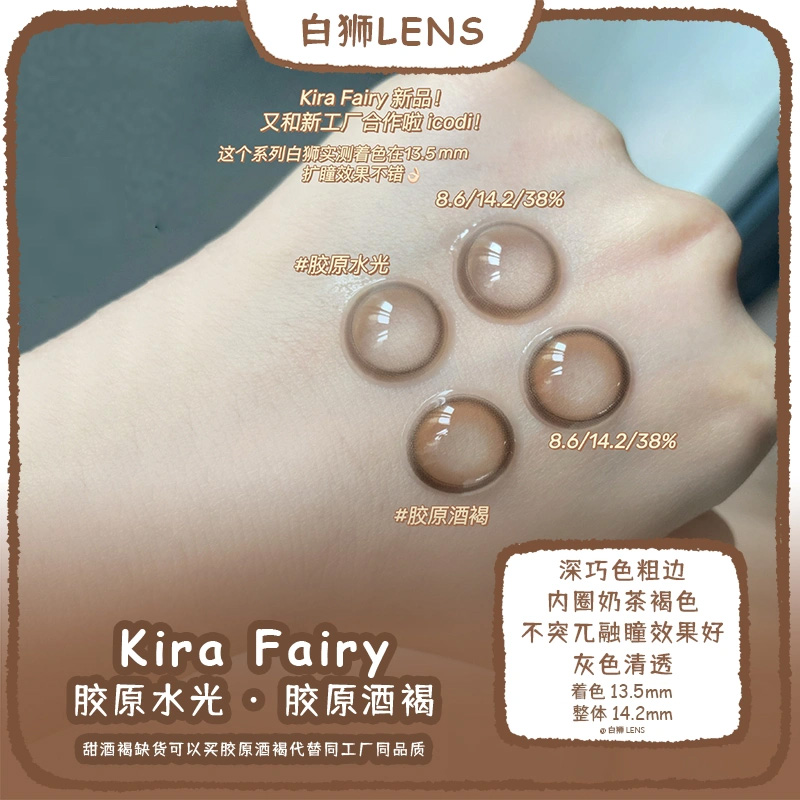 Kira Fairy半年抛 · 胶原酒褐&胶原水光&菠菜种子|14.2mm白狮参考着色中大直径|韩产2片
