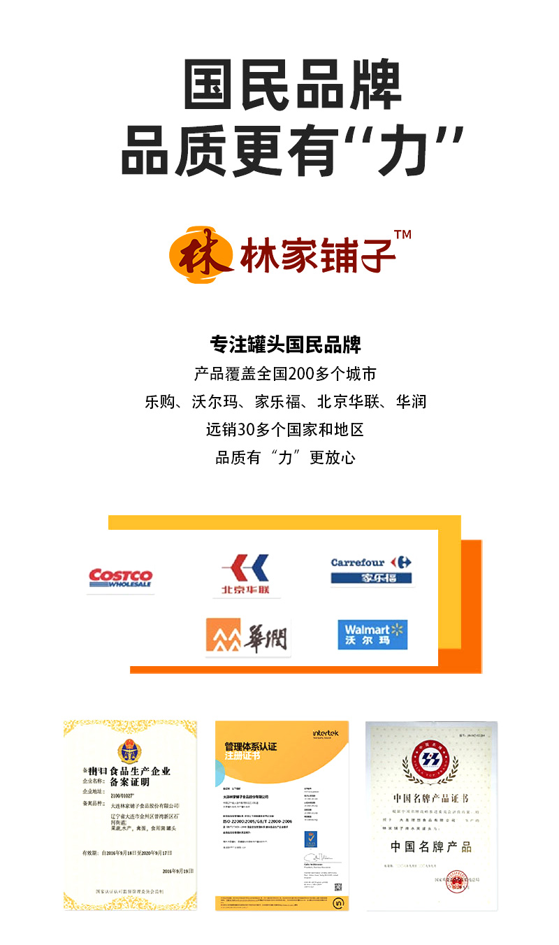 大连林家铺子食品股份有限公司成立于1996年,是中国知名及东北地区最大的罐头生产商、出口商。公司坚持“赋予产品以文化,做世界上最好的罐头”,不断最求高品质打造成年轻人也爱吃的国民零食